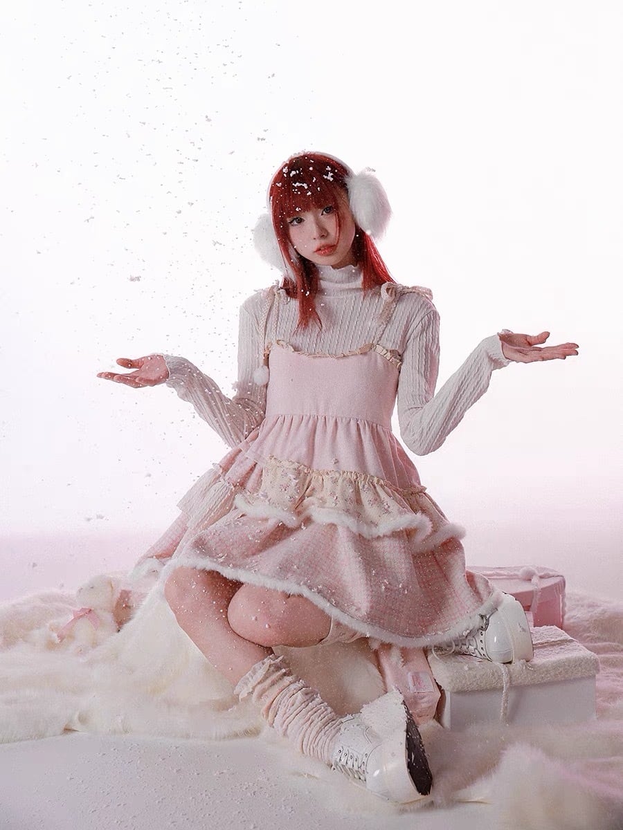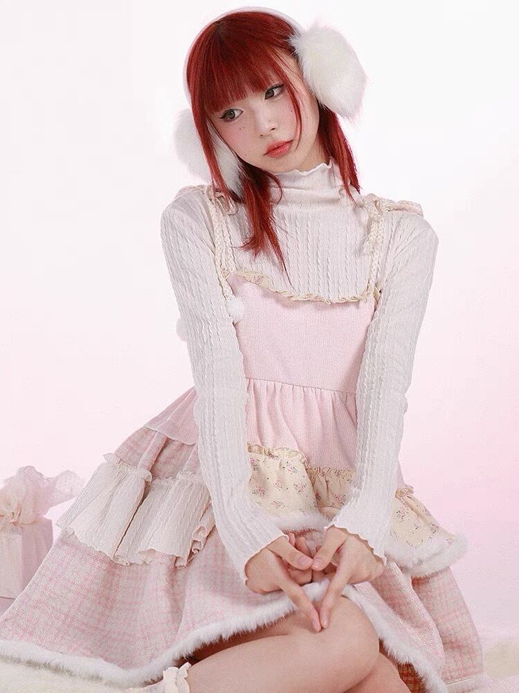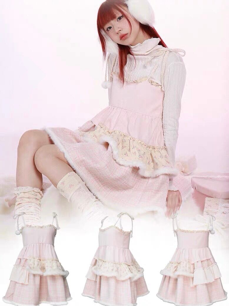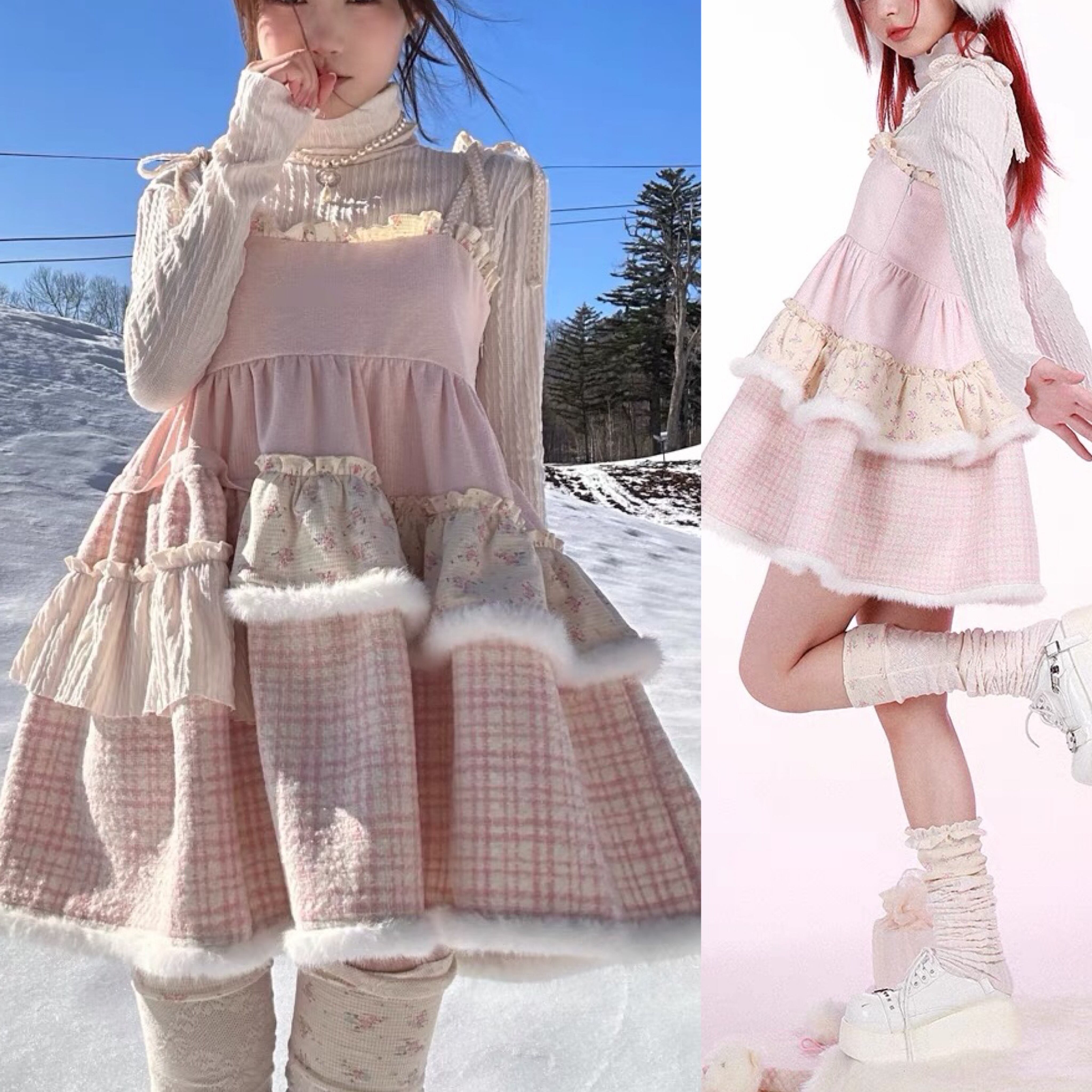 ワンピース パッチワーク 可愛い ピンク チェック リボン ガーリー