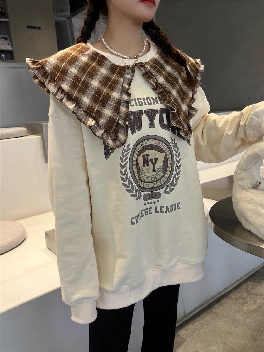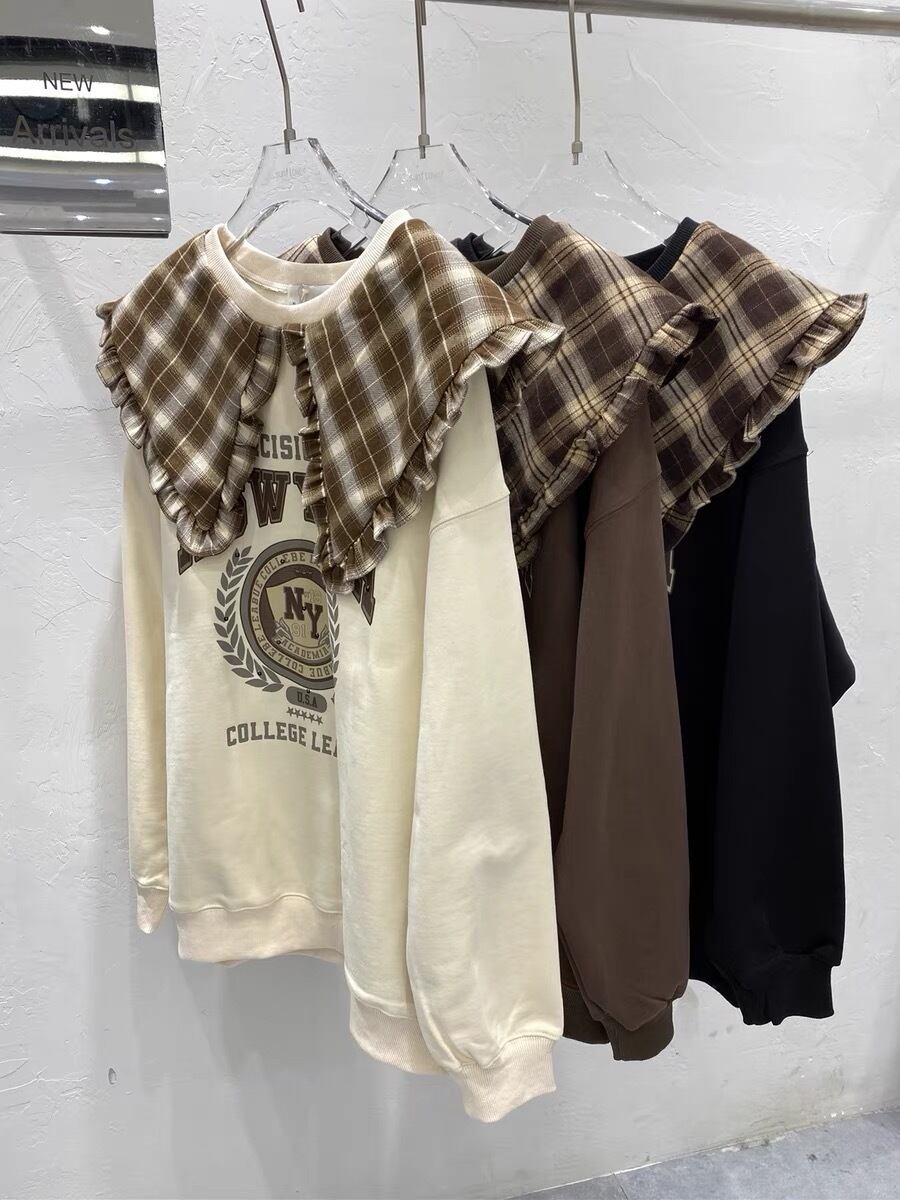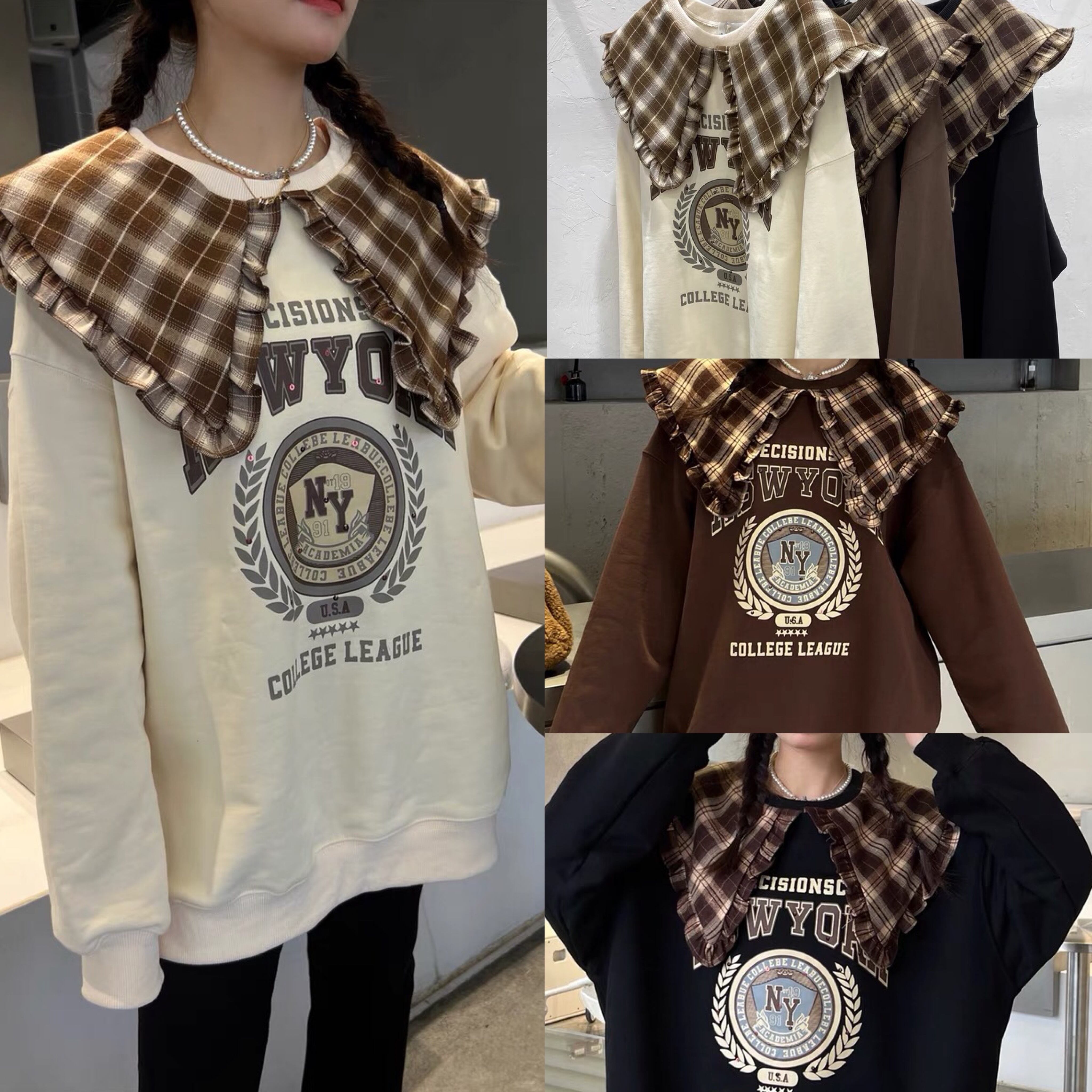 スウェット 襟 チェック 茶色 黒 白 トレーナー