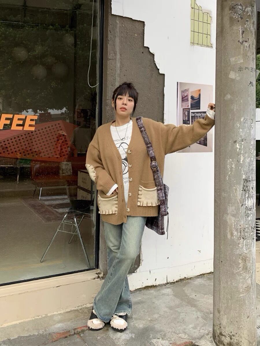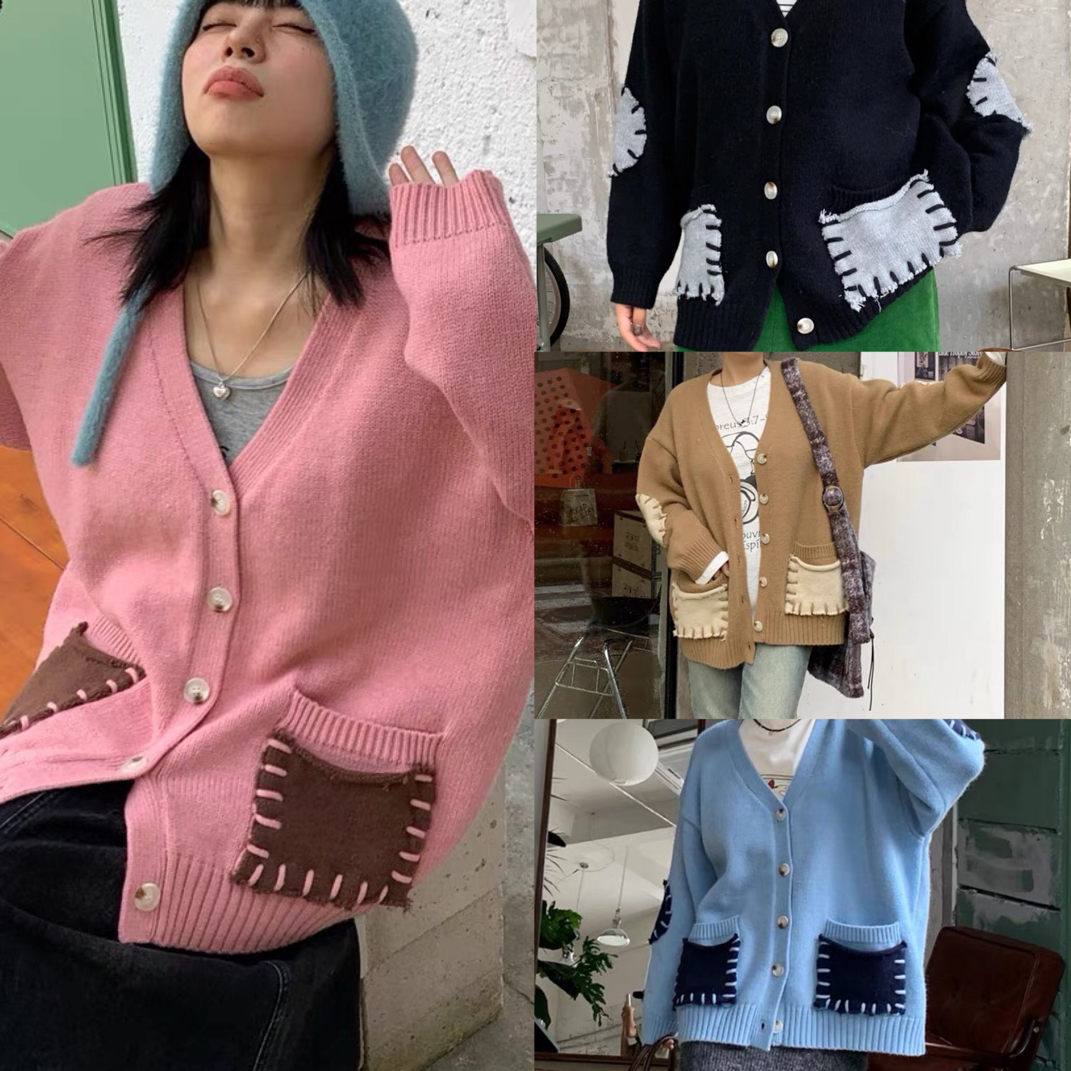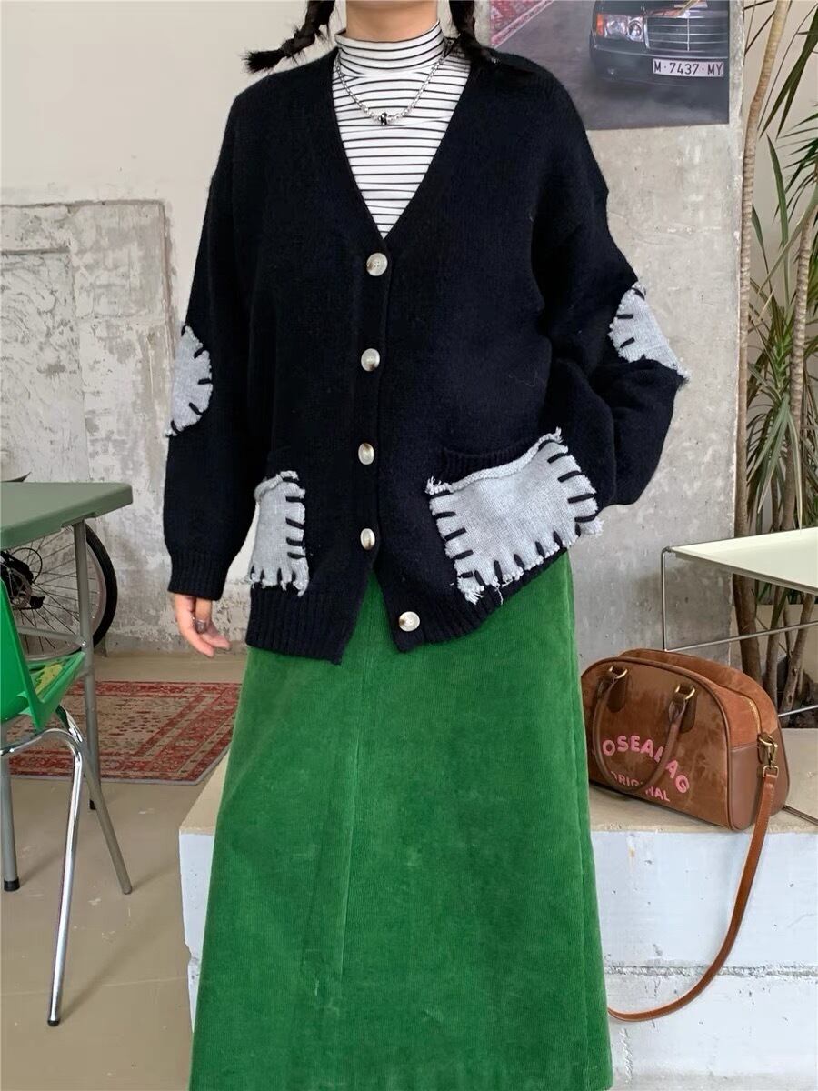 カーディガン ゆったり カジュアル シンプル パッチワーク