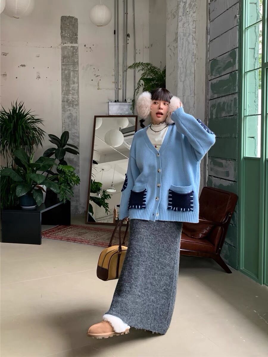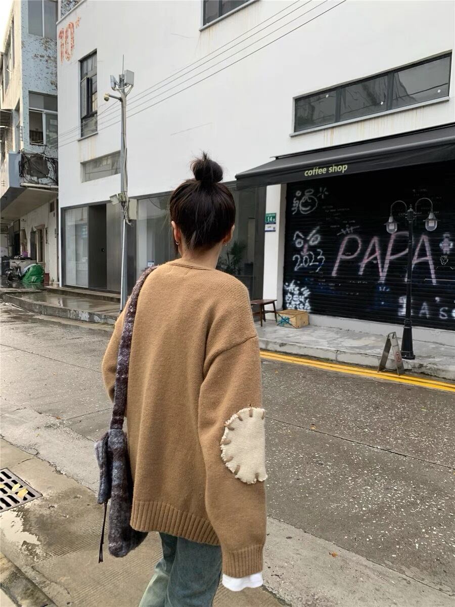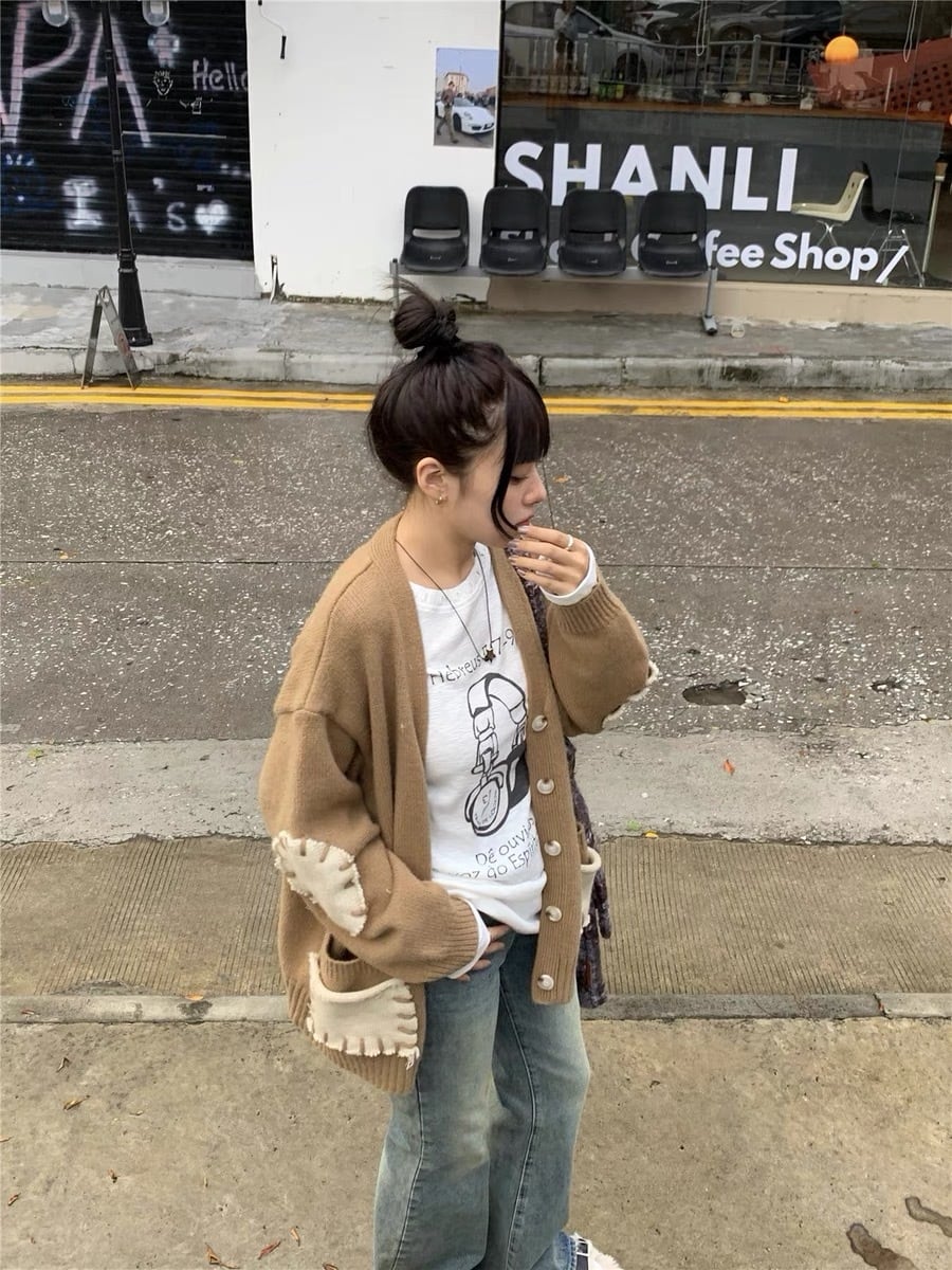 カーディガン ゆったり カジュアル シンプル パッチワーク