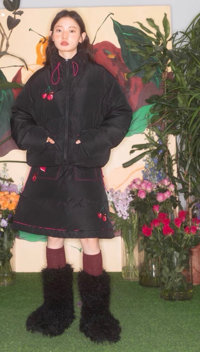 【スカート】黒 ダウン さくらんぼ ボトムス ダウンコート