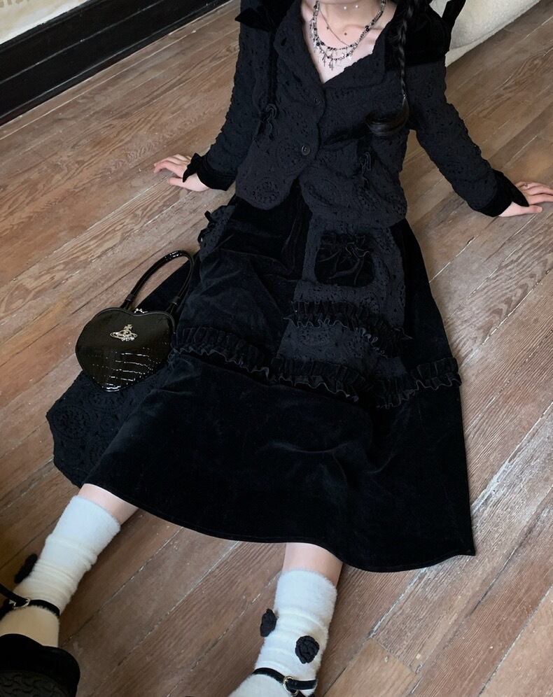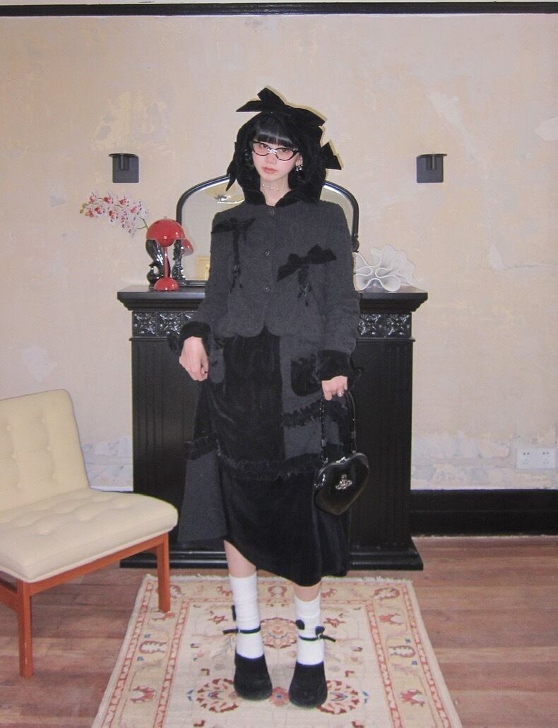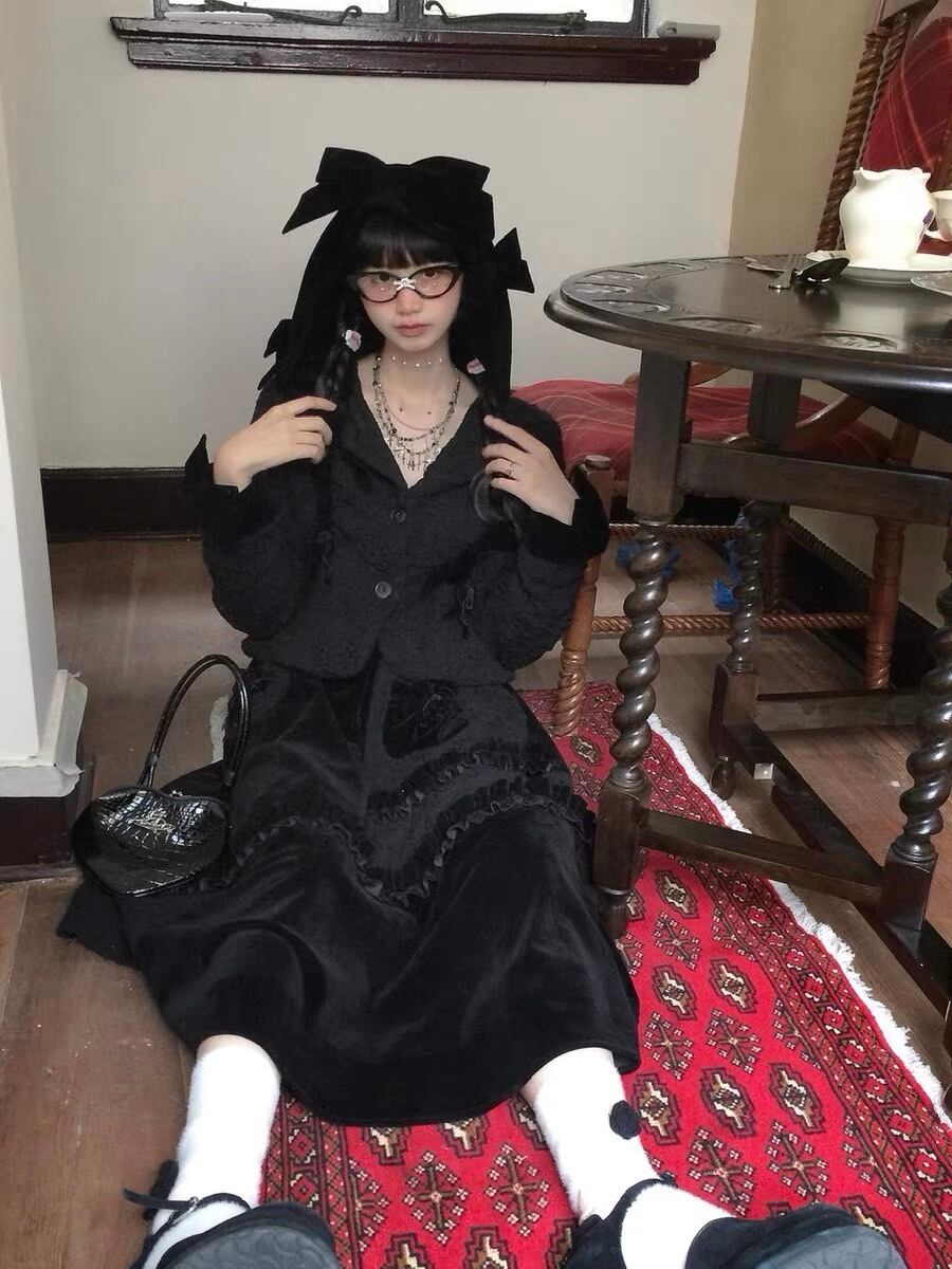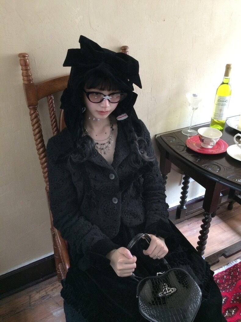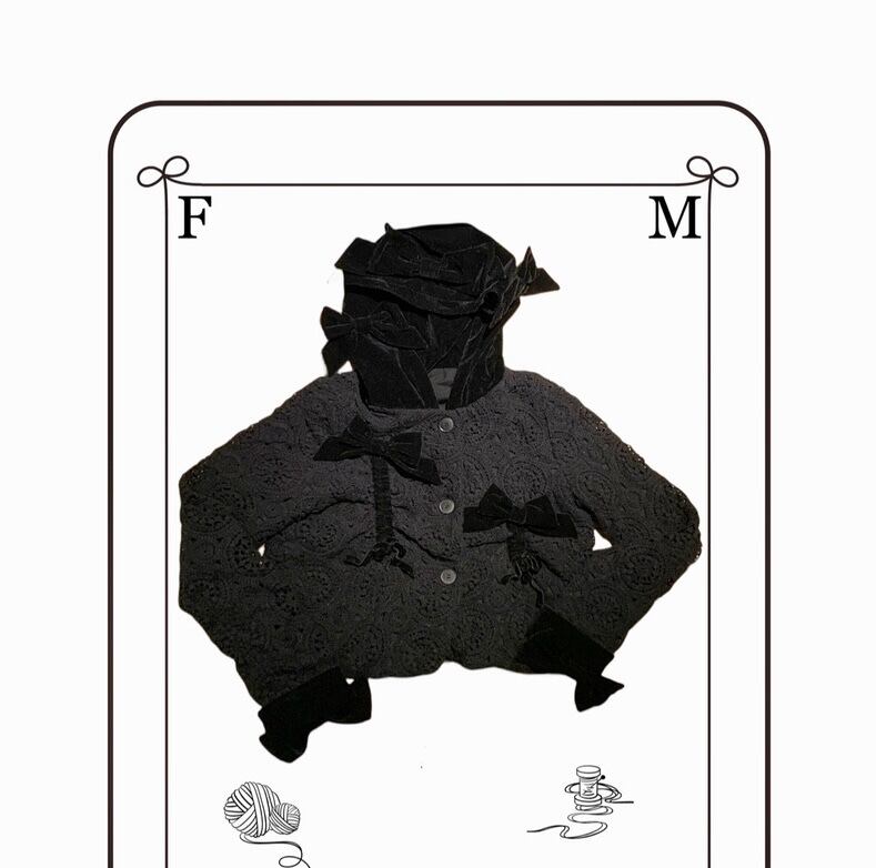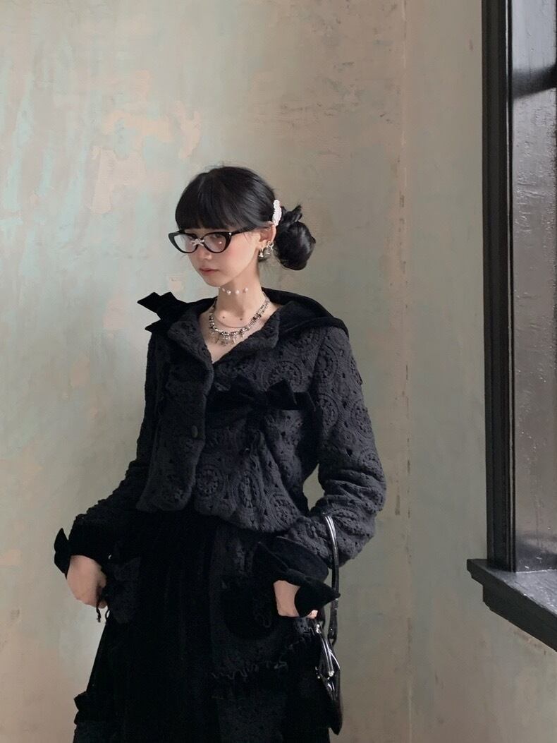 【ジャケット】フード リボン 黒 ジャケット アウター 可愛い