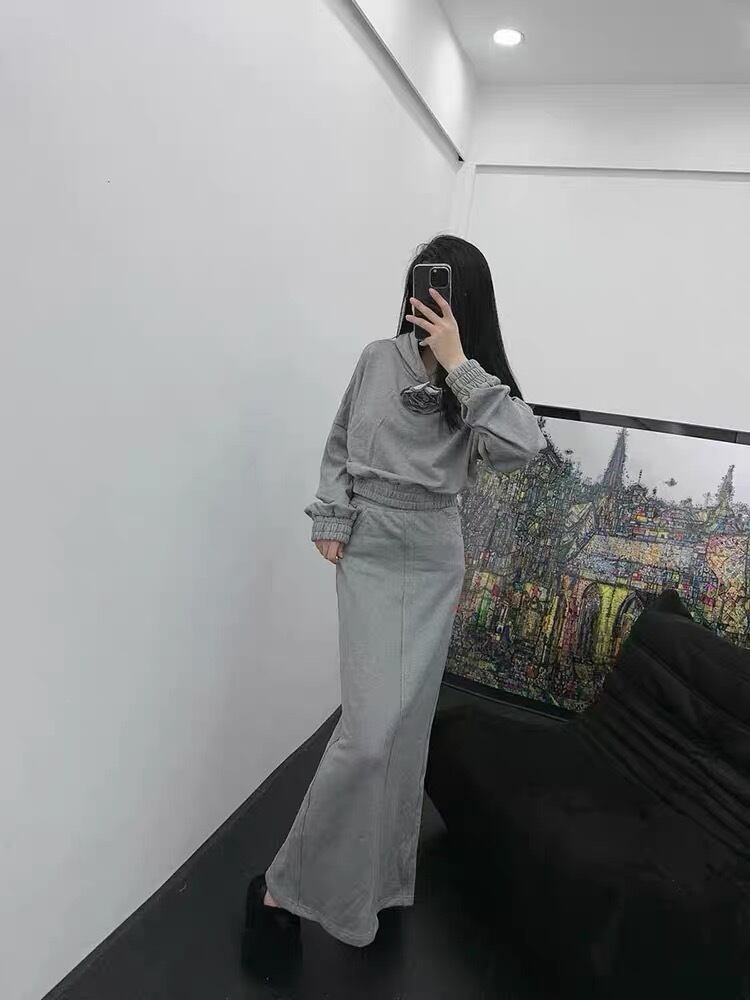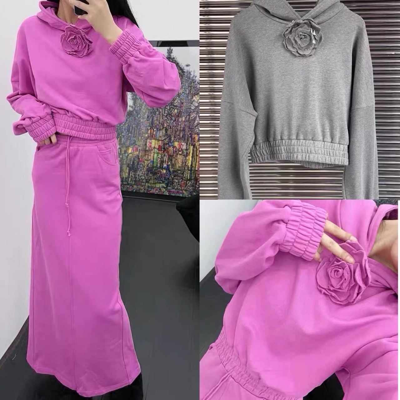 【セットアップ】紫 ピンク グレー スウェット パーカー ツーピース