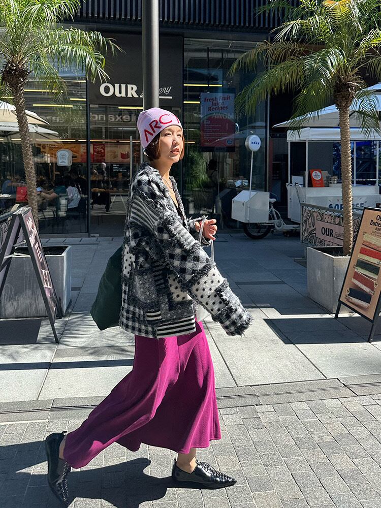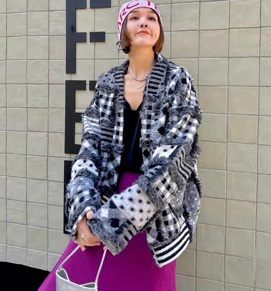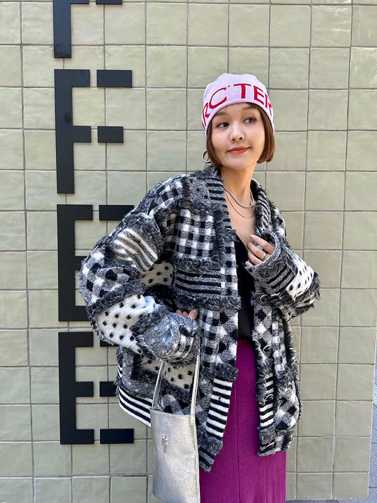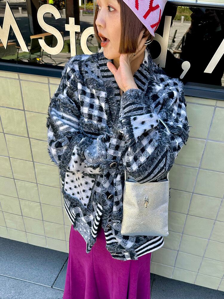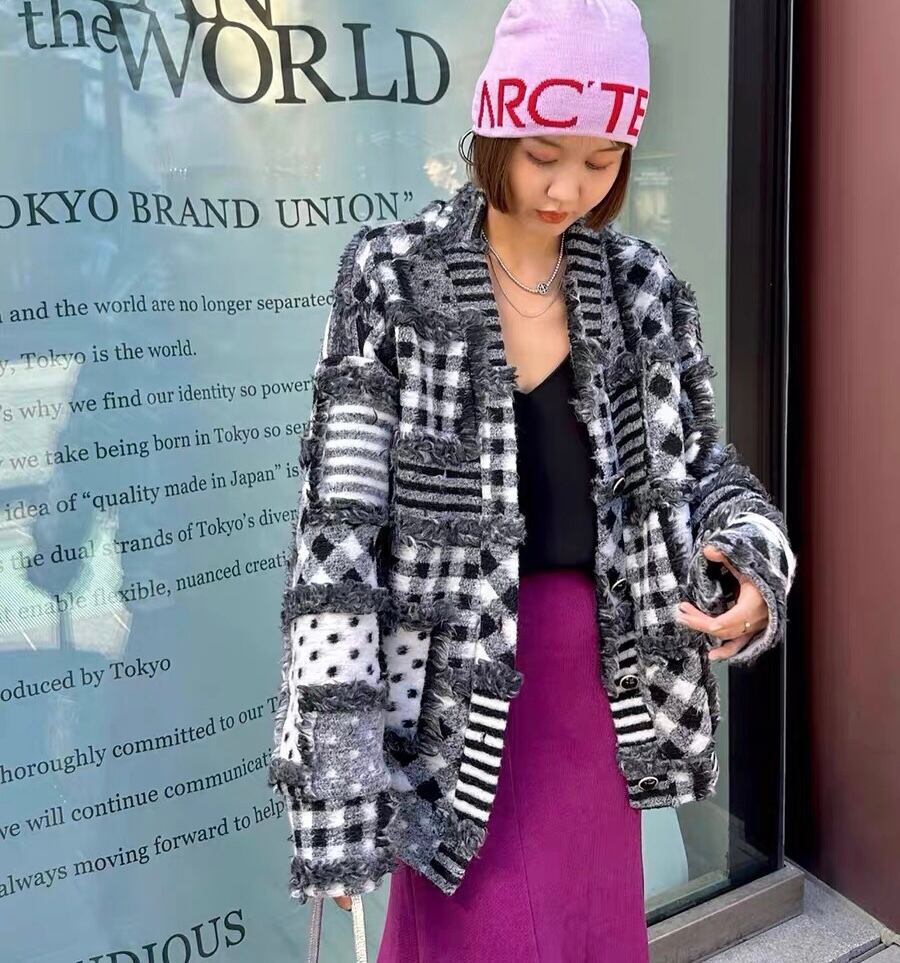 ジャケット アウター 白 黒 チェック ボーダー パッチワーク