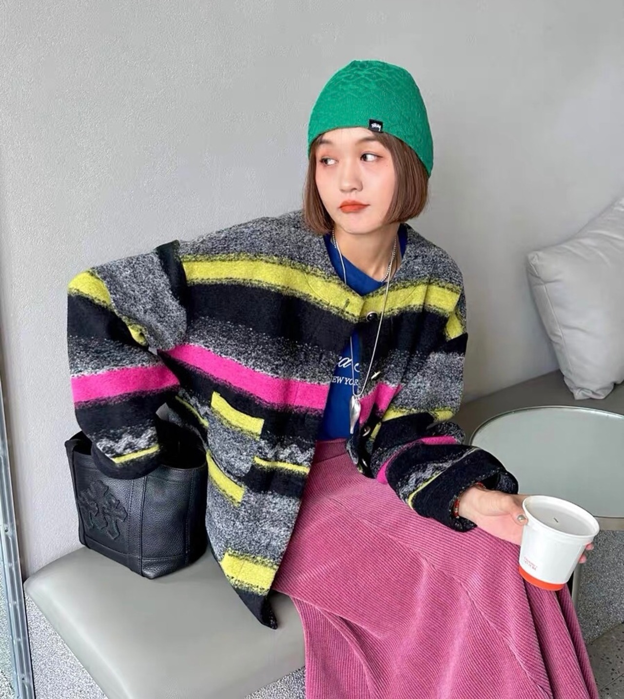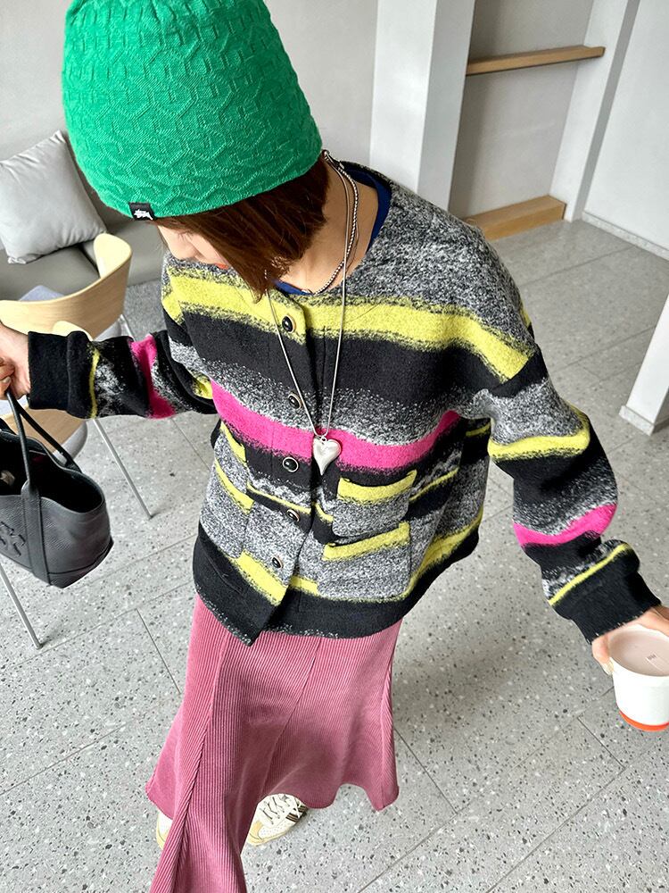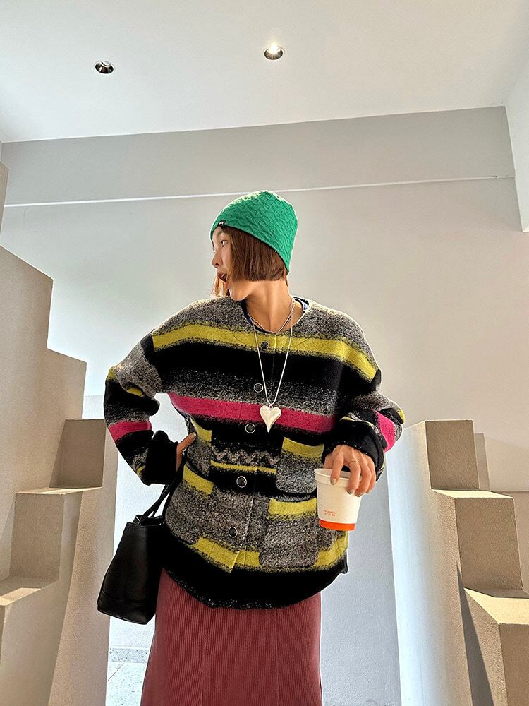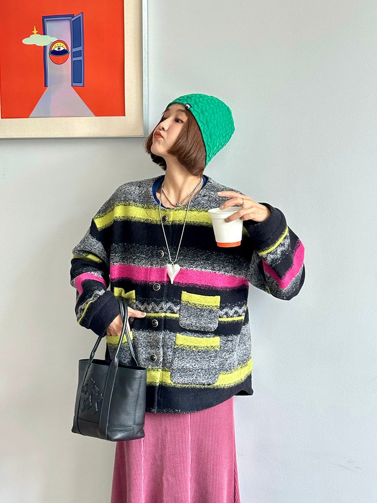 ジャケット ピンク 黄色 黒 チェック ボーダー アウター