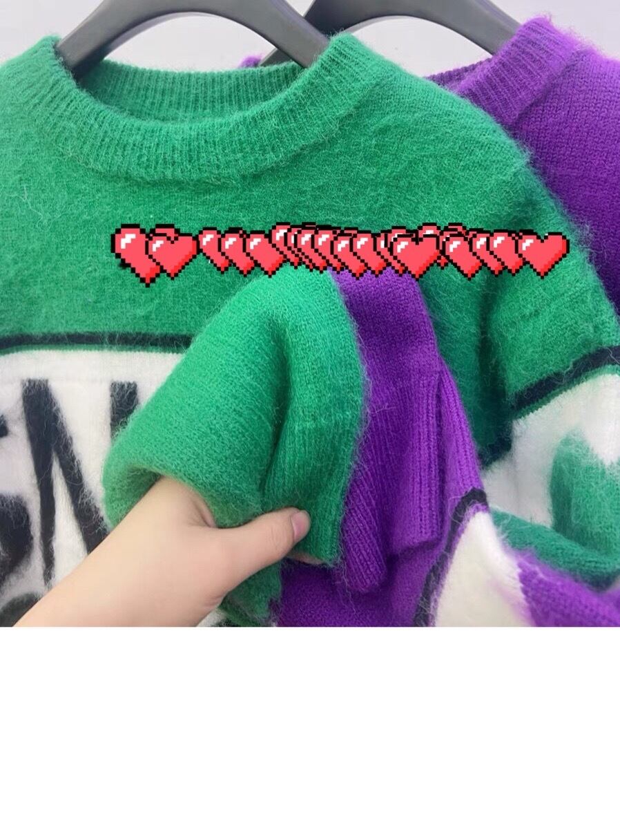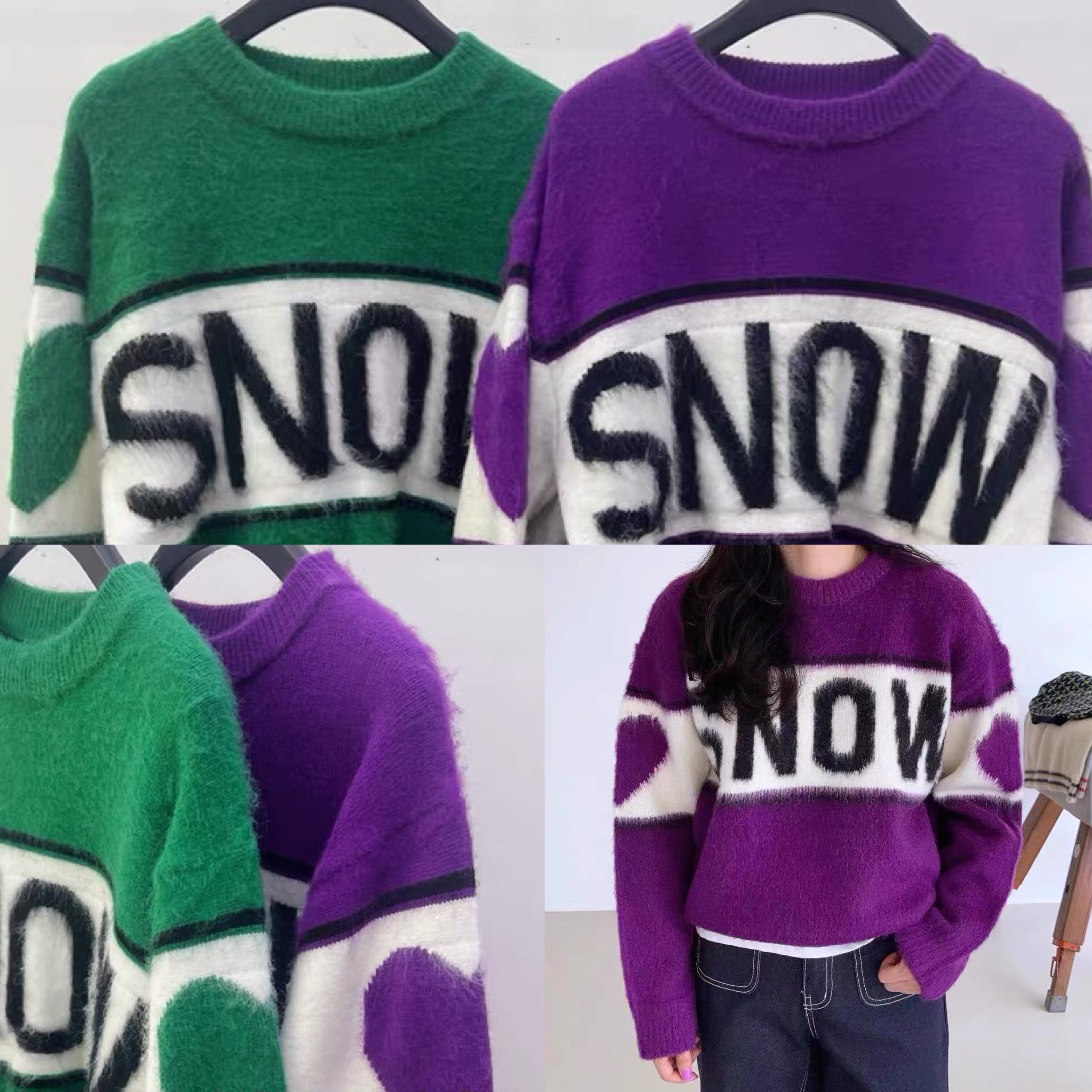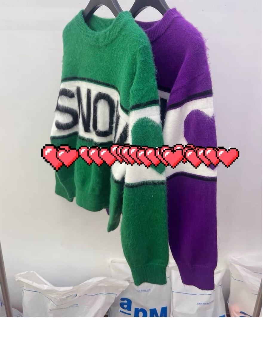 セーター ニット 紫 緑 ハート カジュアル カーディガン
