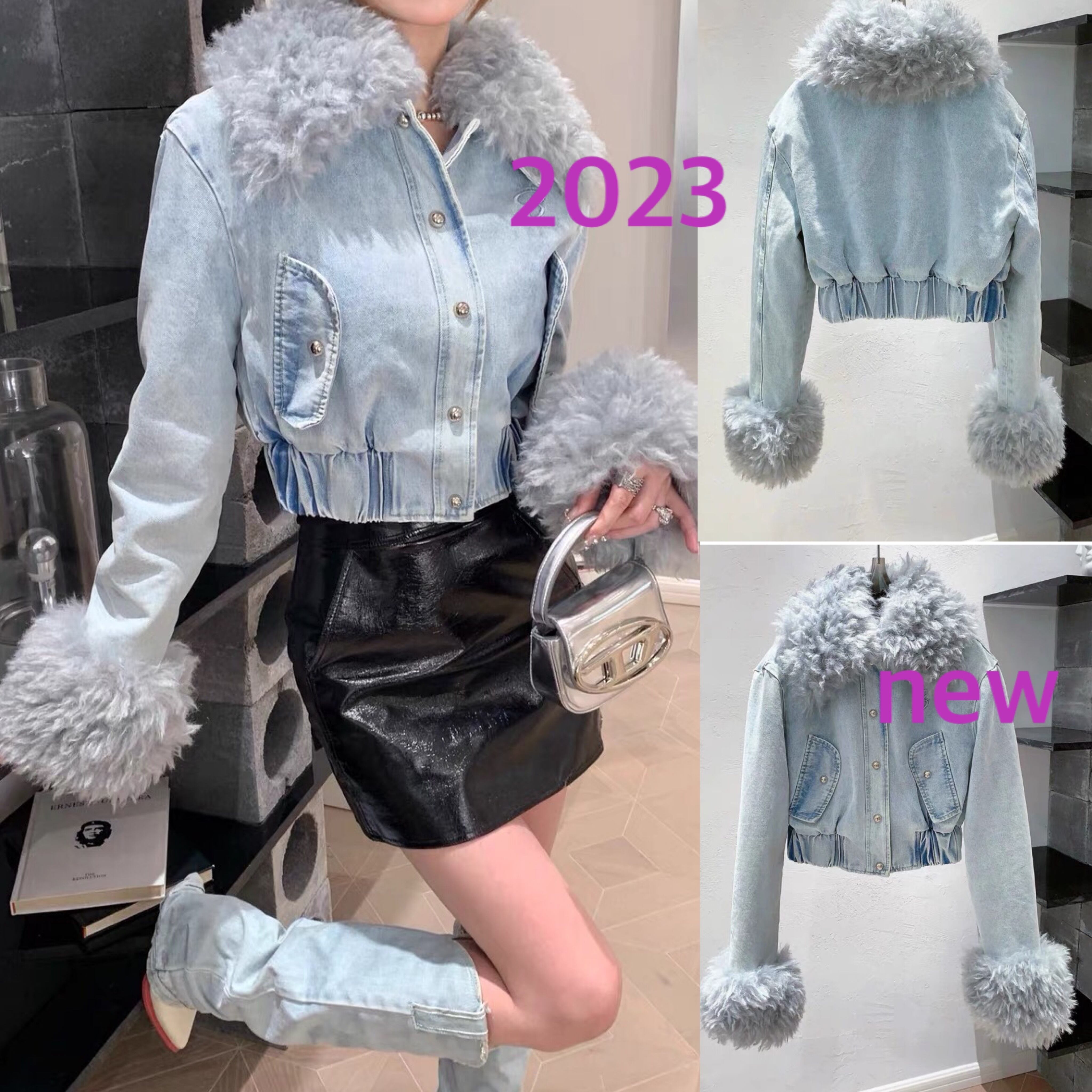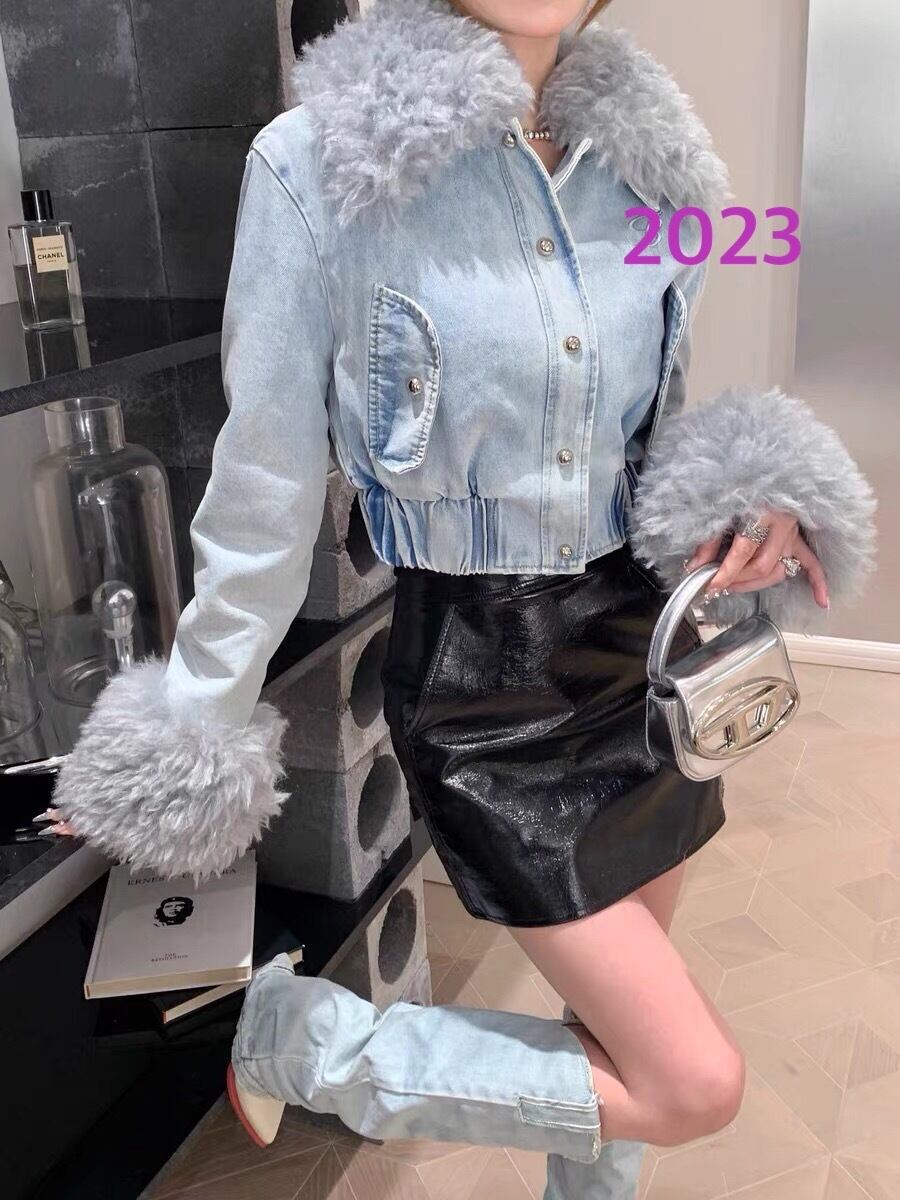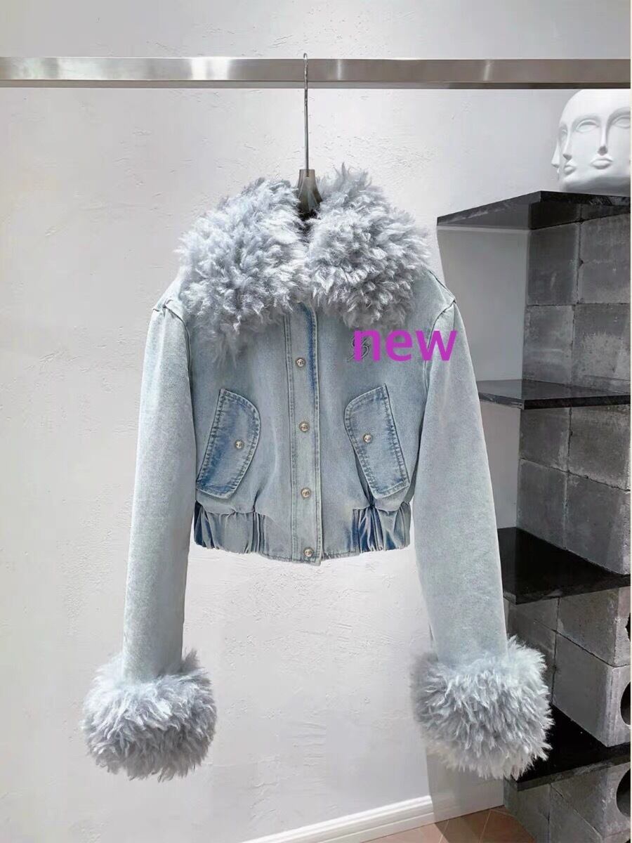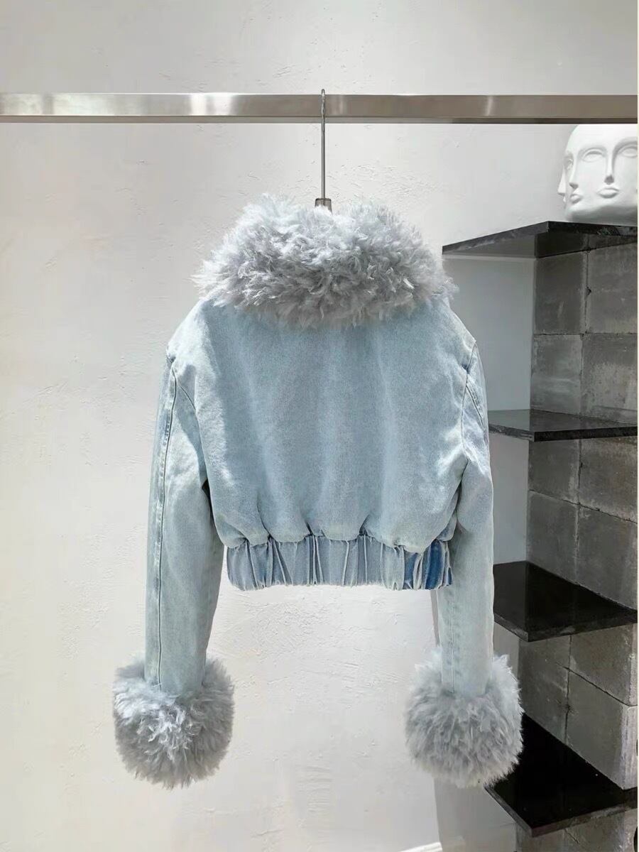 デニム ジャケット ファー 水色 グレー アウター カーディガン
