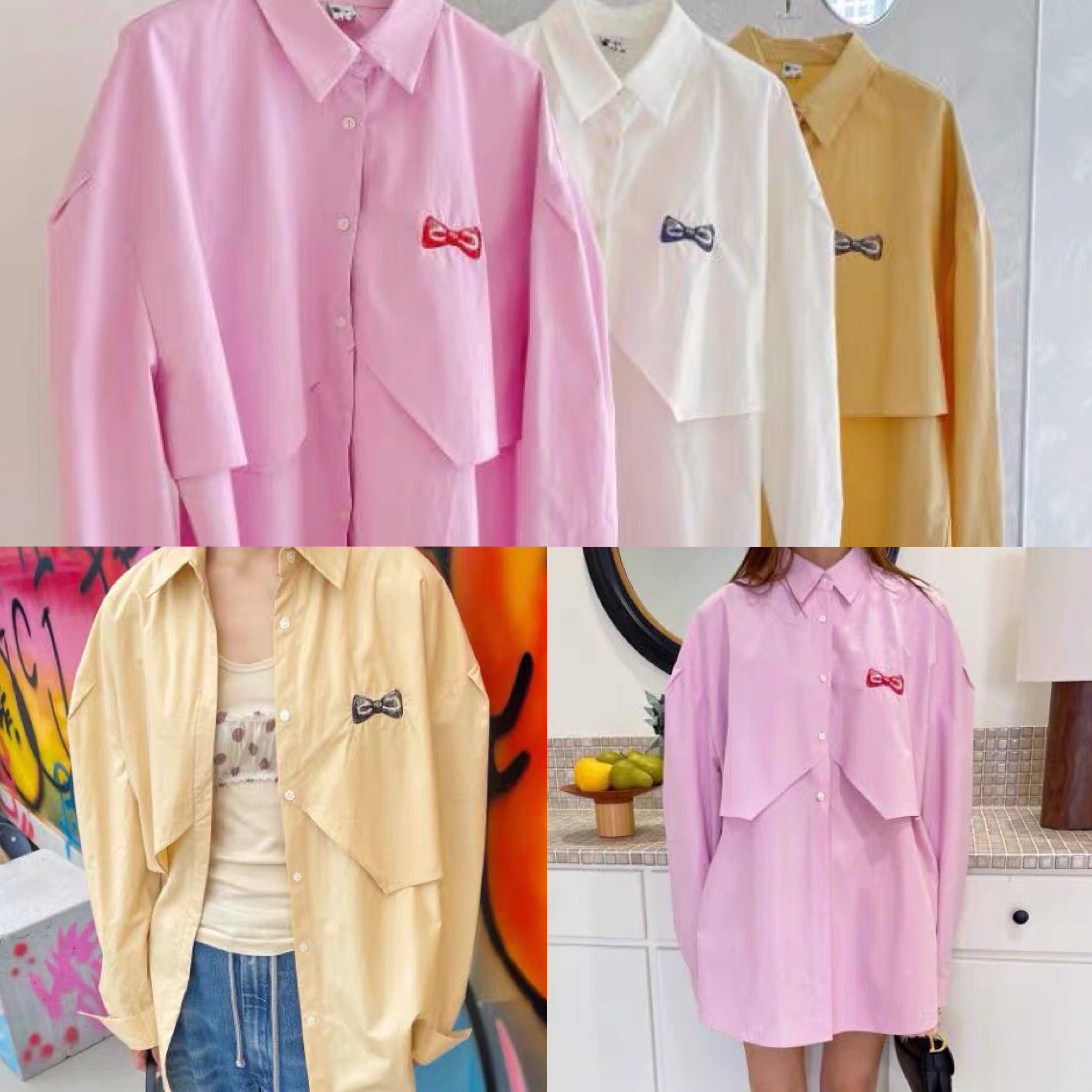 ブラウス 白 リボン ピンク 黄色 ベージュ カジュアル