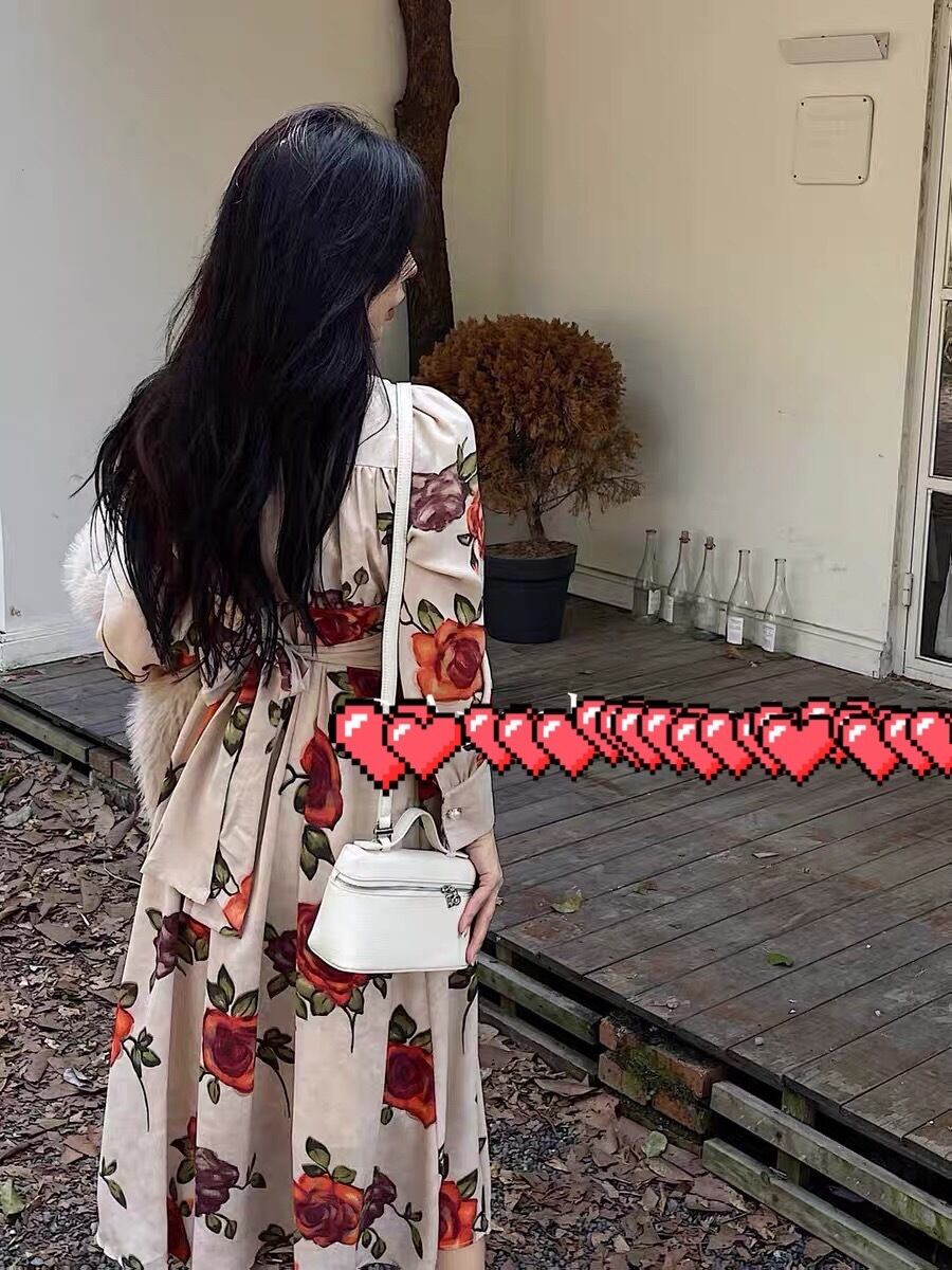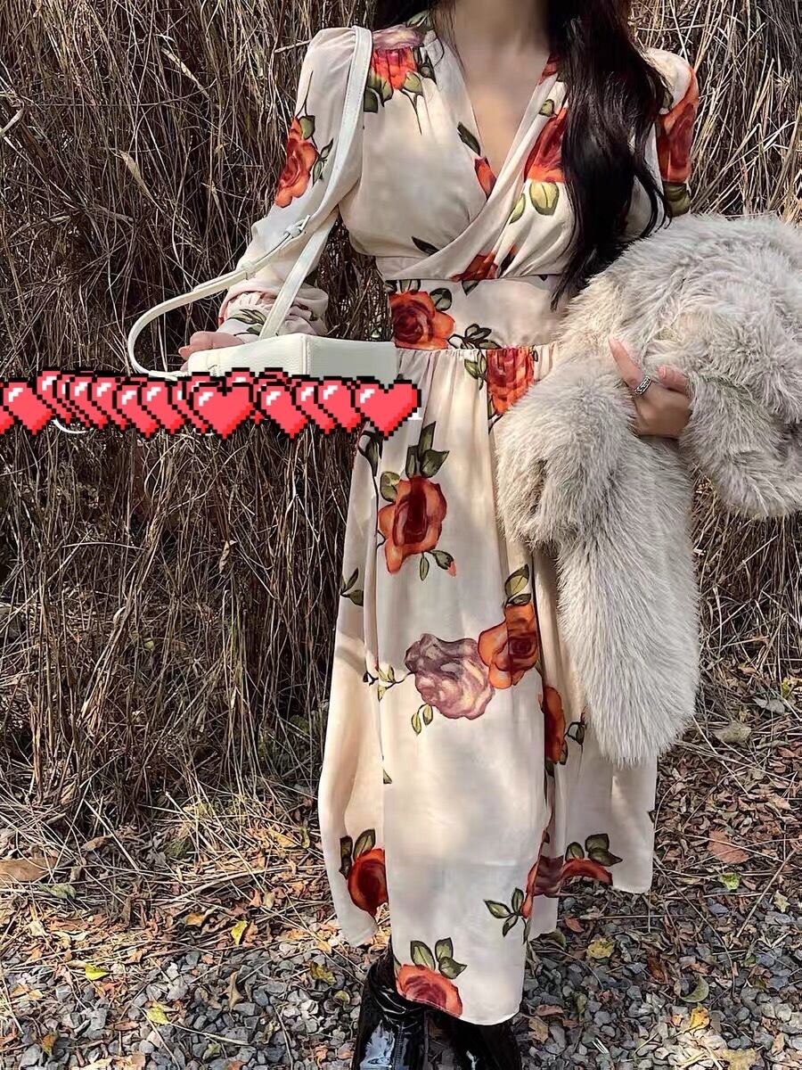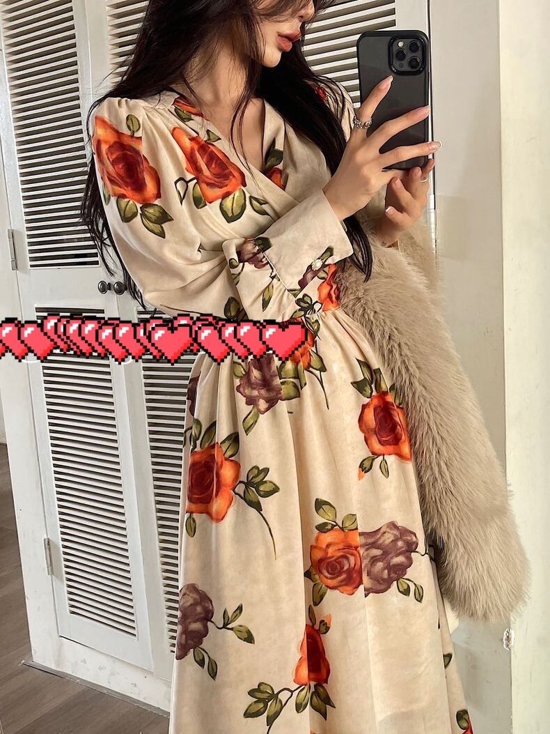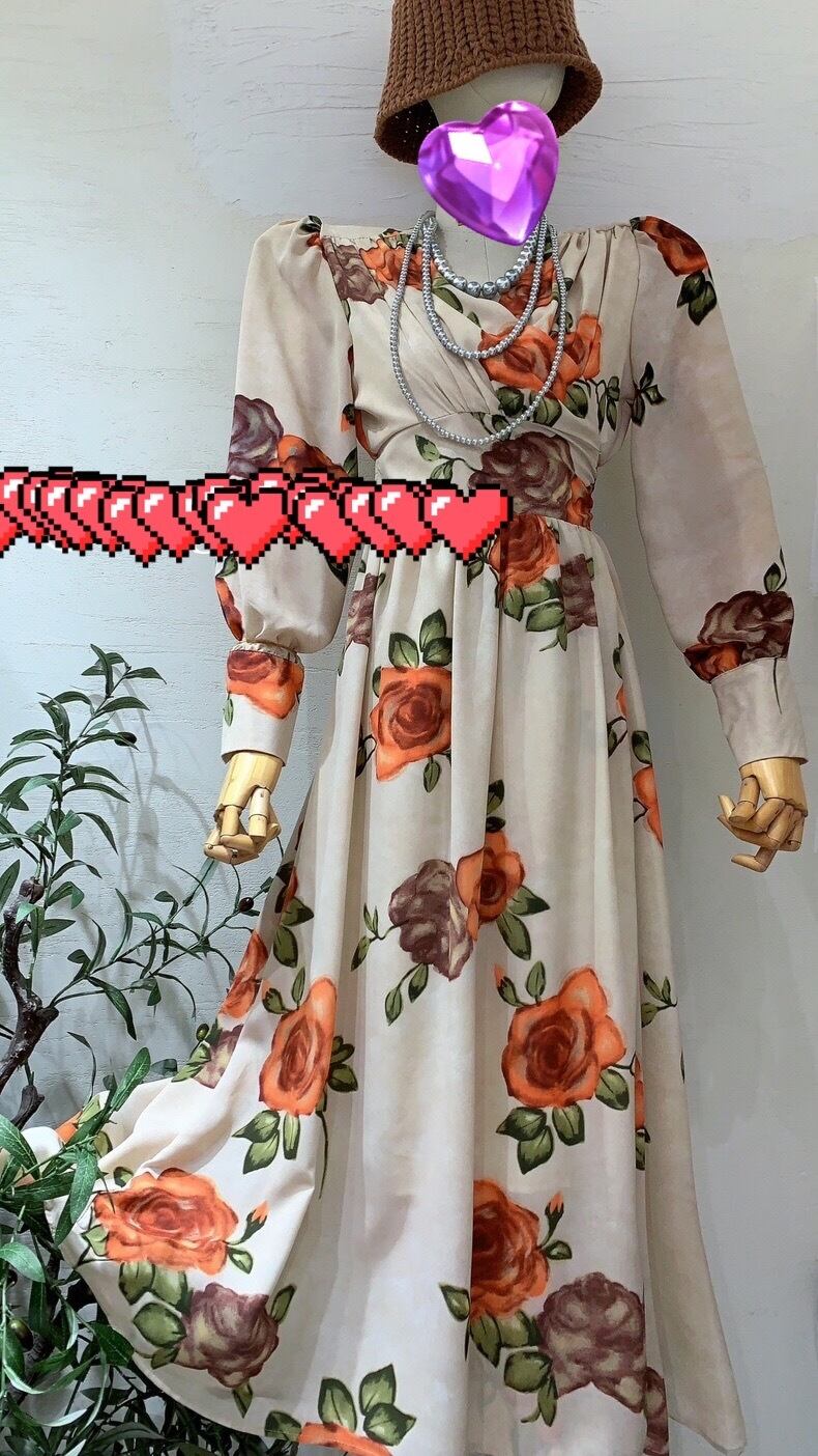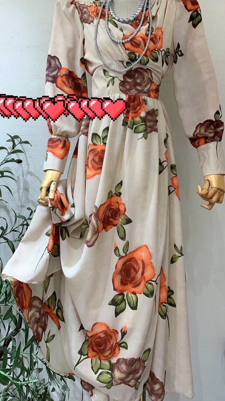 ワンピース オレンジ ベージュ 花柄 フラワー エレガント
