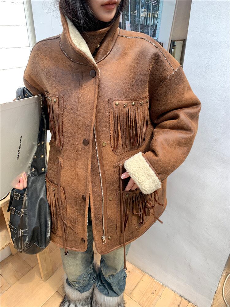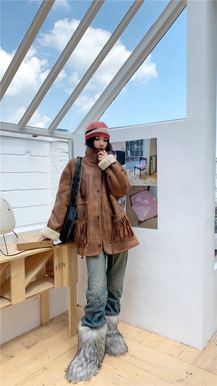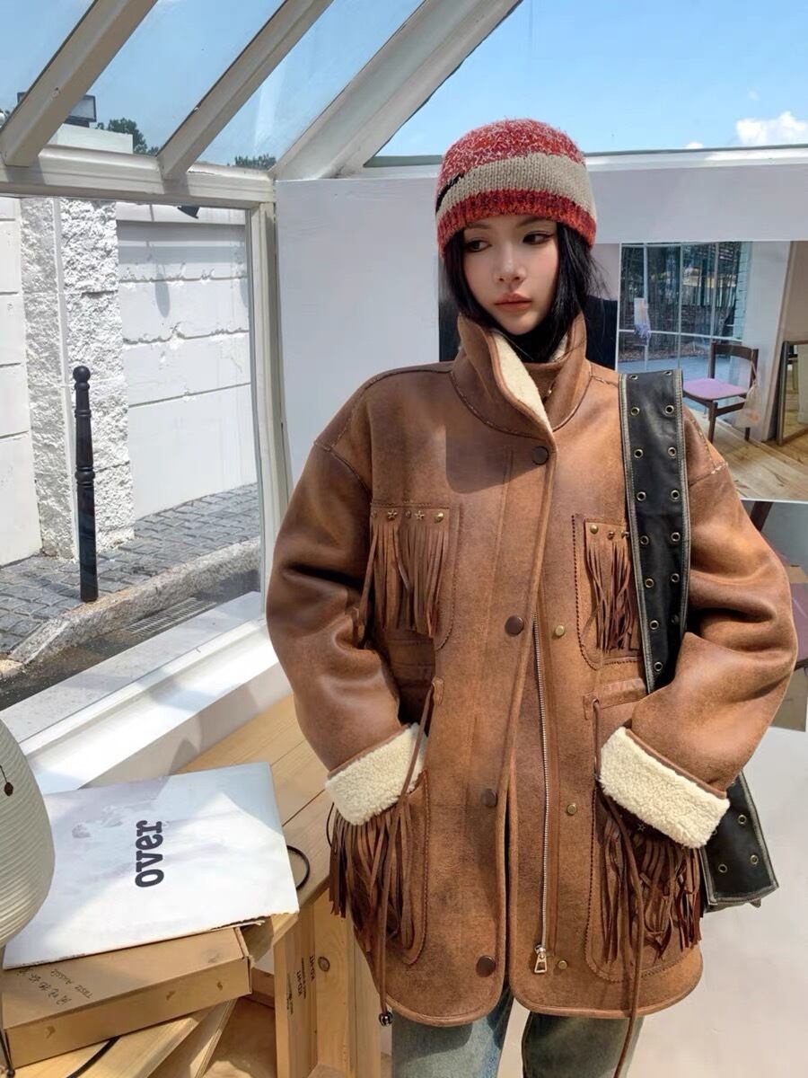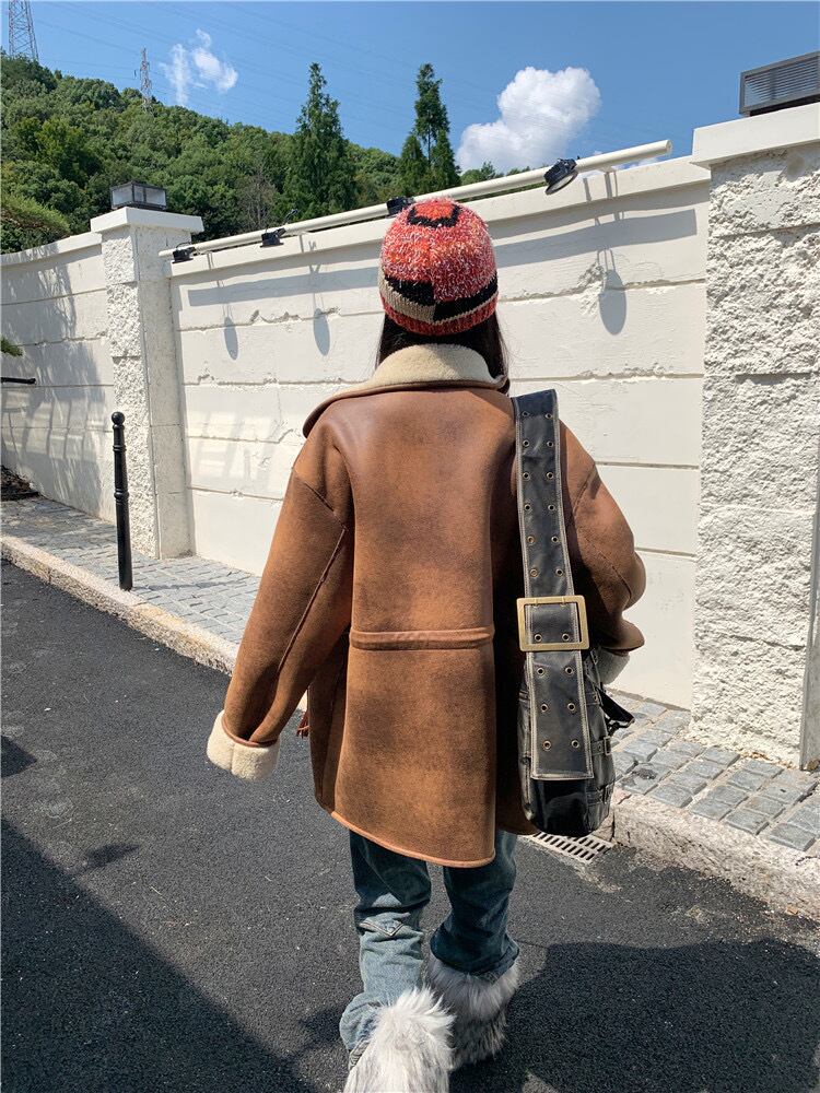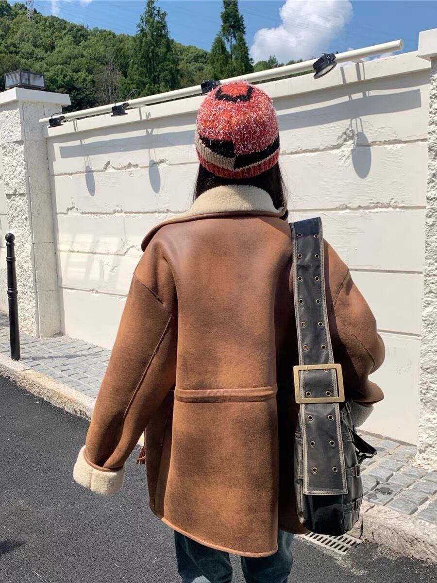アウター 茶色 レザー ムートン コート ジャケット