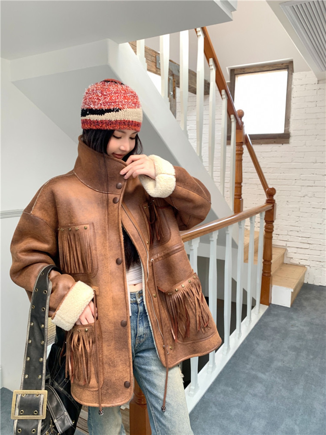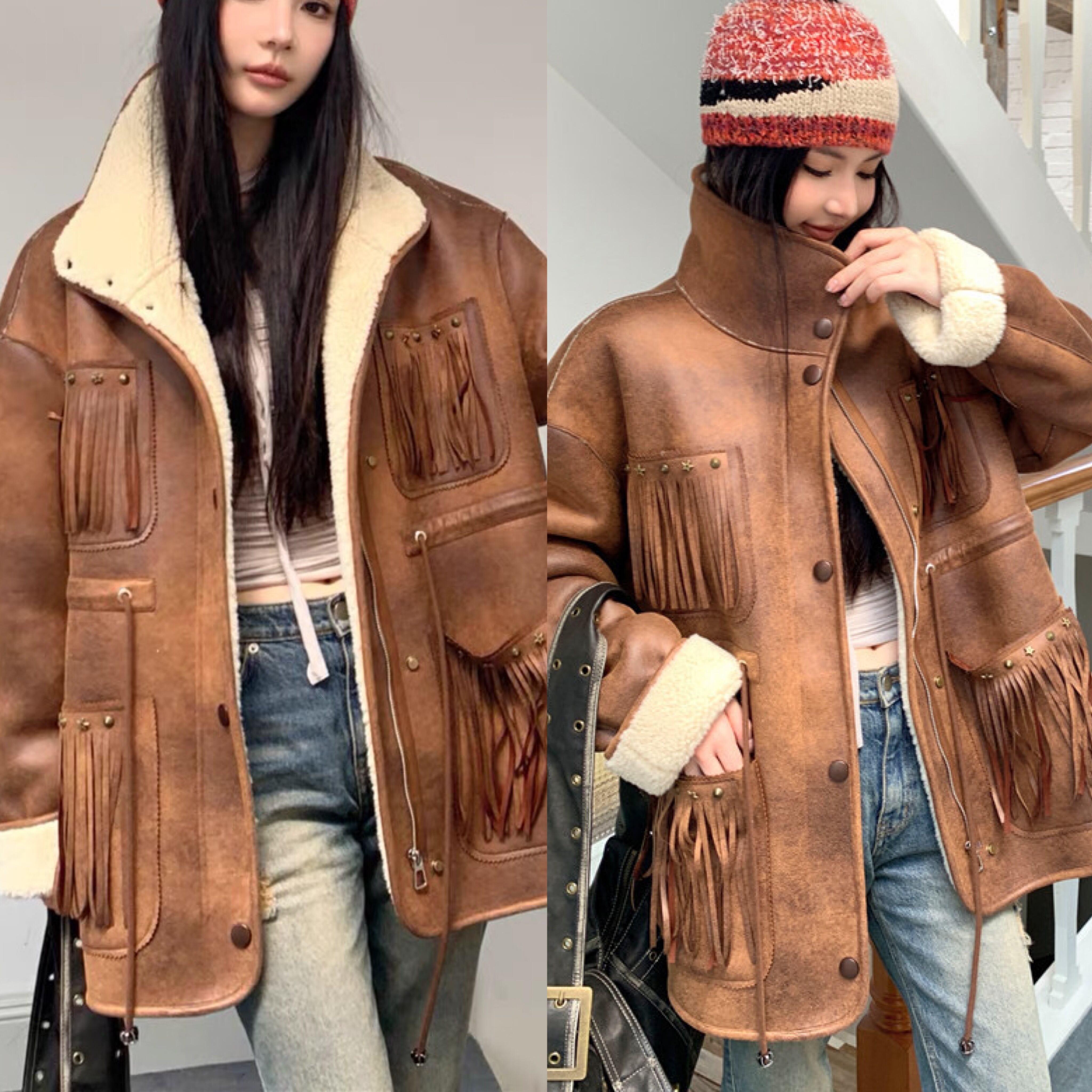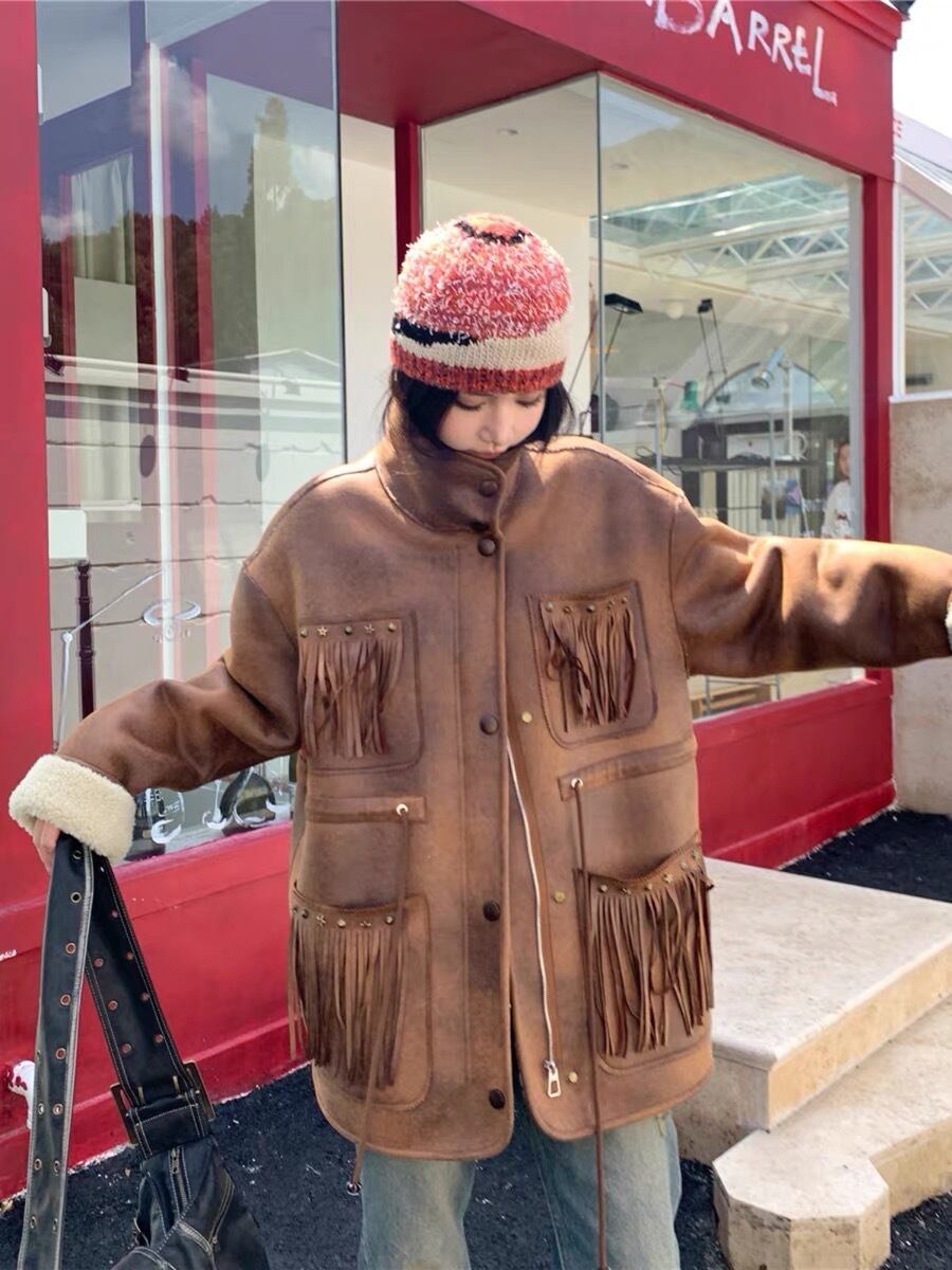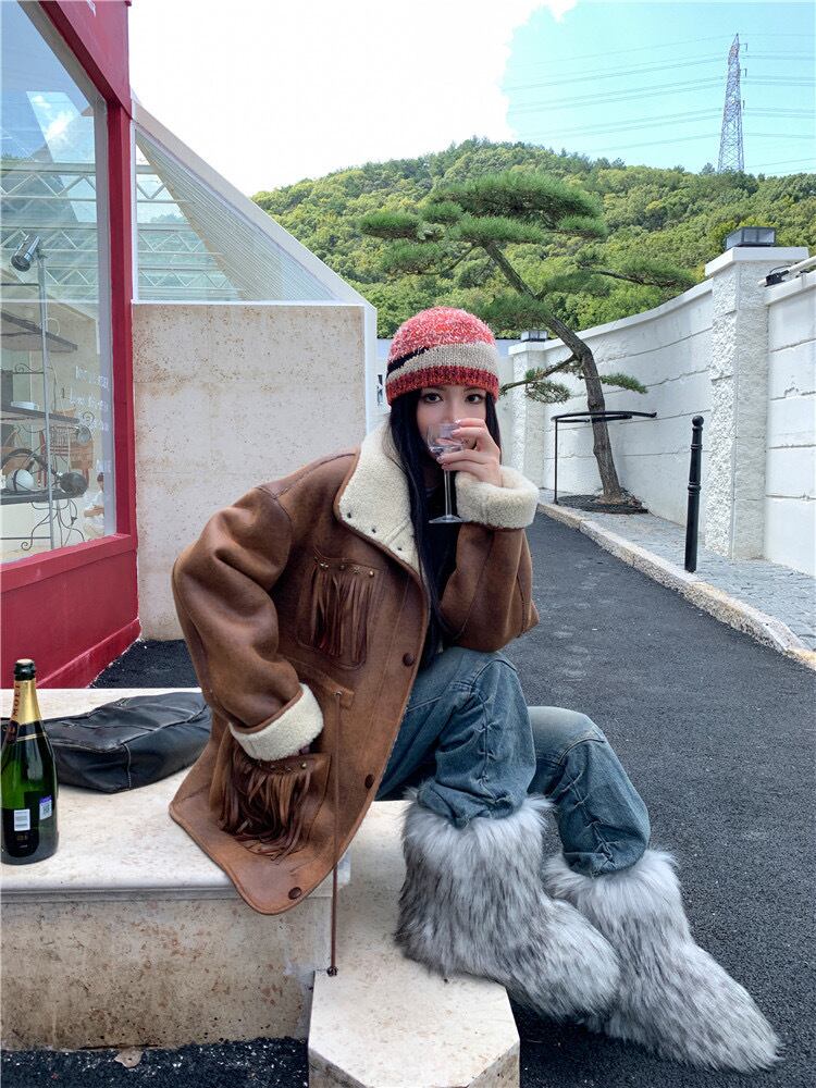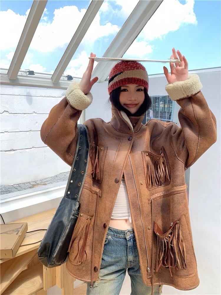 アウター 茶色 レザー ムートン コート ジャケット