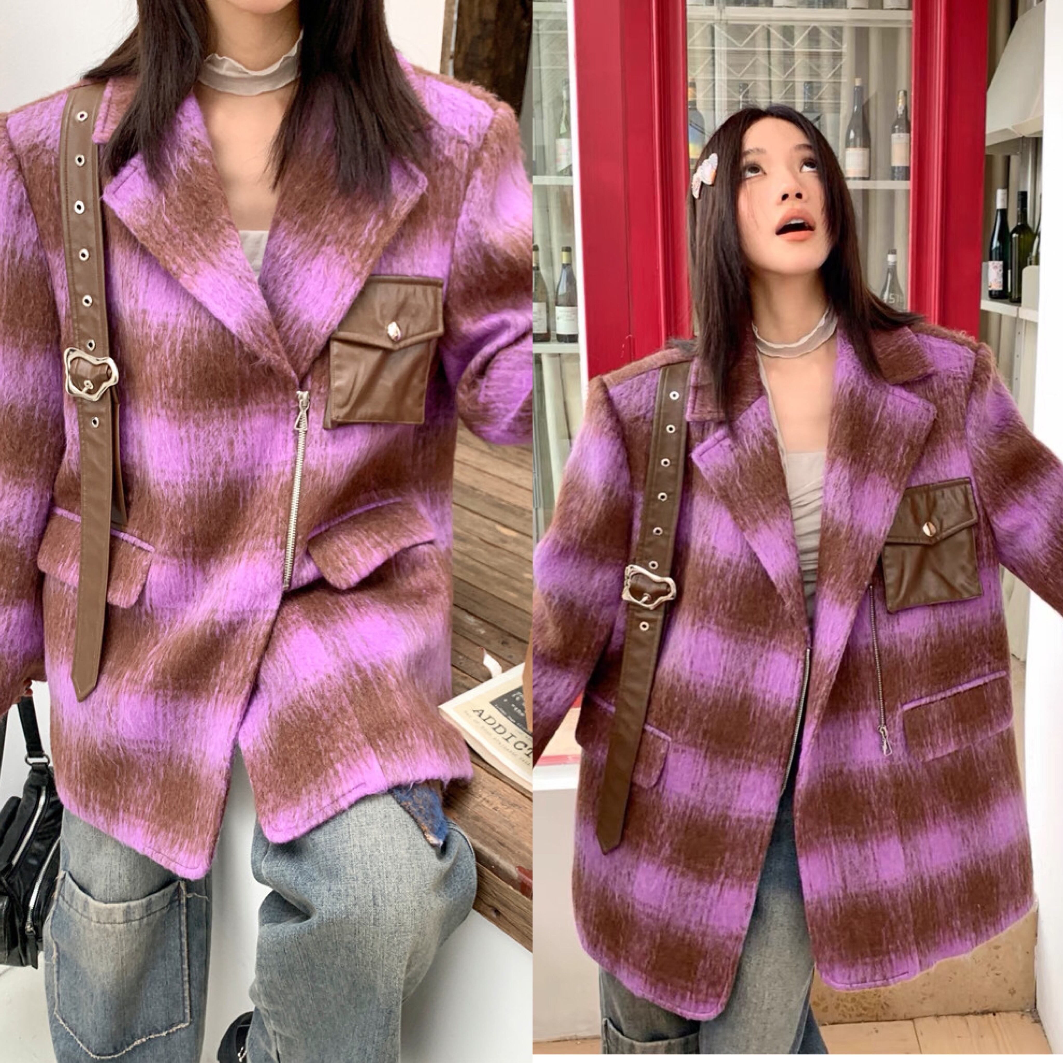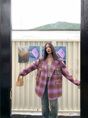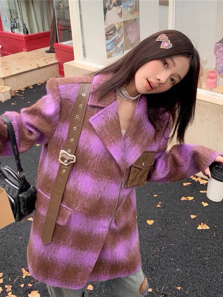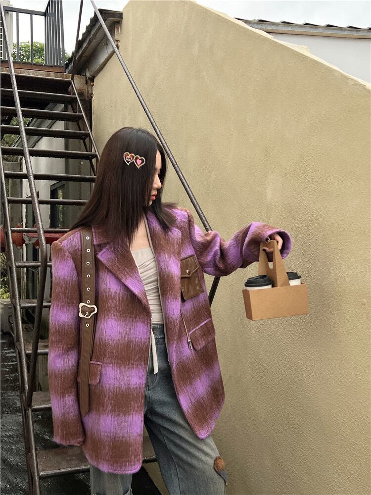 ジャケット 紫 チェック アウター コート 茶色