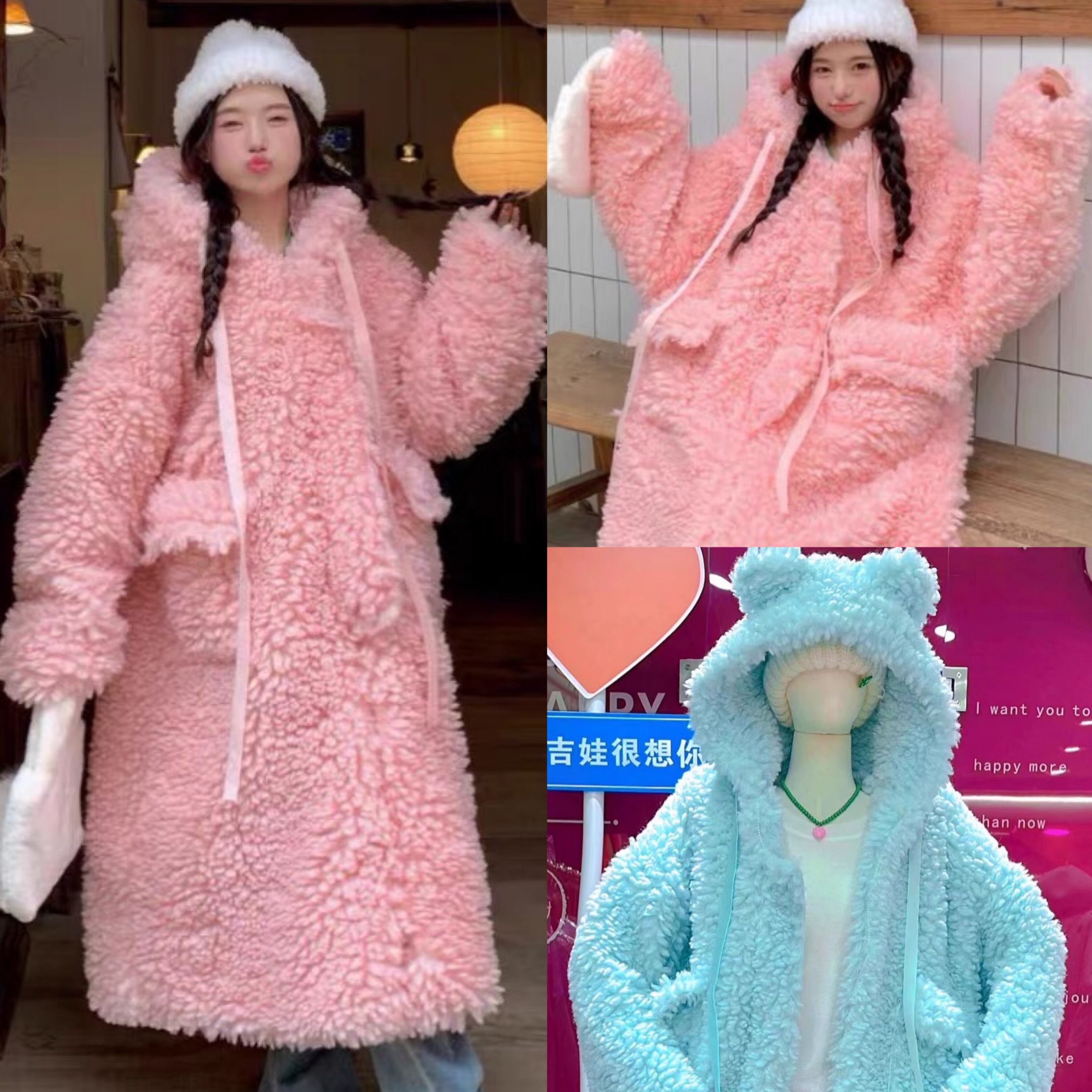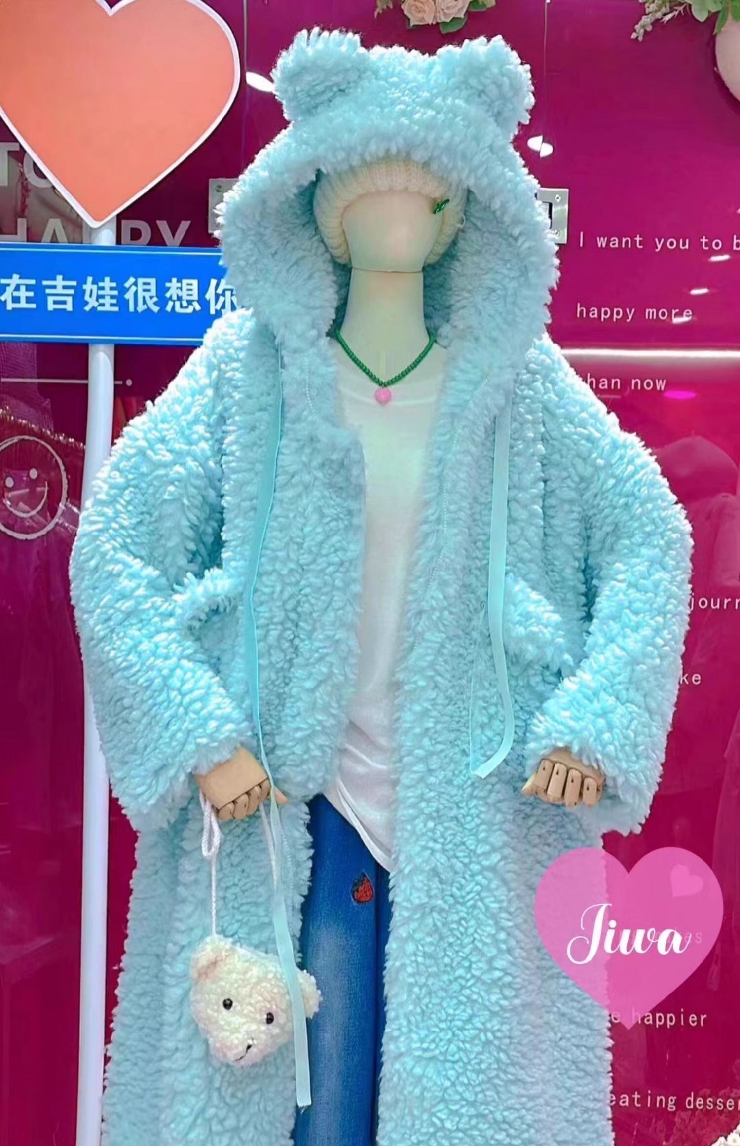 コート くま フード パーカー ピンク 水色 可愛い
