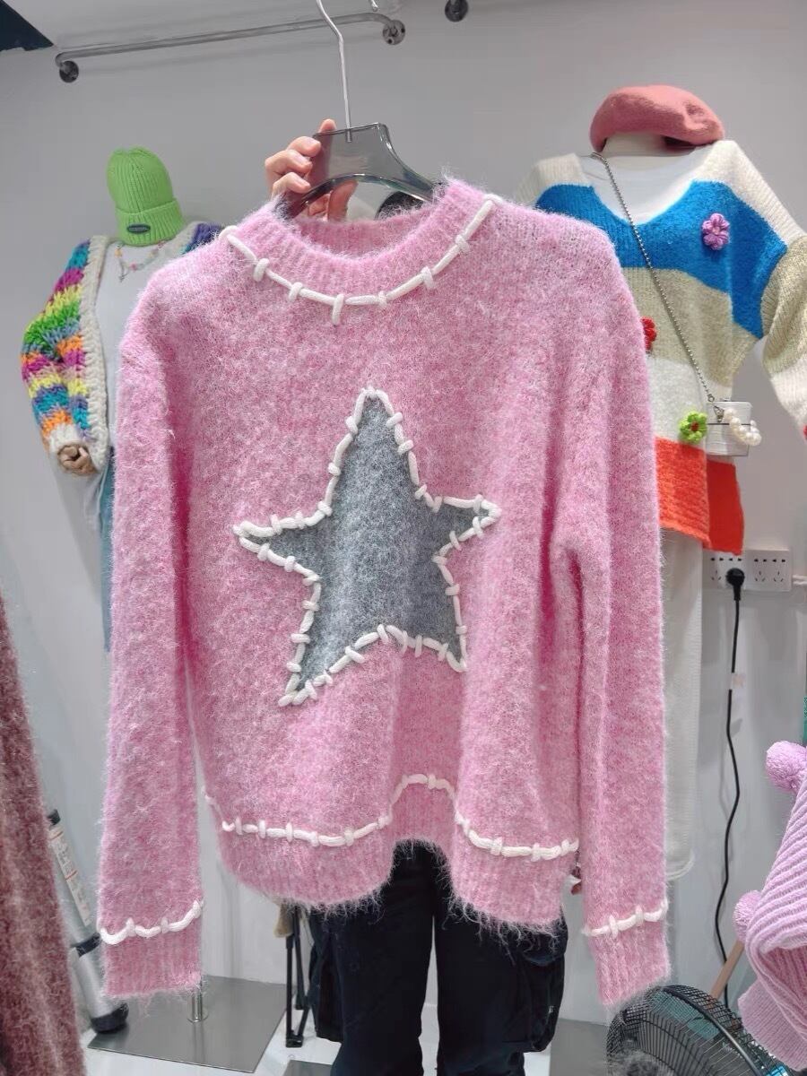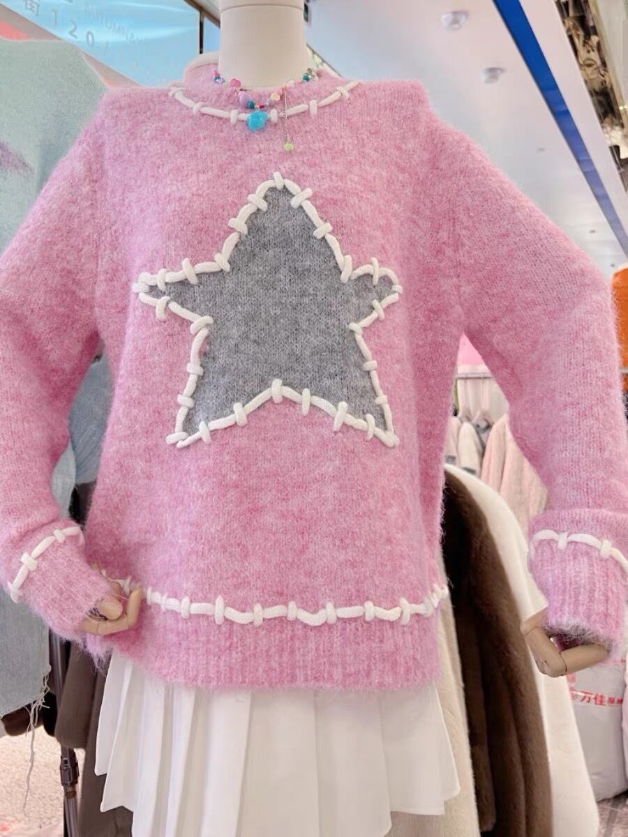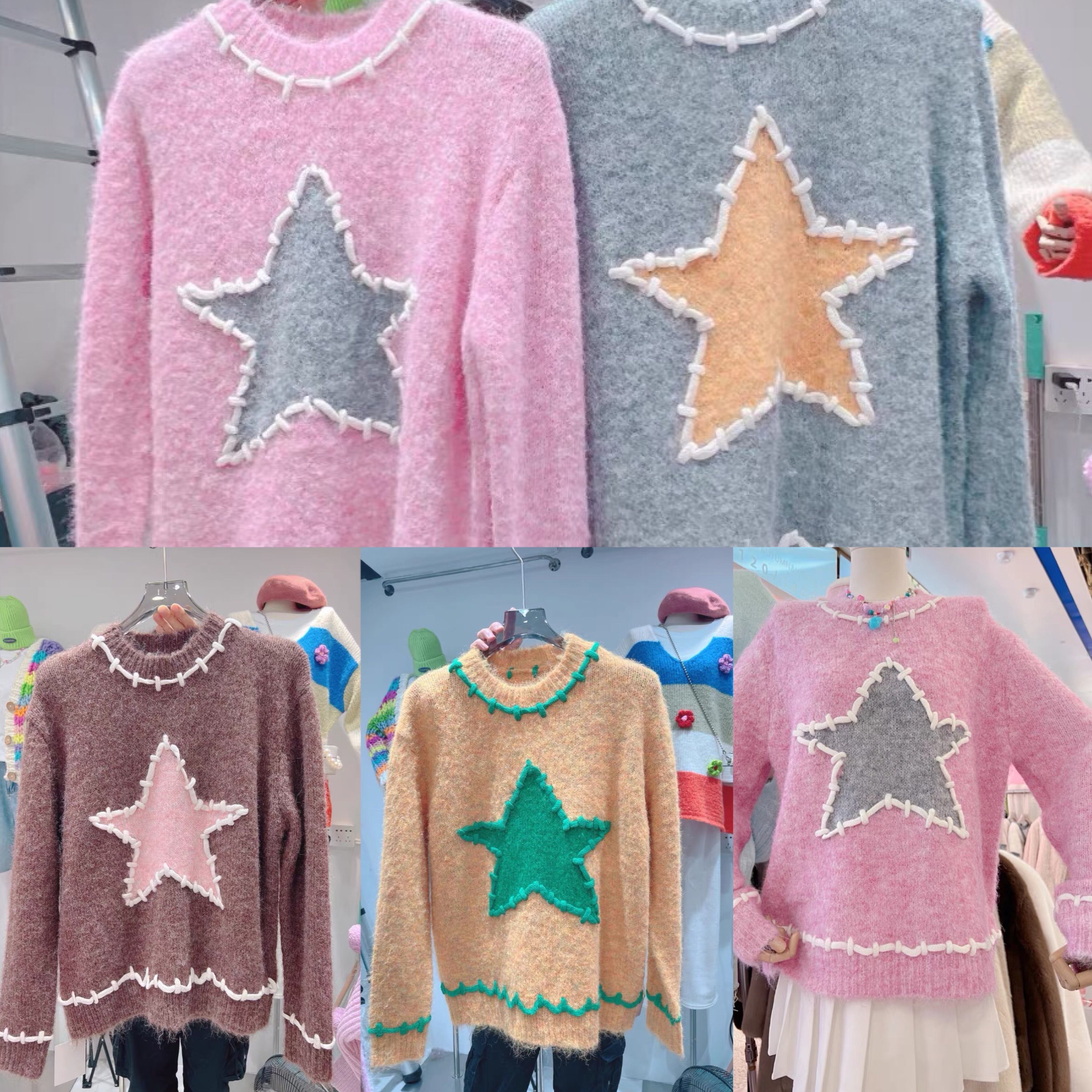 セーター ニット 星 ピンク 水色 黄色 茶色 紫