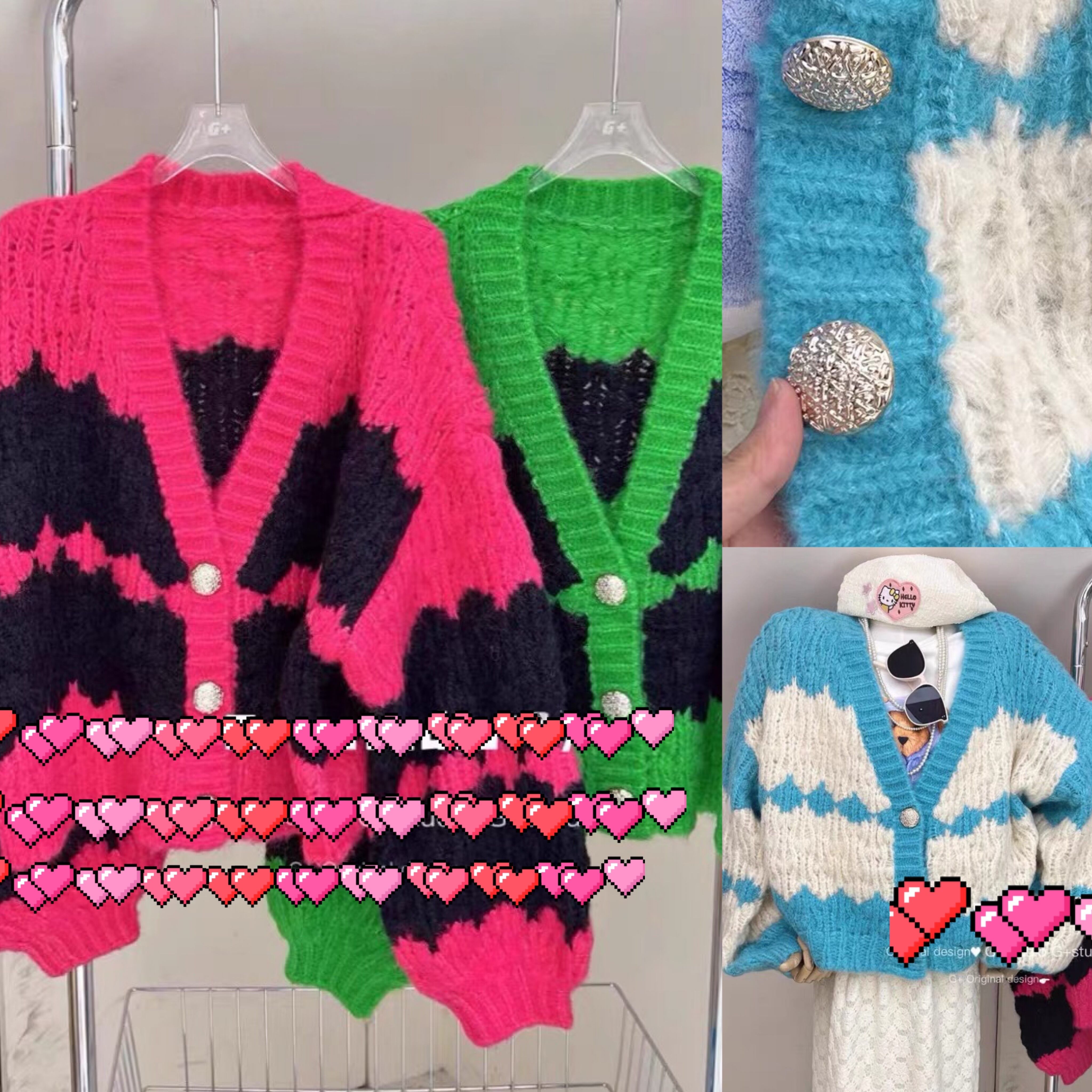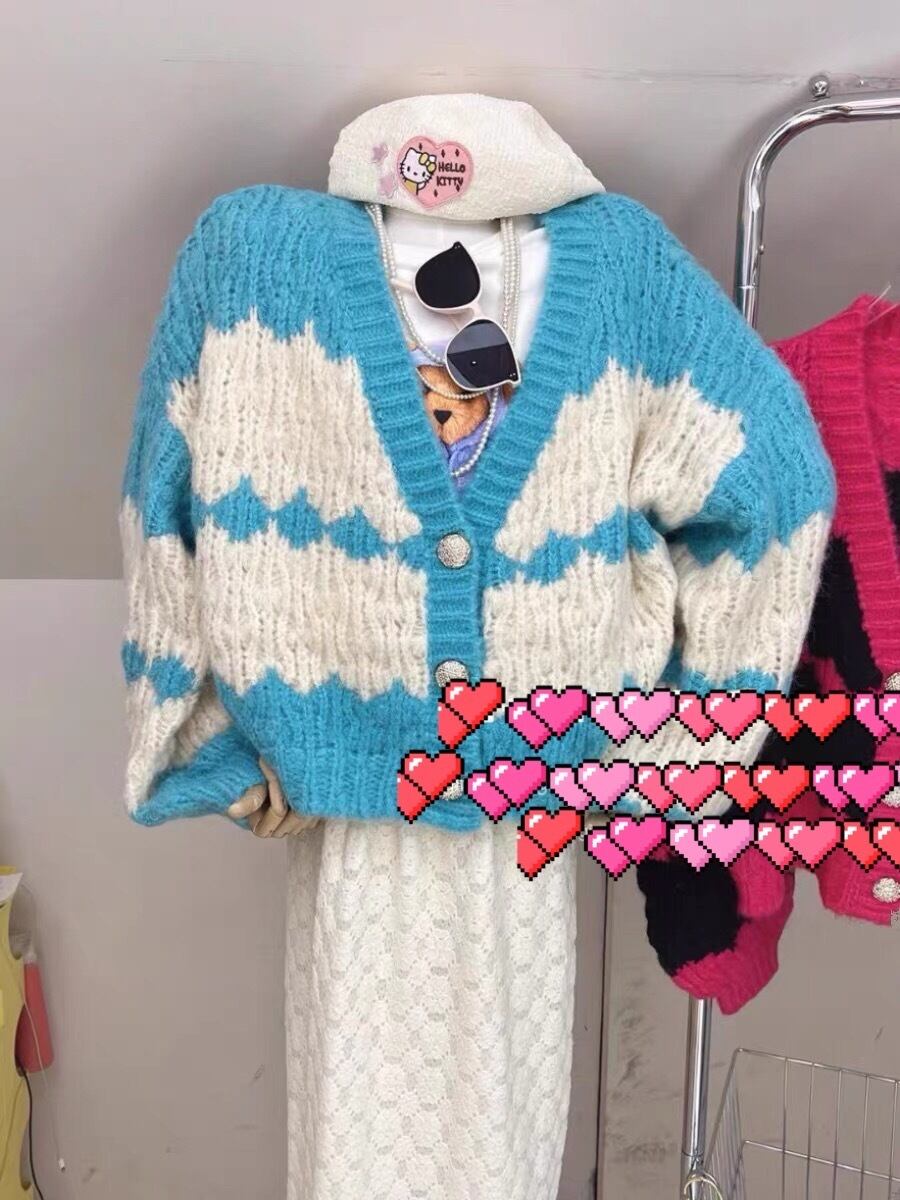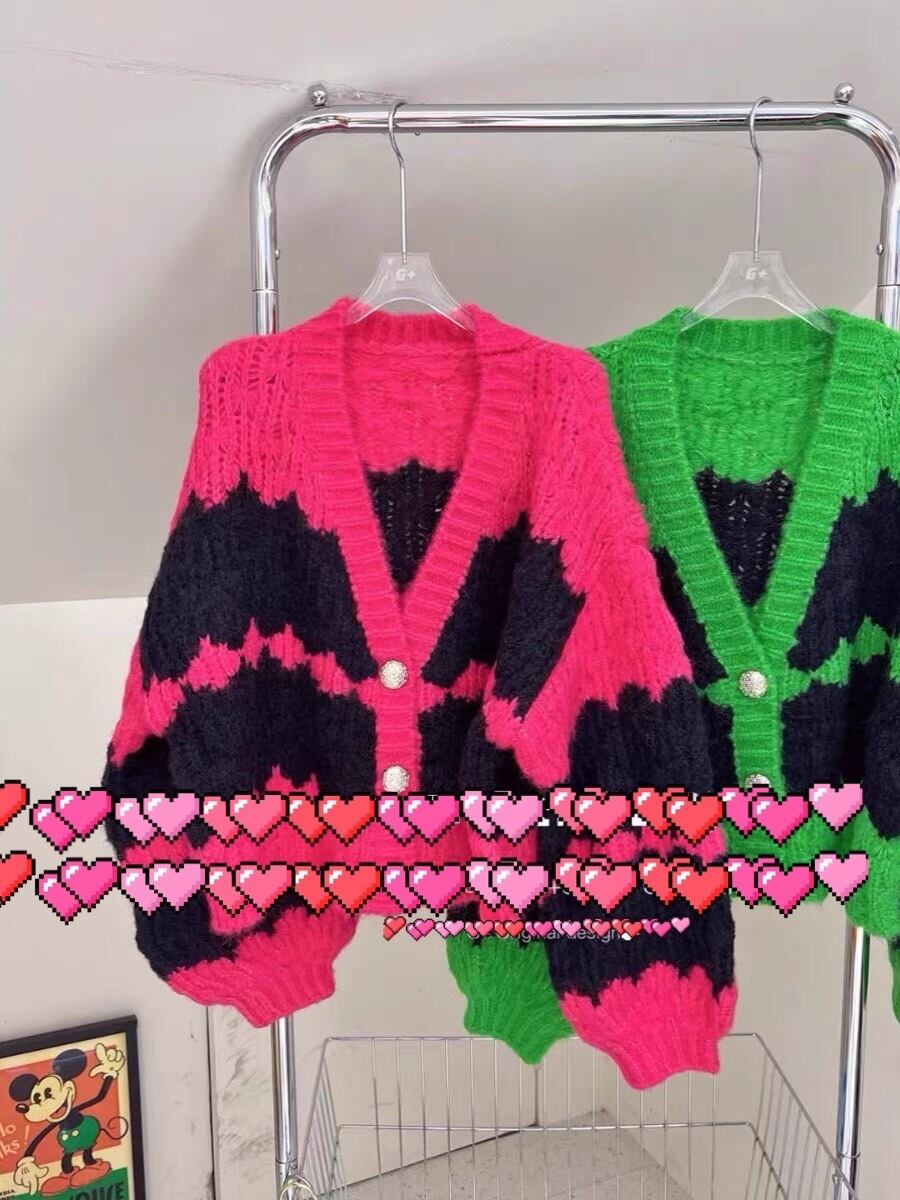 カーディガン ニット セーター 水色 緑 ピンク 蛍光
