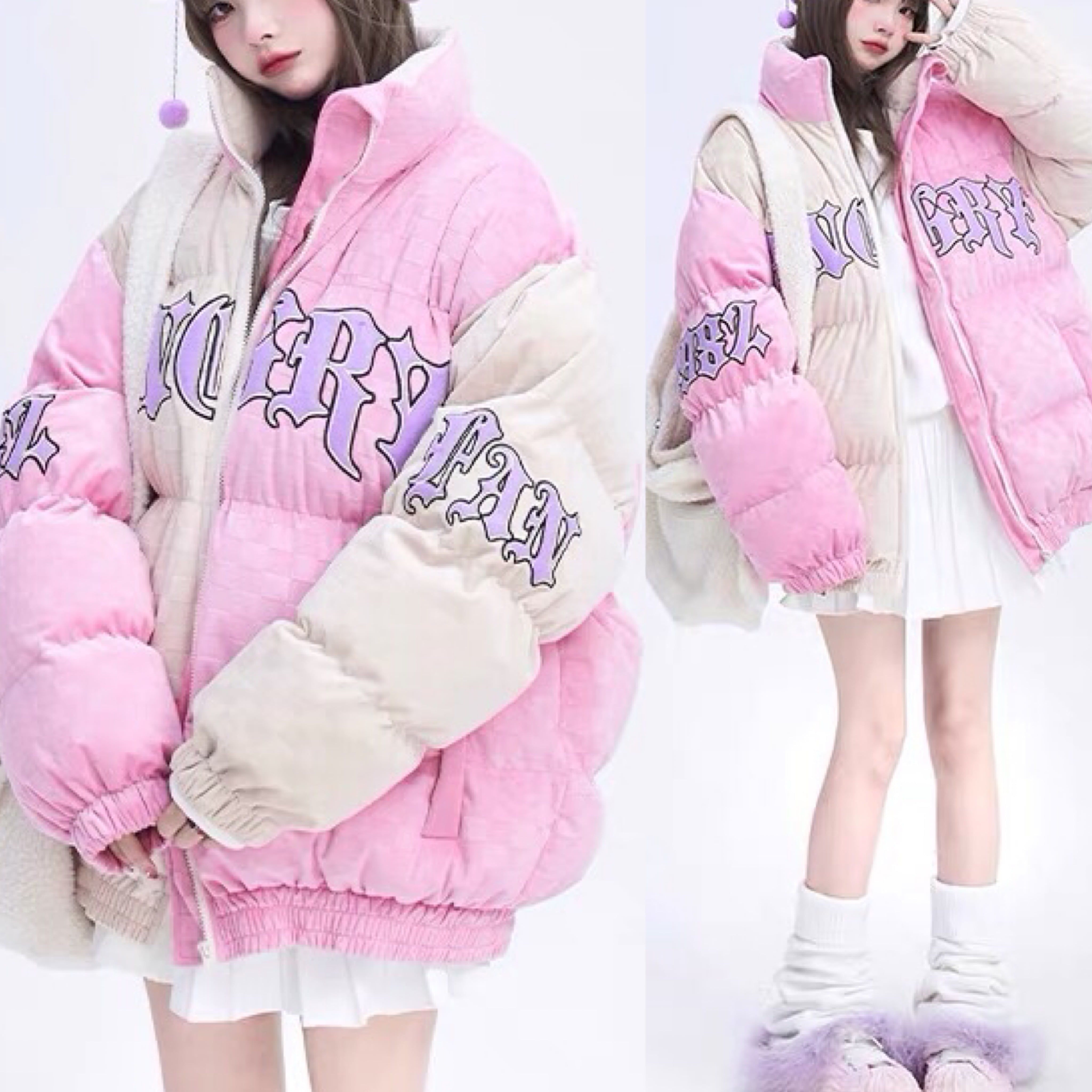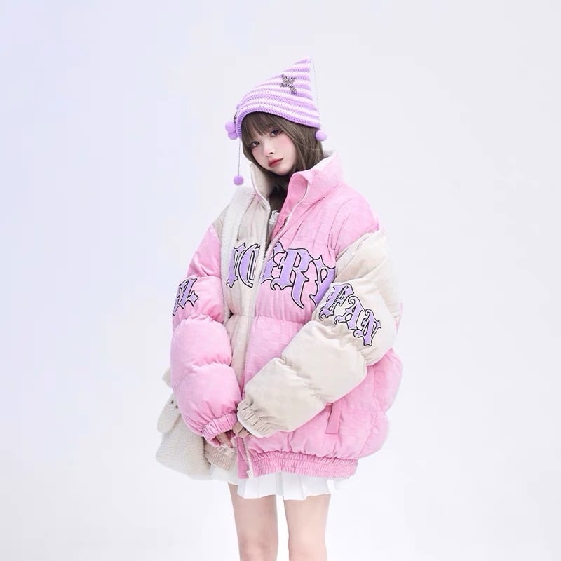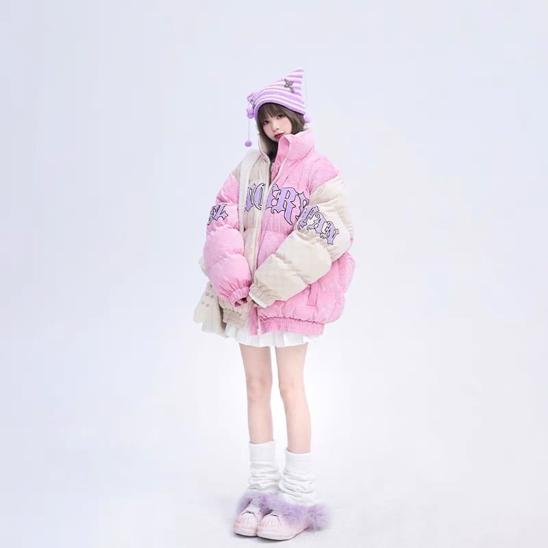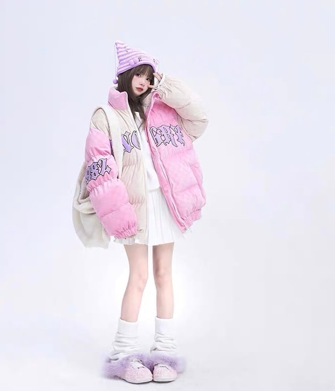 ダウンコート ピンク 可愛い カジュアル 紫 白 ギャル