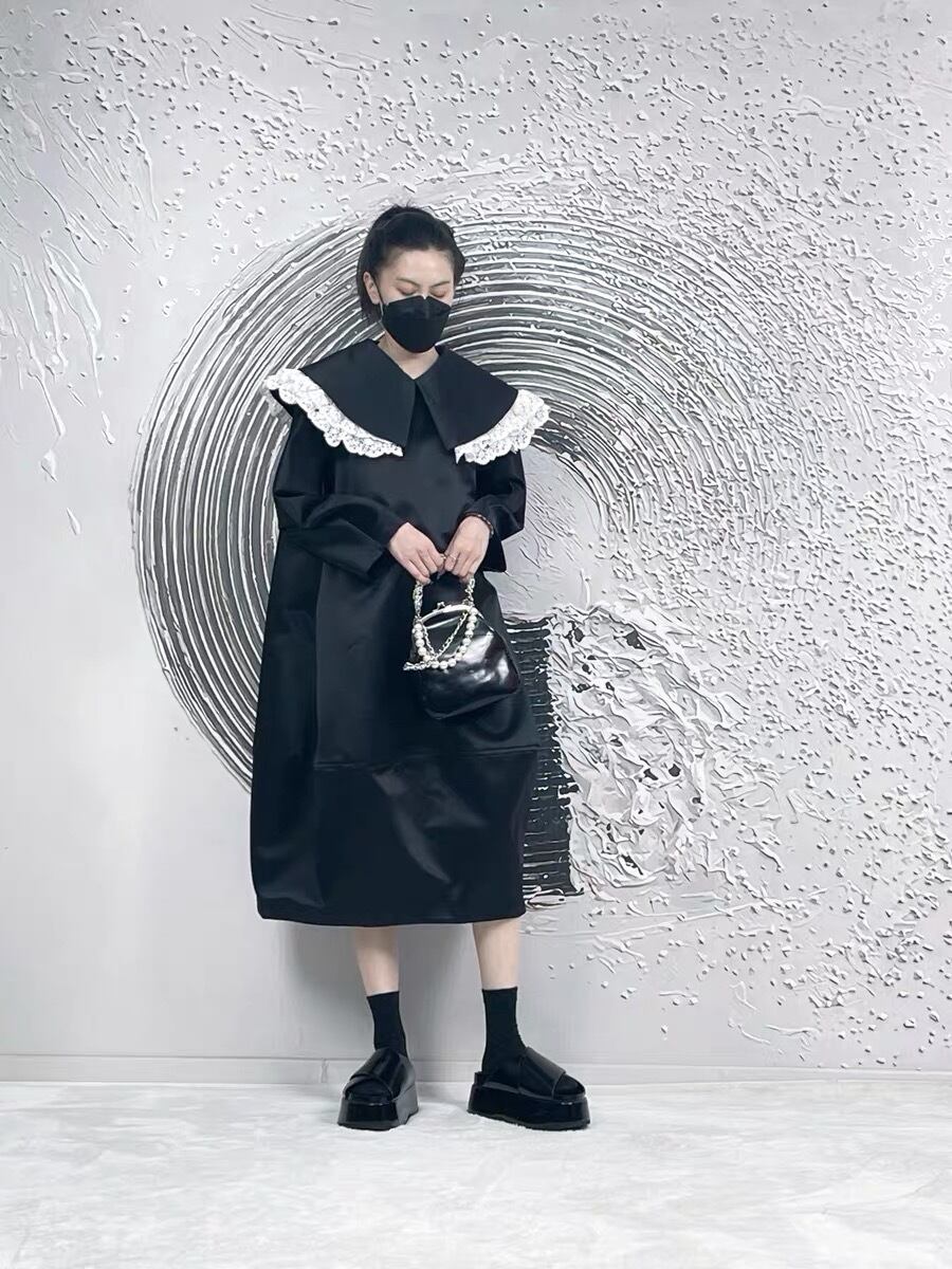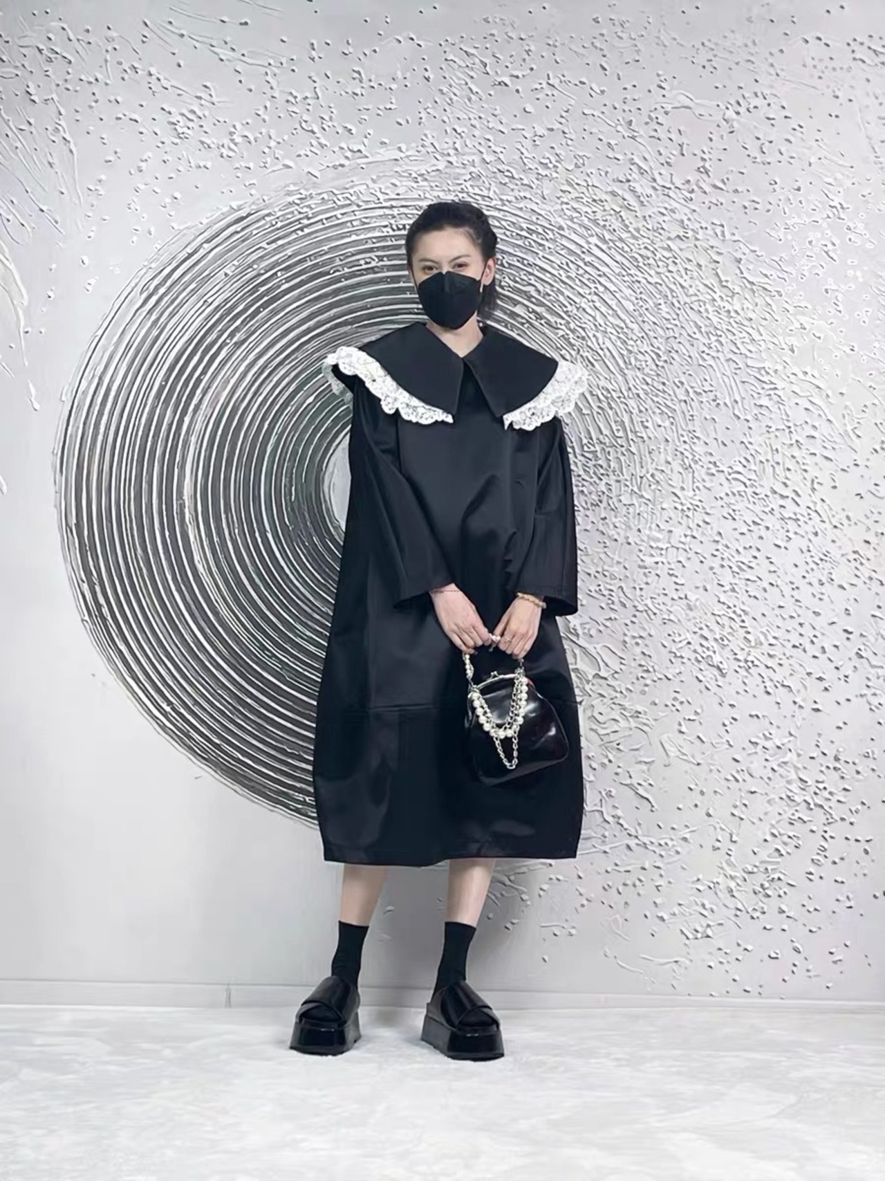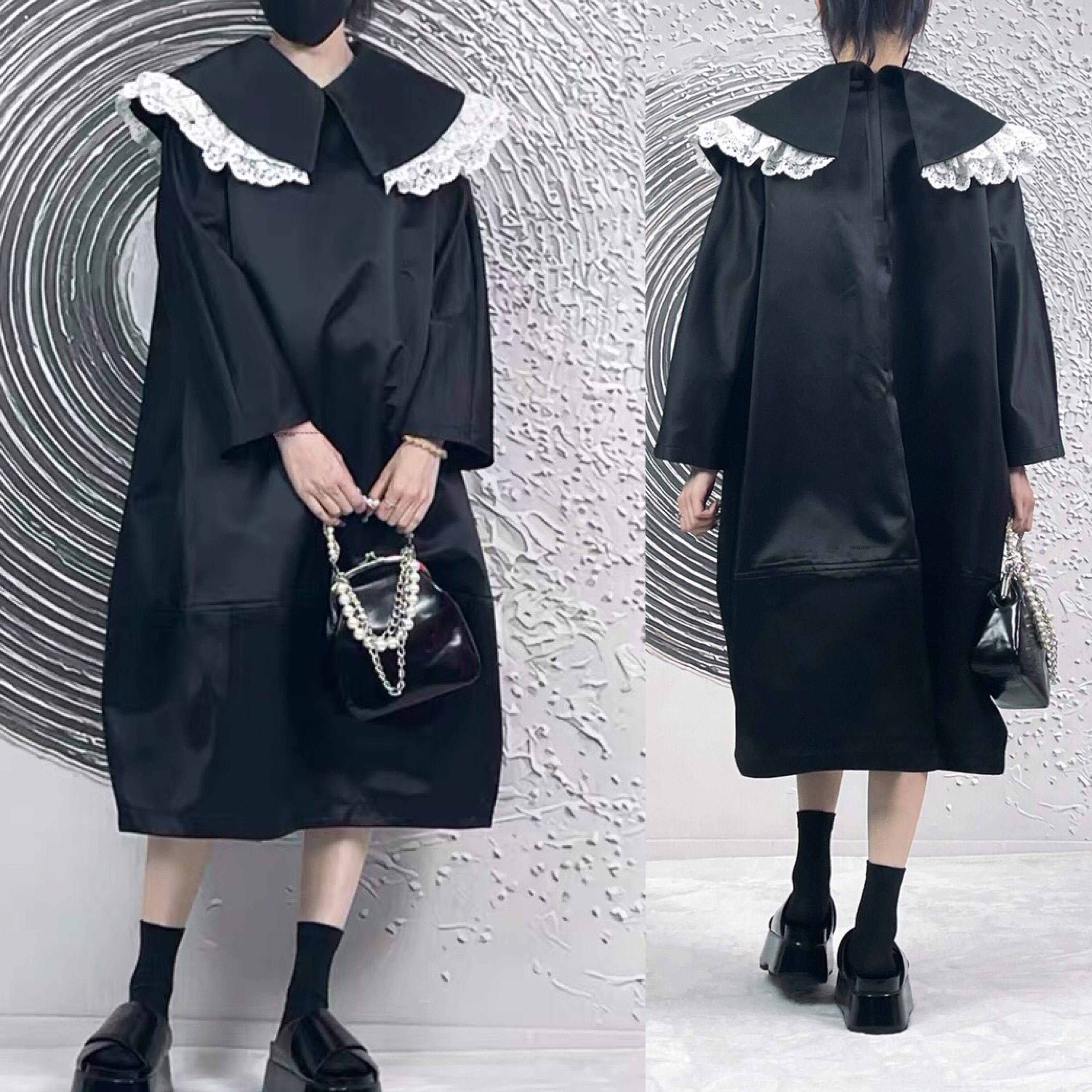 黒 エレガント ワンピース シンプル ブラック ブラウス