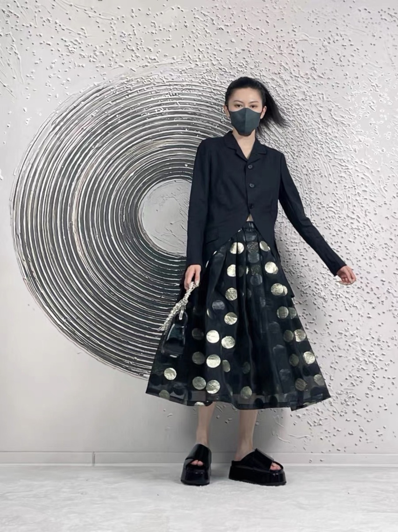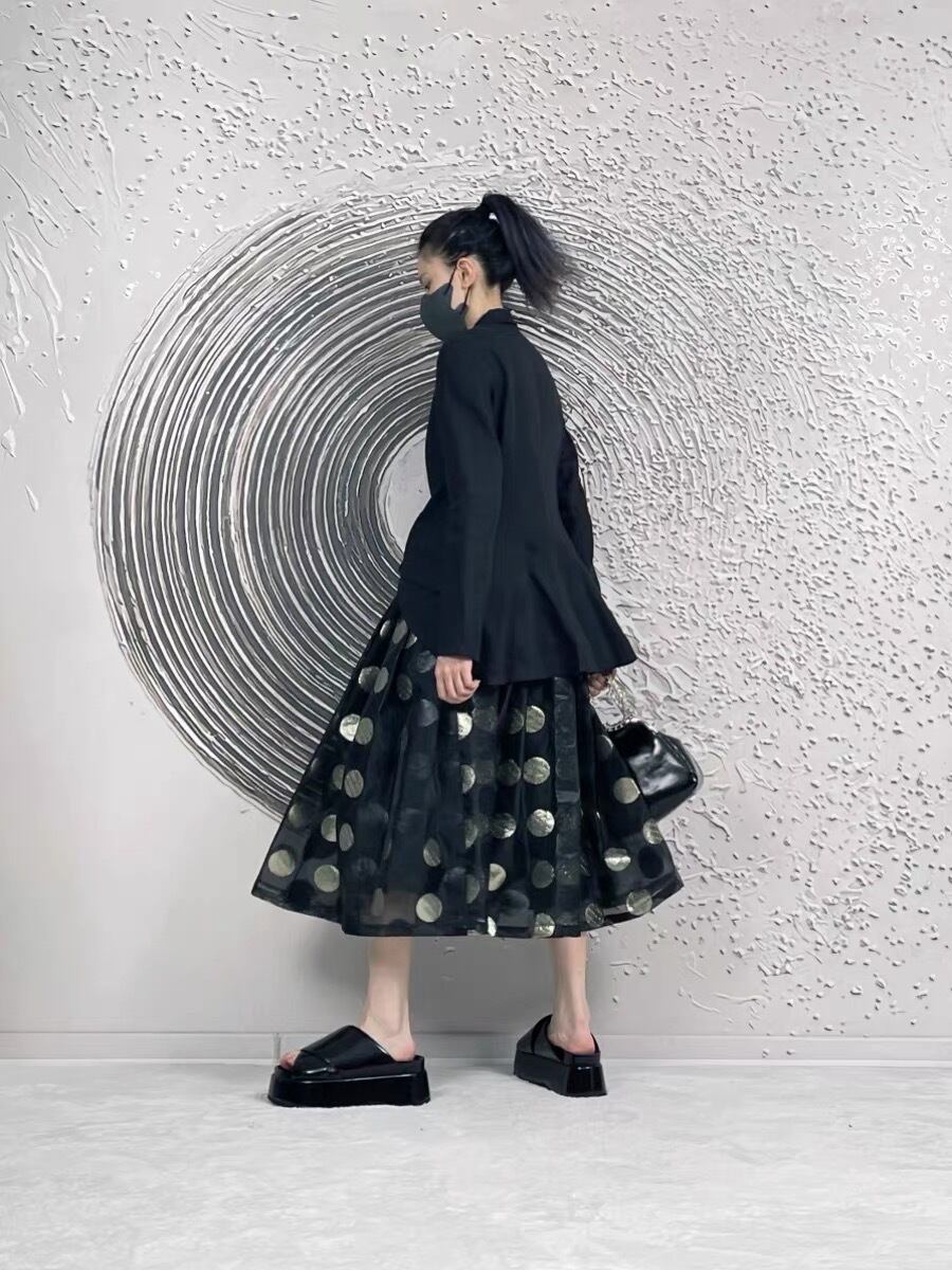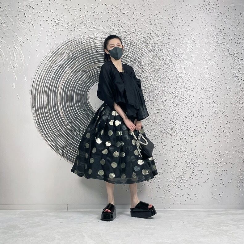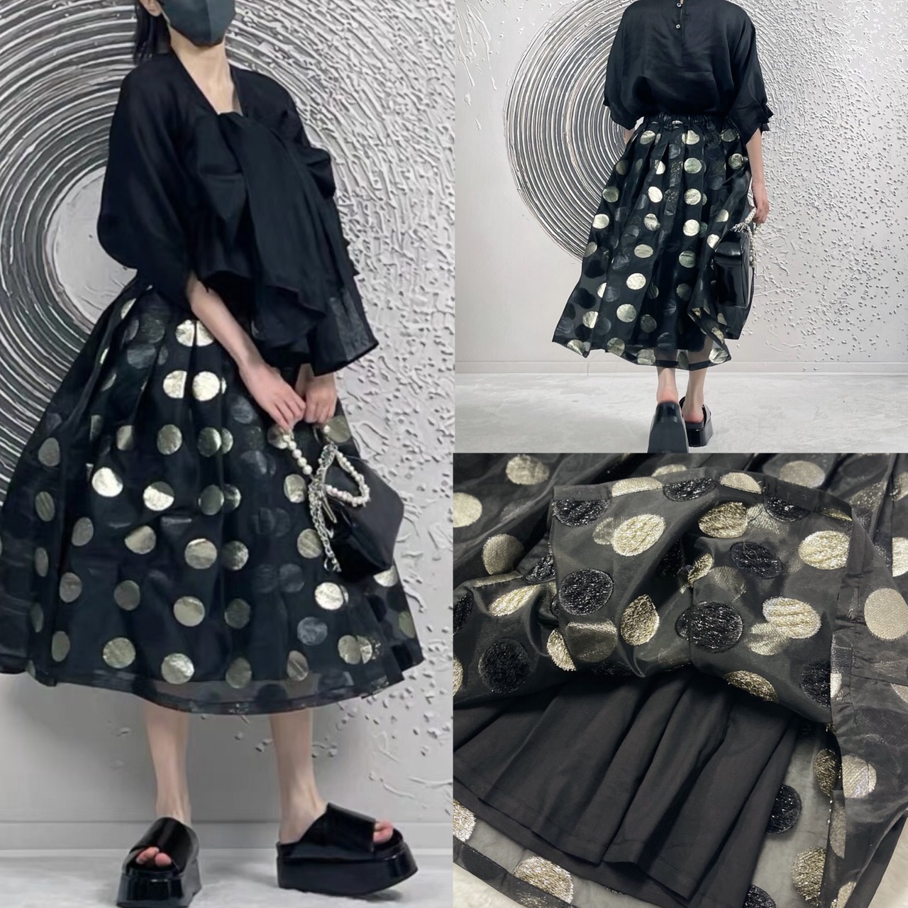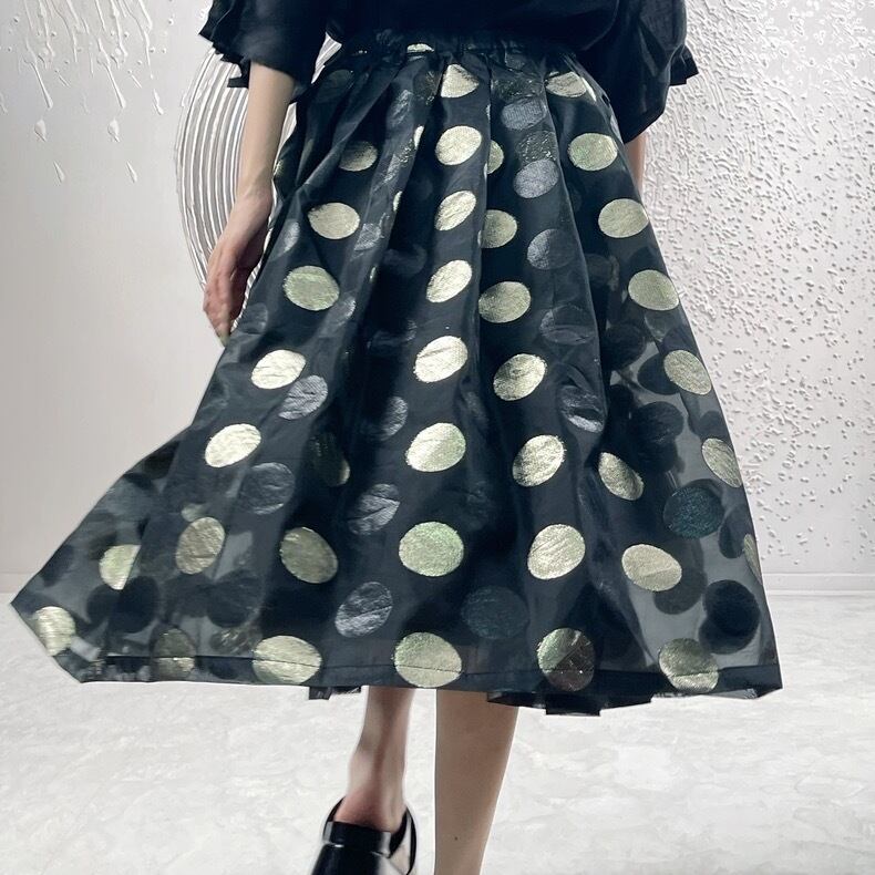 スカート 水玉 黒 ゴールド 金 ドット ボトムス