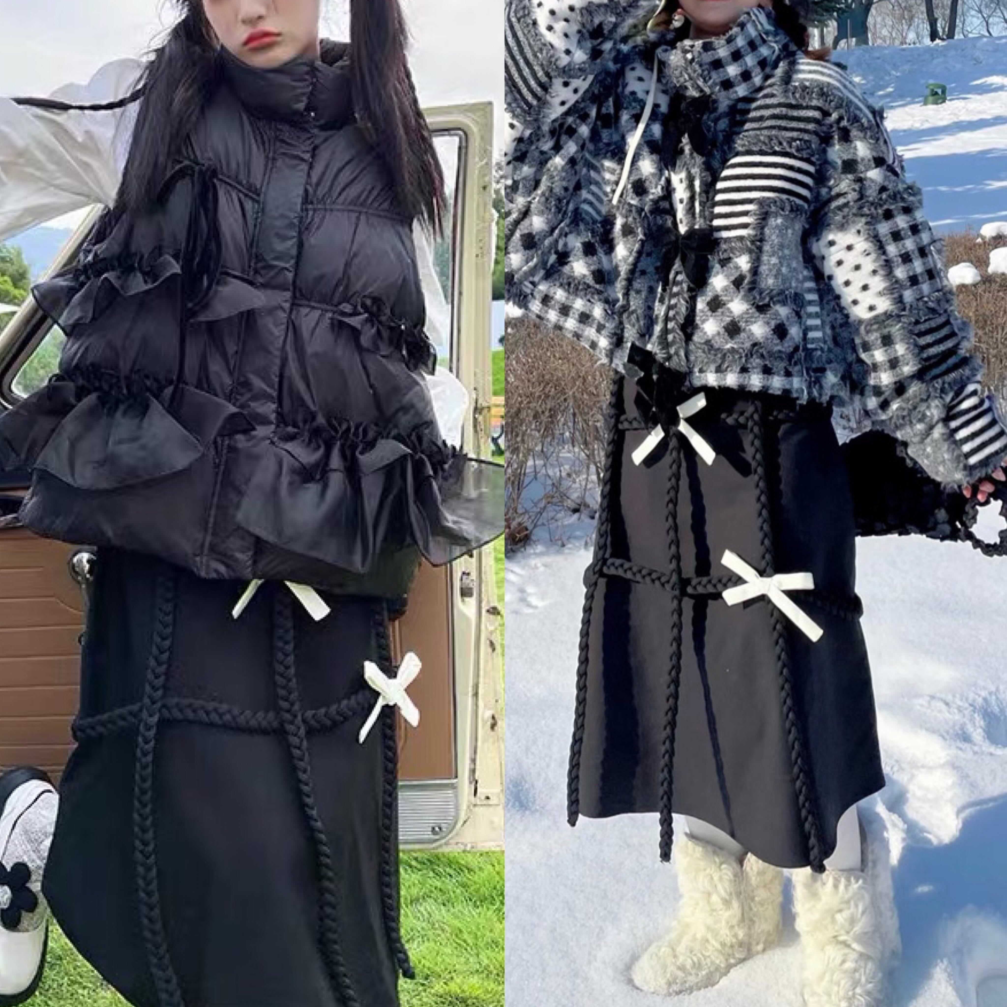 【スカート】ガーリー 黒 リボン ブラウス ボトムス