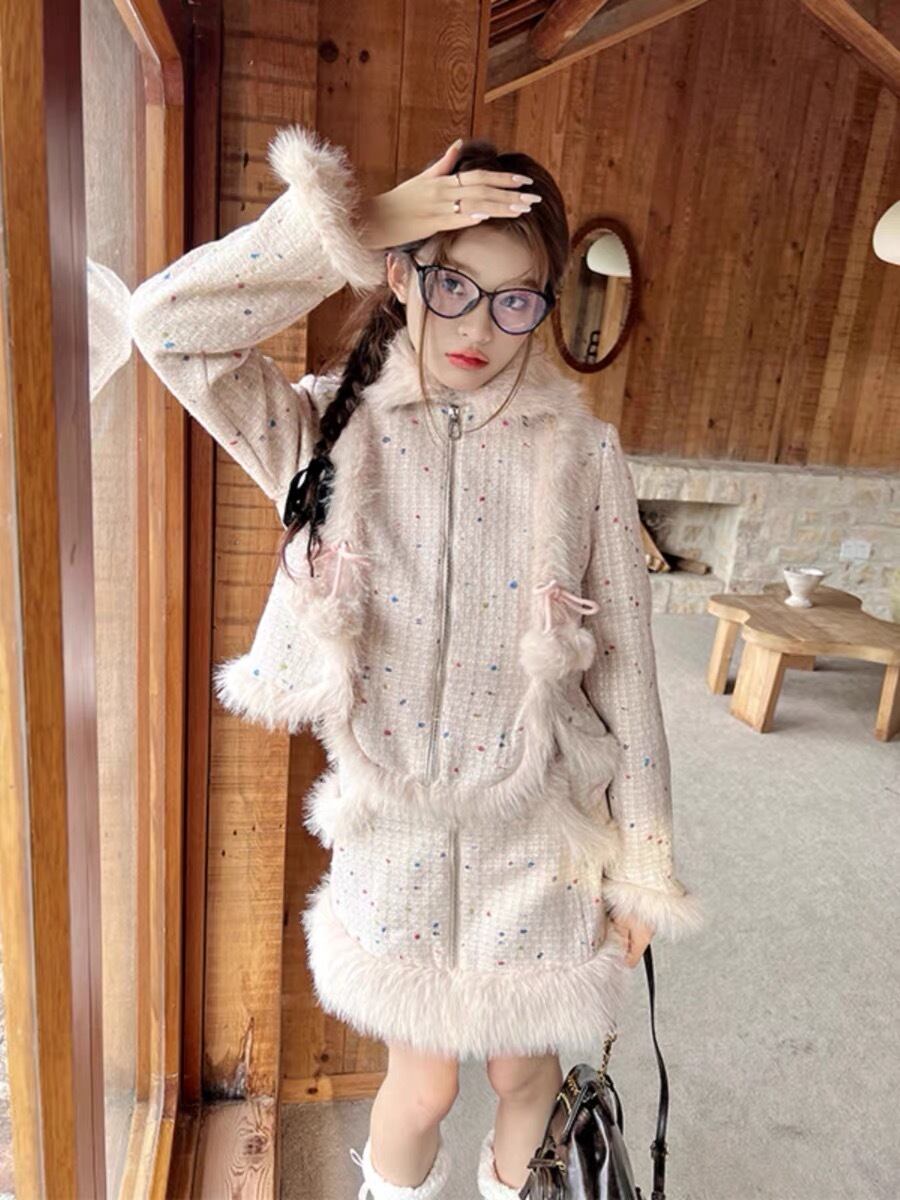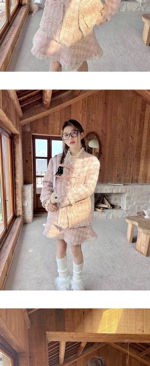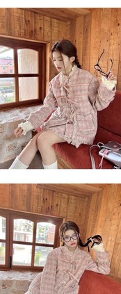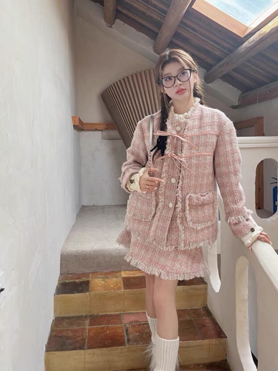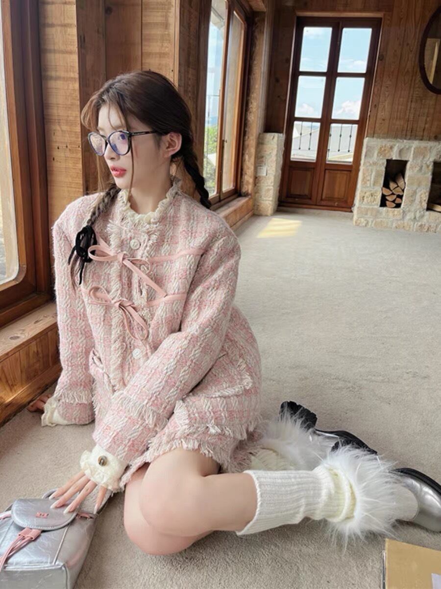 【ジャケット】ピンク チェック アウター リボン 可愛い