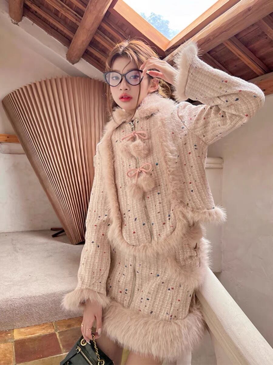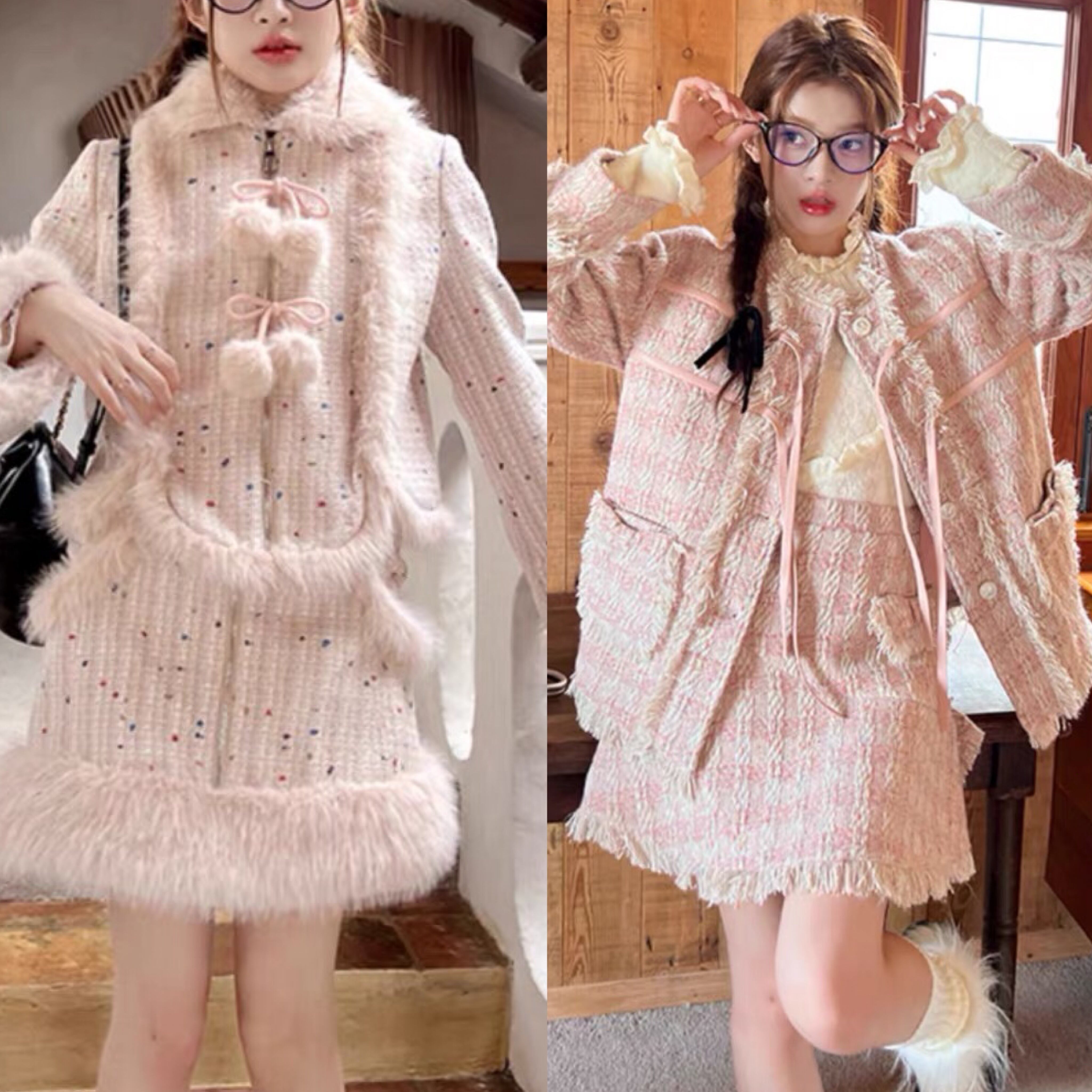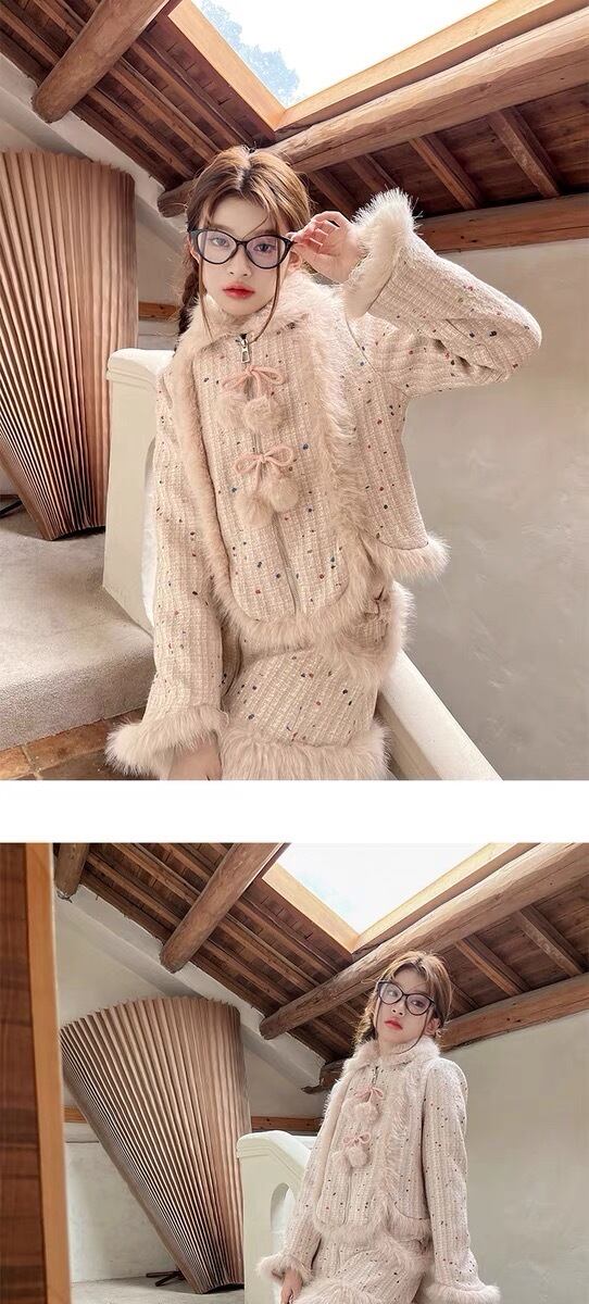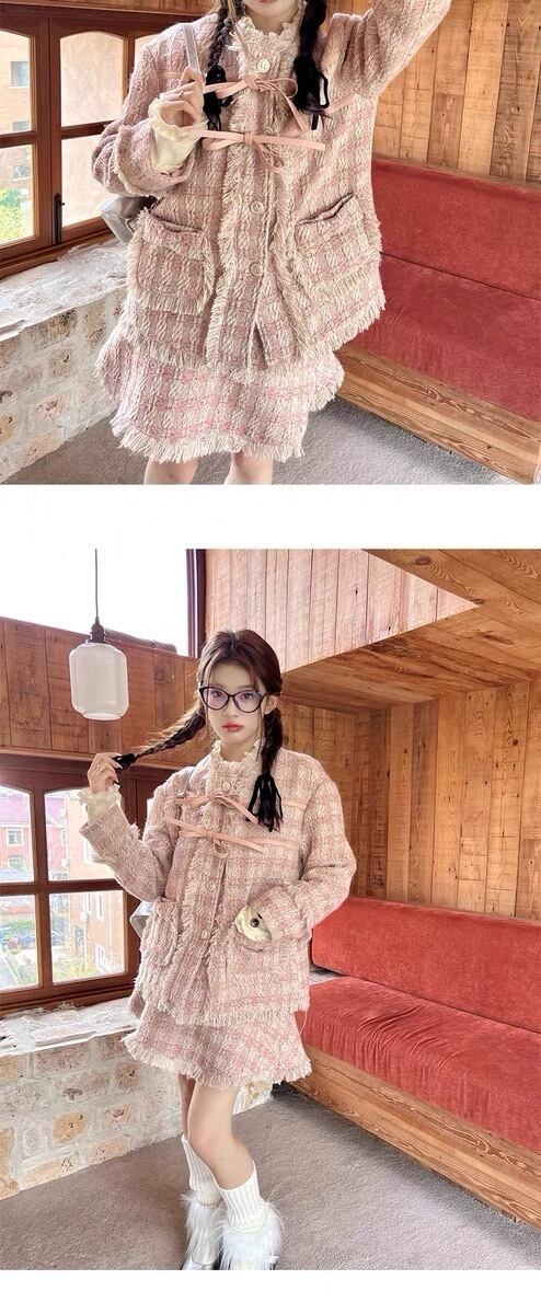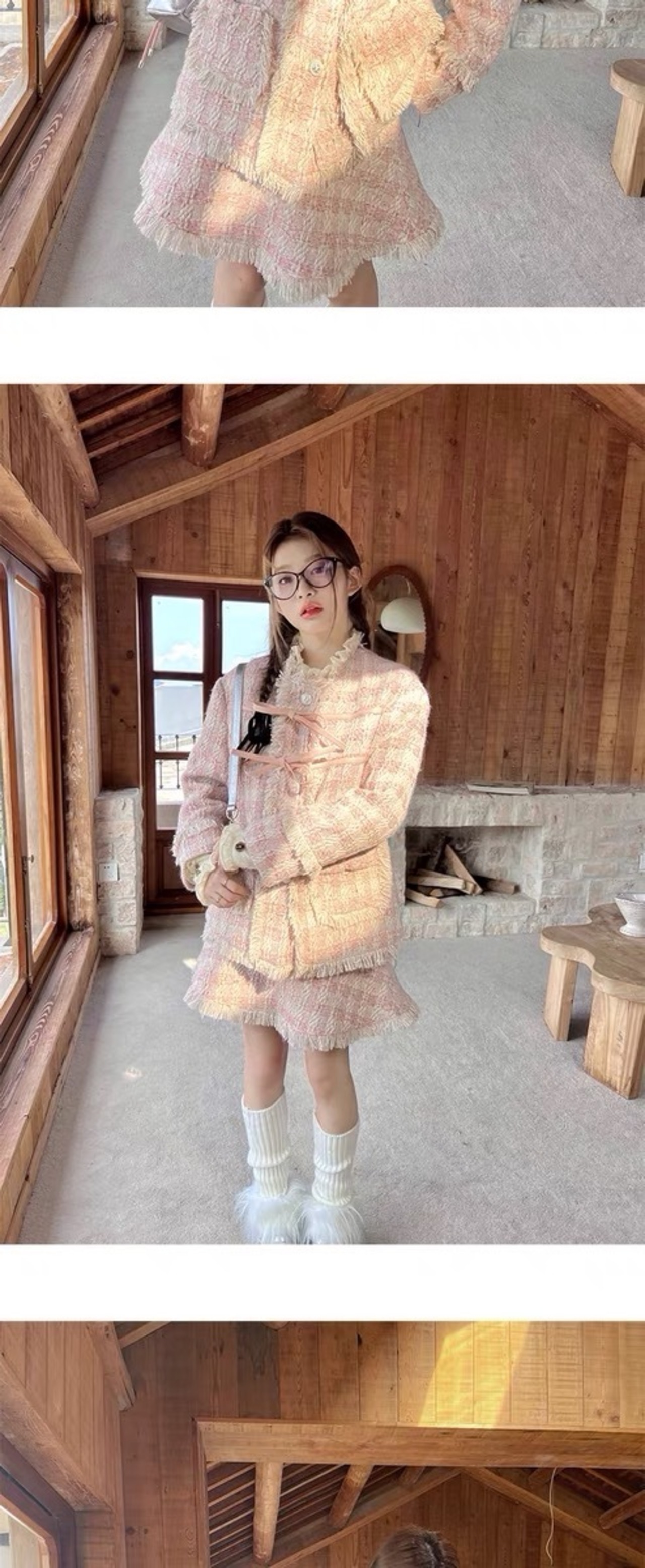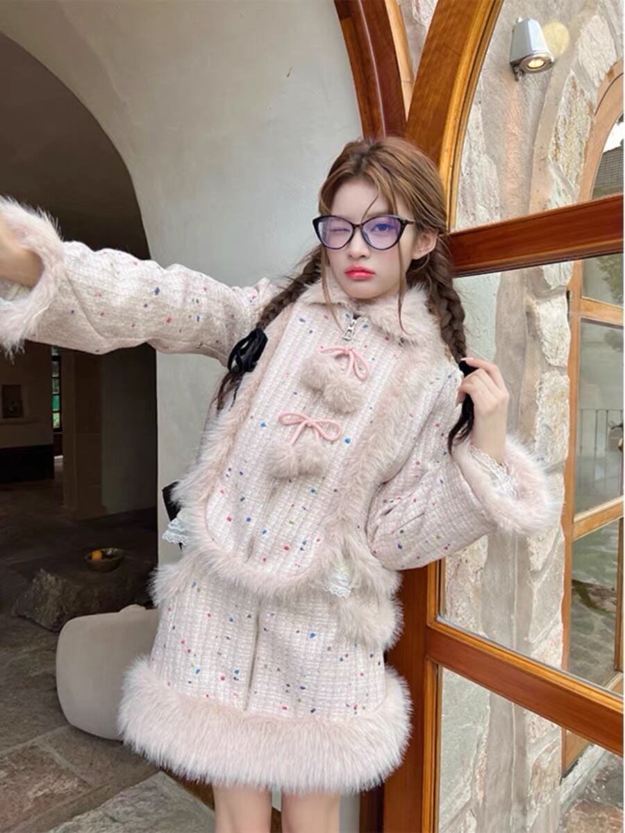 【スカート】ピンク ファー リボン ガーリー セットアップ
