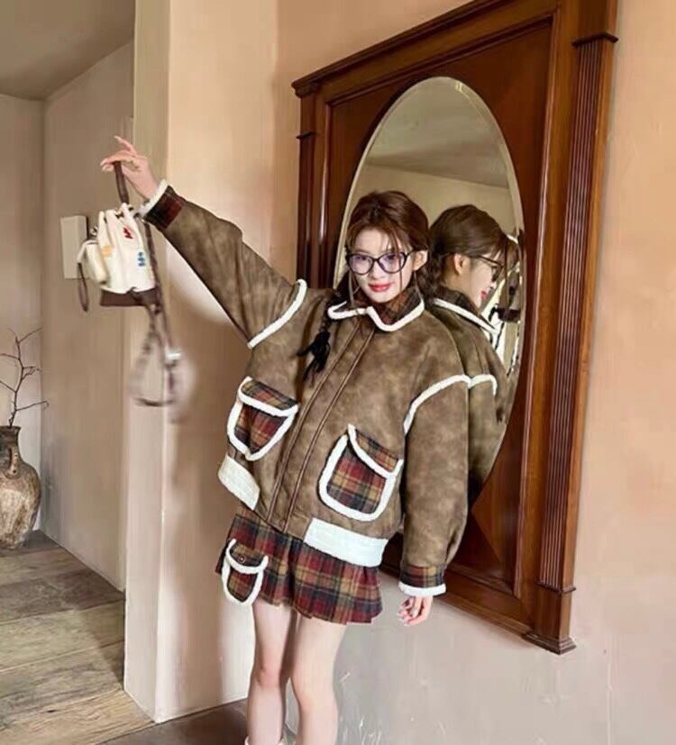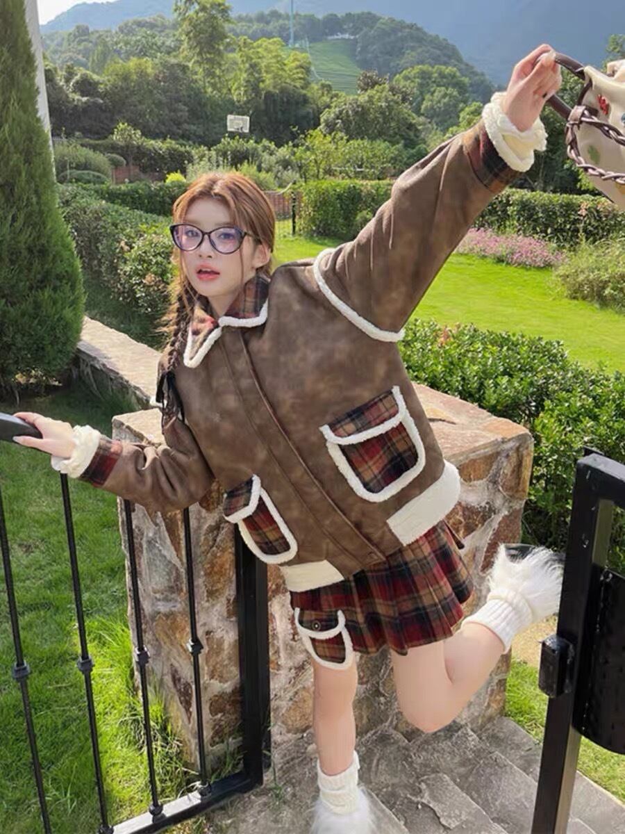 【アウター】ジャケット 茶色 ブルゾン コート チェック