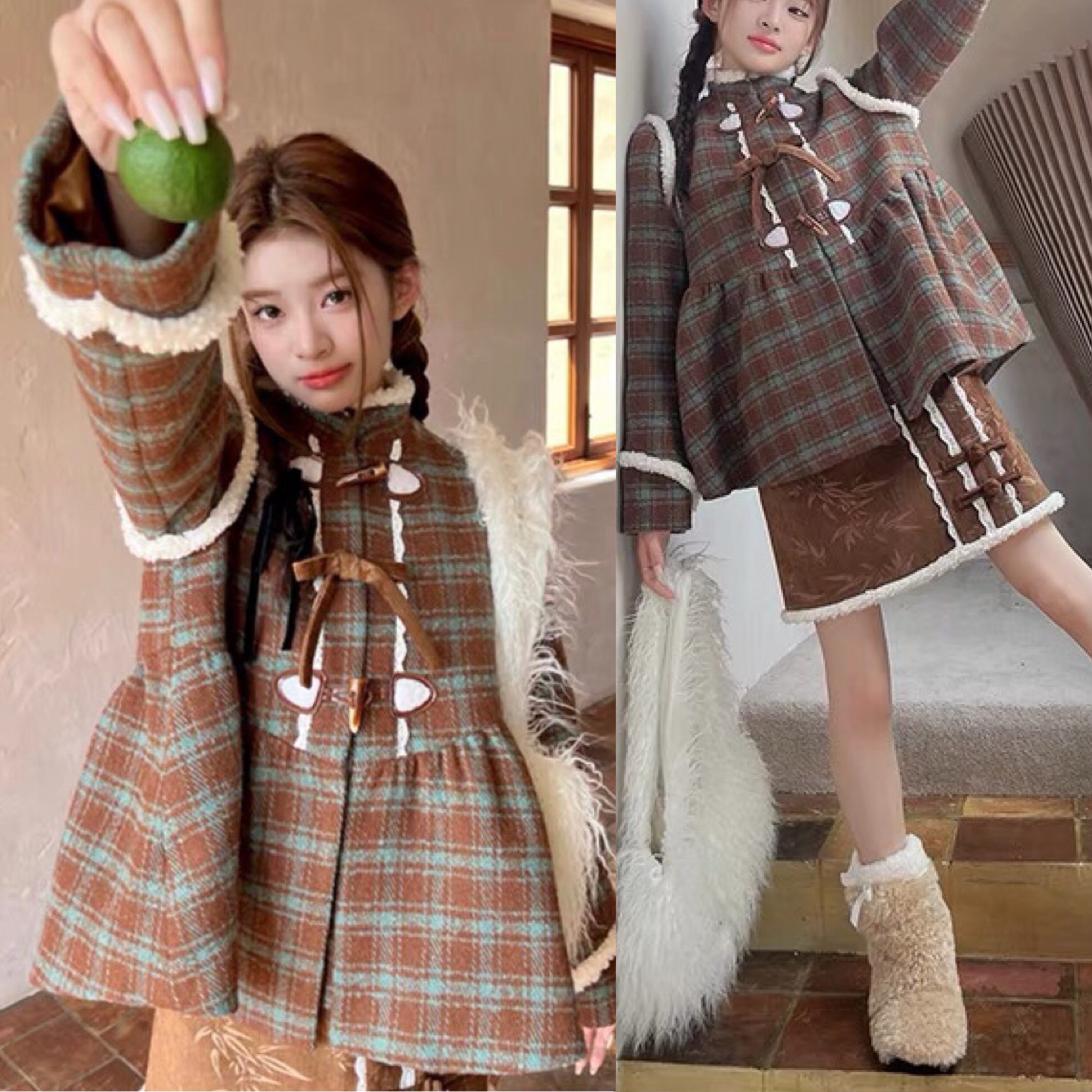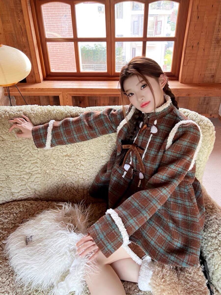 【アウター】茶色 ベージュ チェック コート ジャケット