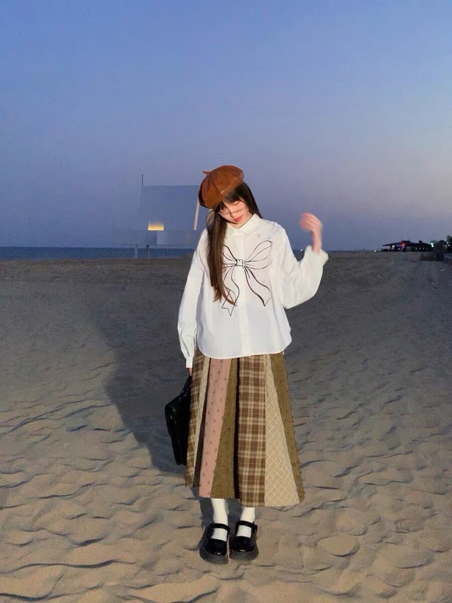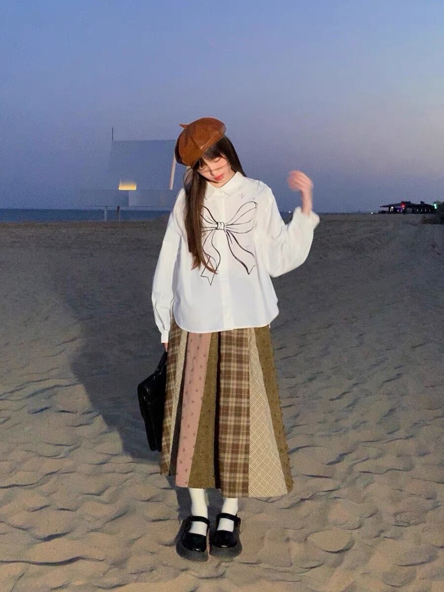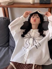 ブラウス シンプル ガーリー 白 丸襟 リボン