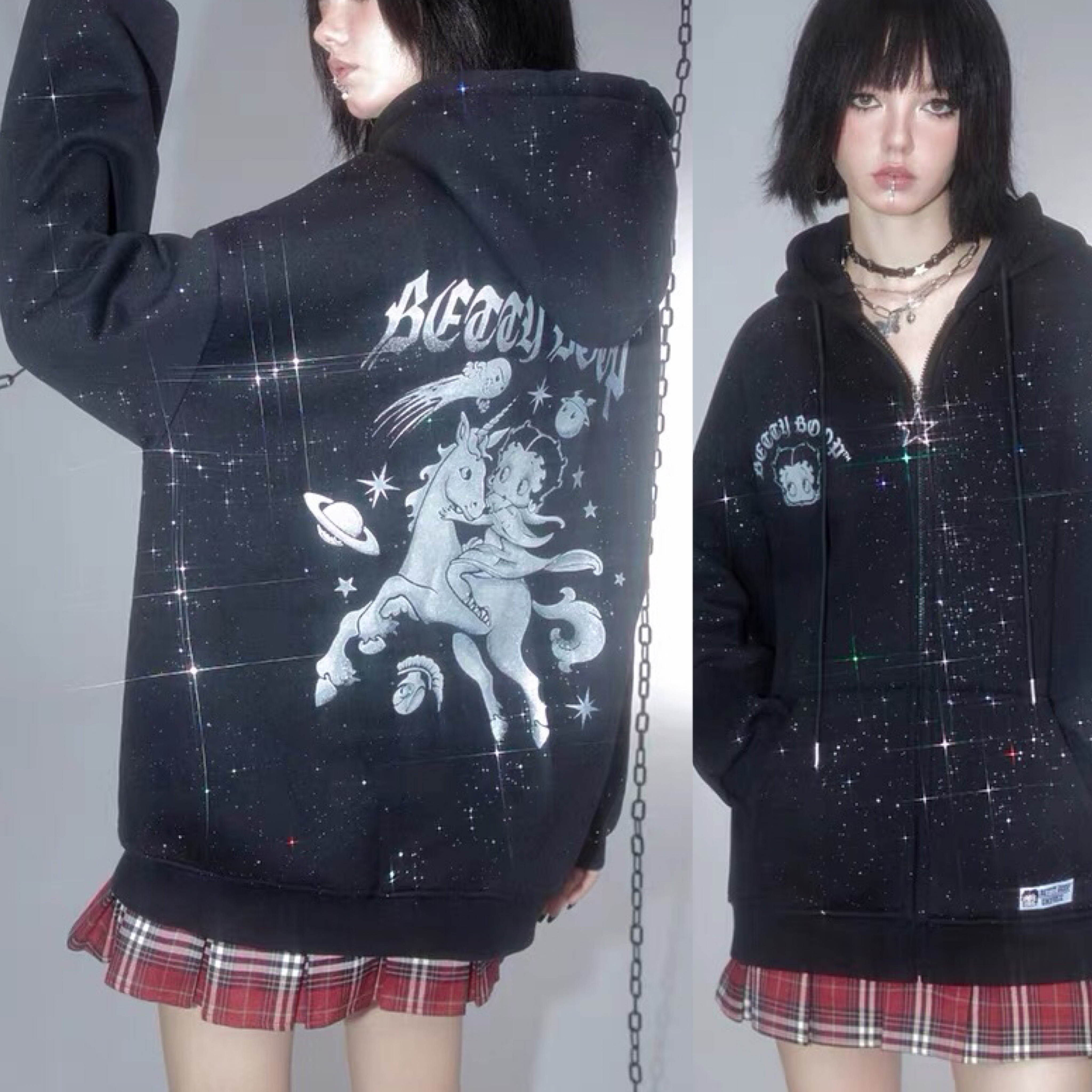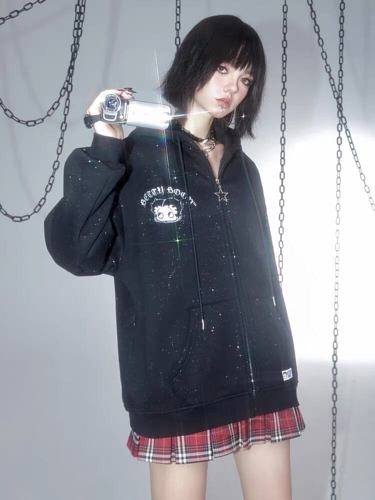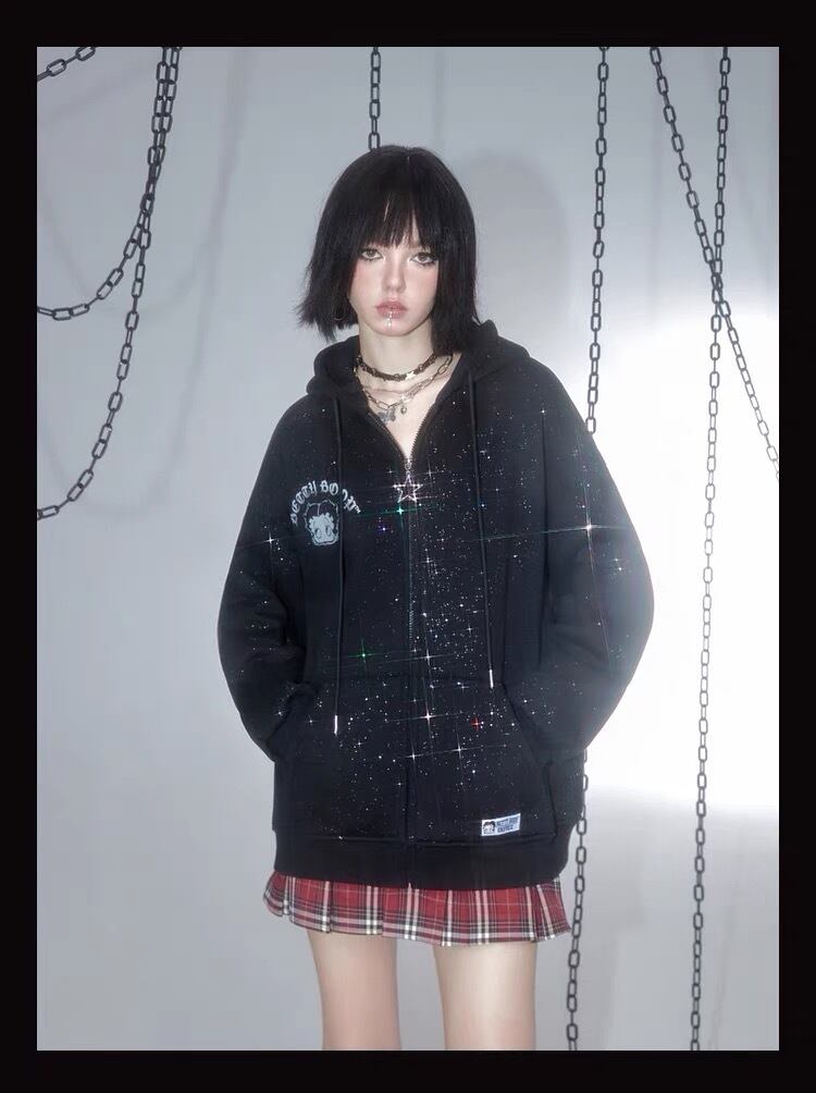 パーカー トレーナー スウェット 黒 キラキラ ラメ