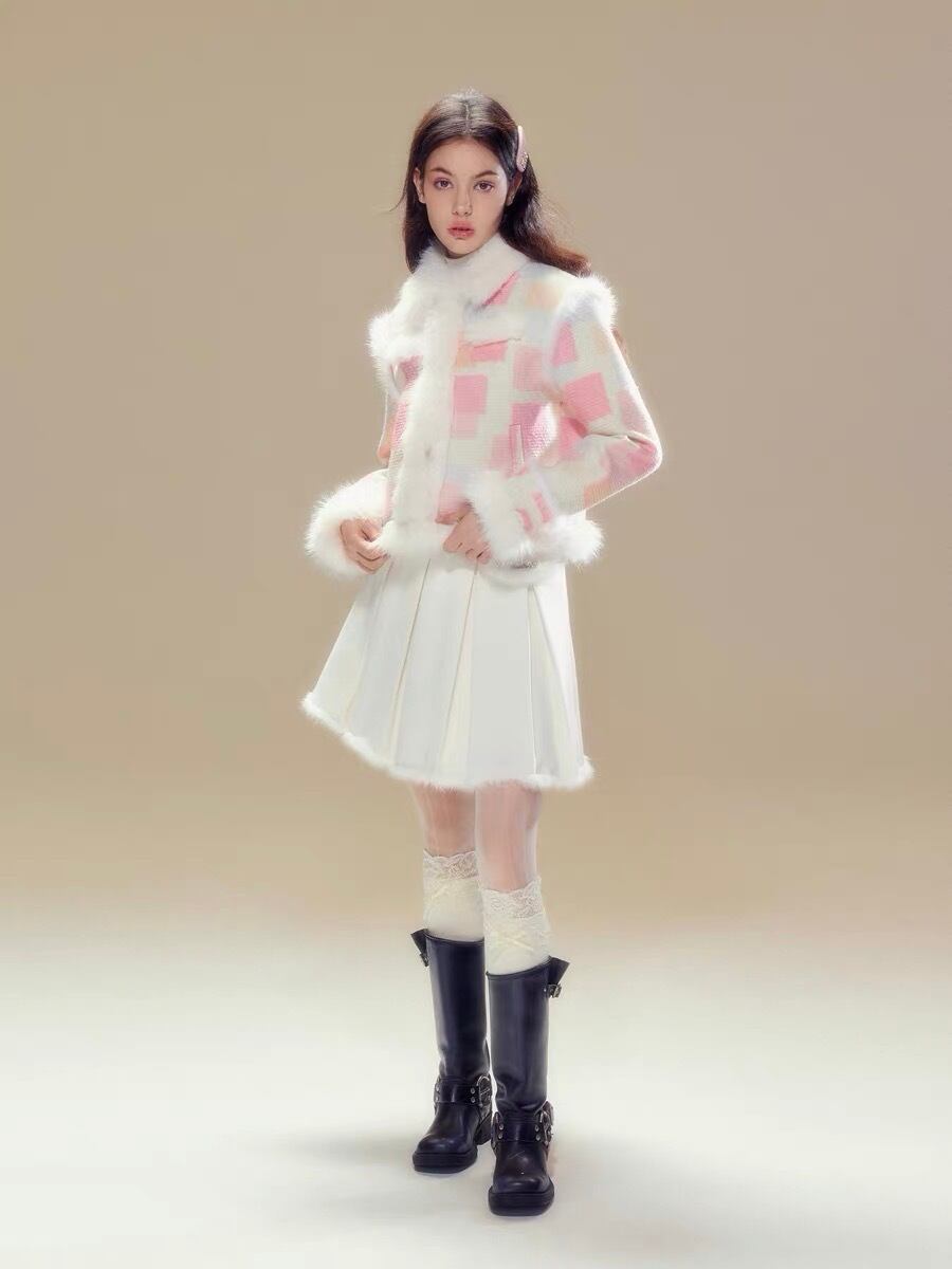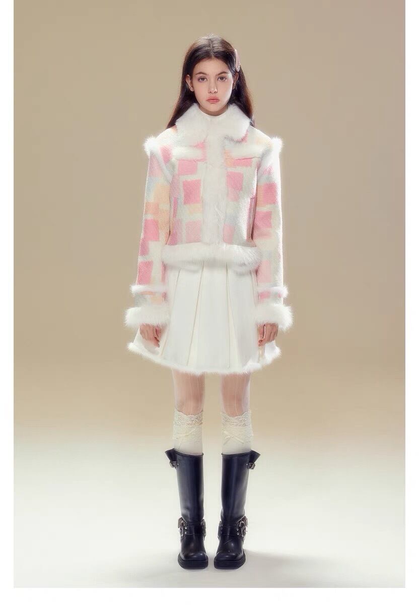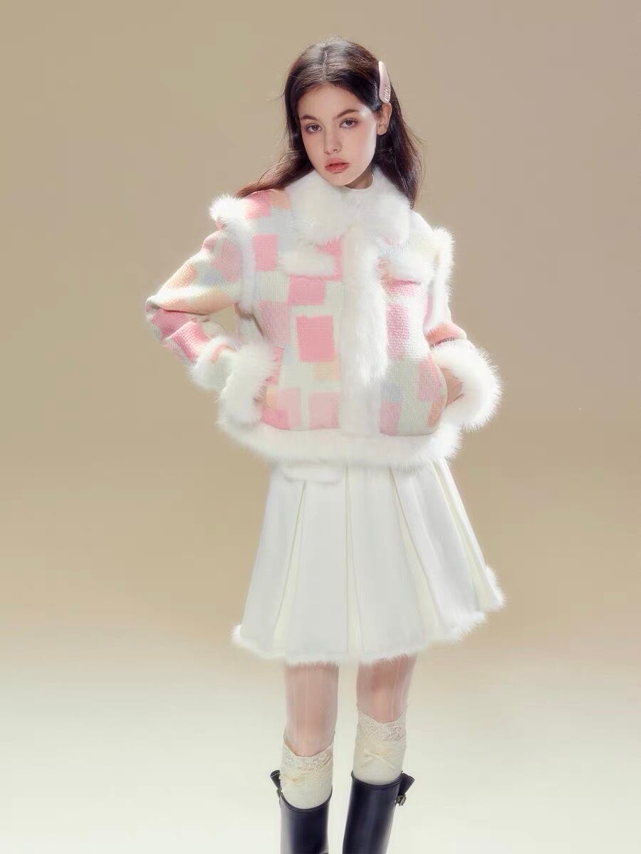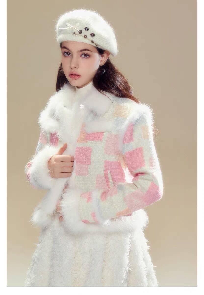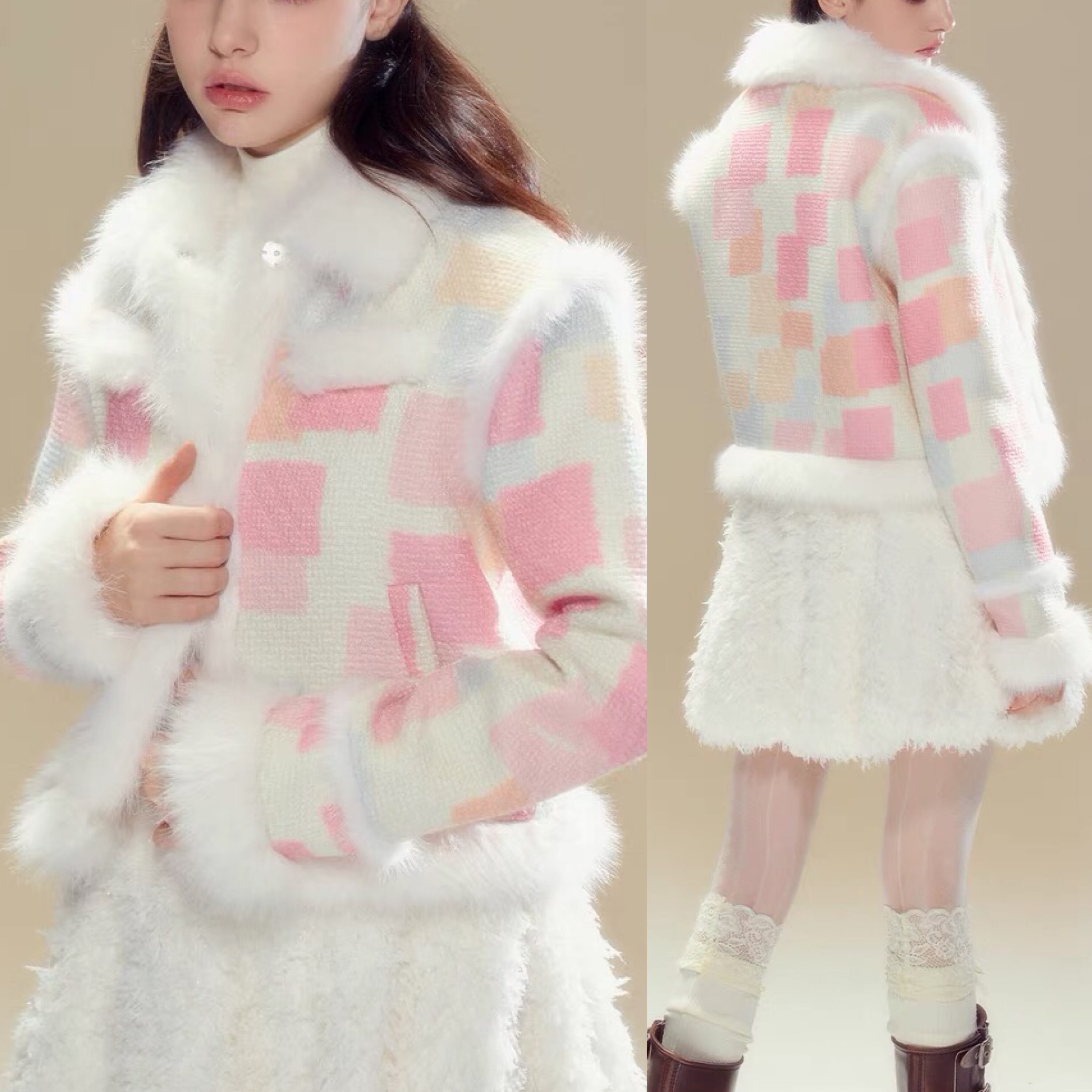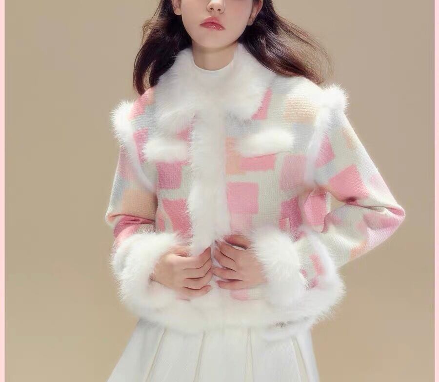 ピンク お嬢様 ジャケット ファー 丸襟 コート