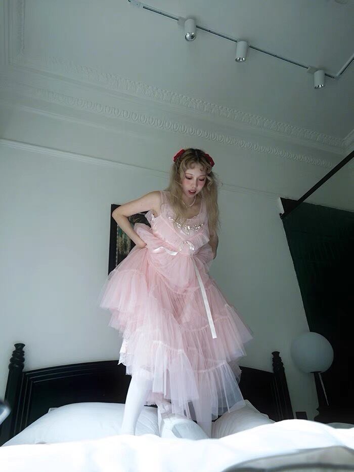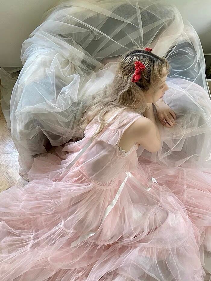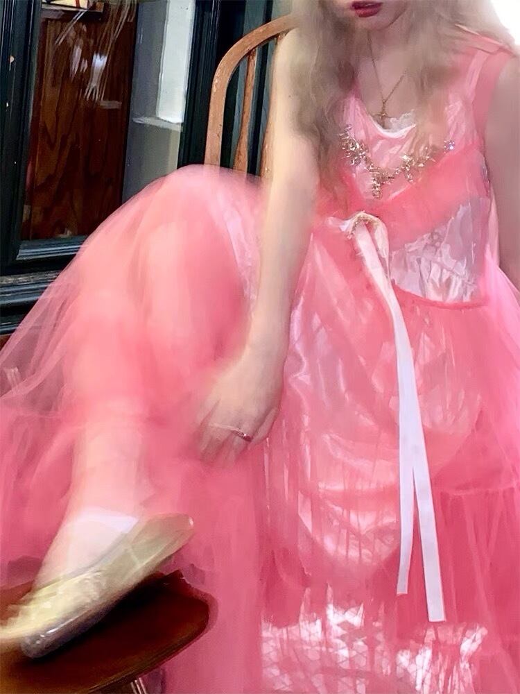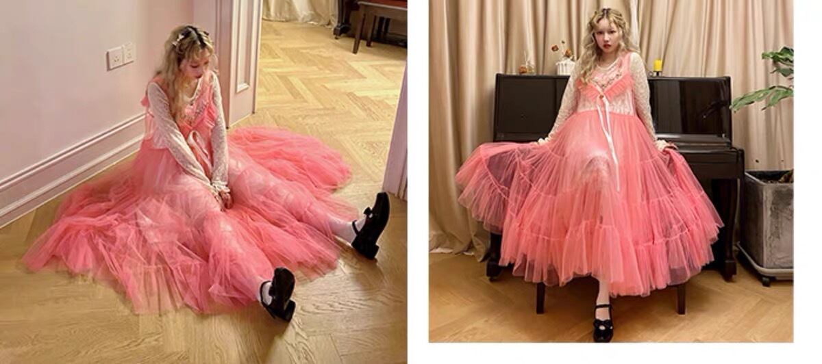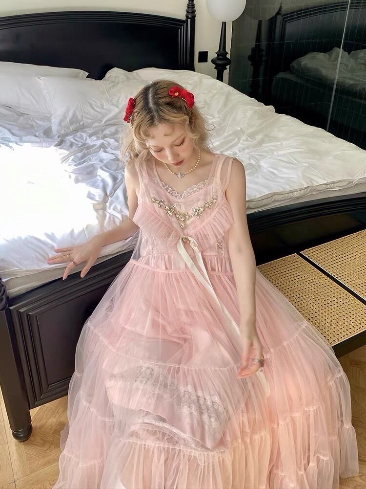 【薄いピンク】ワンピース ドレス ゴージャス マキシ ゆったり