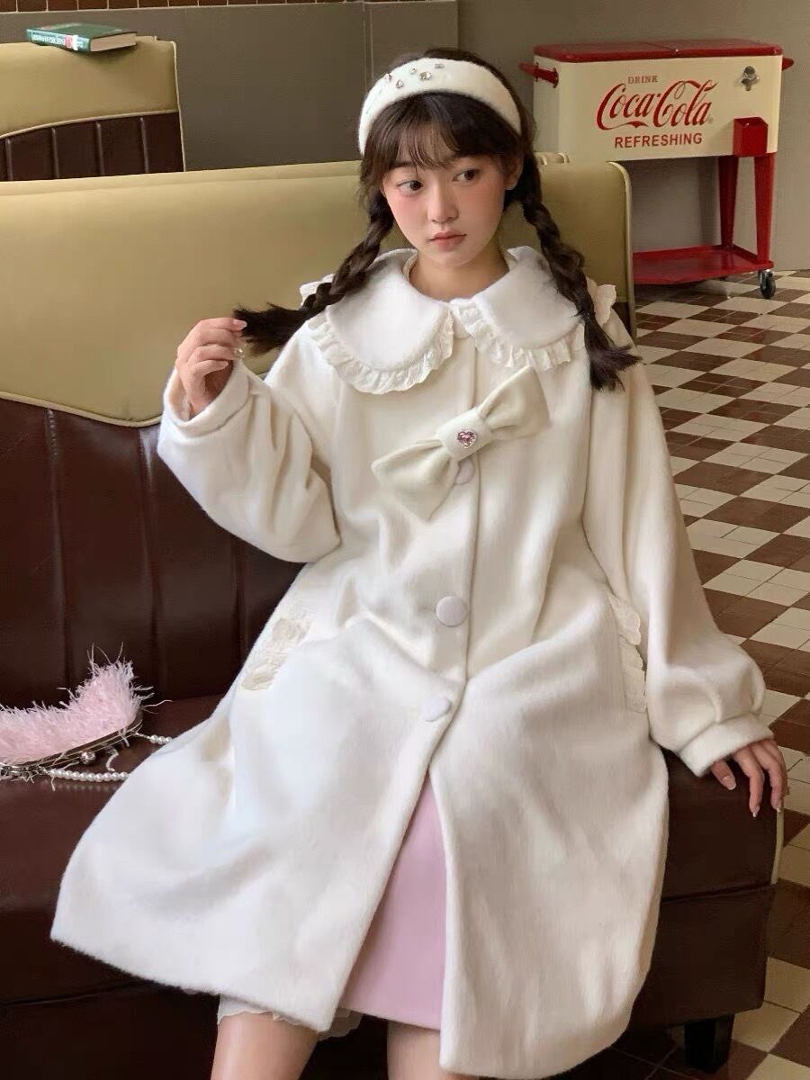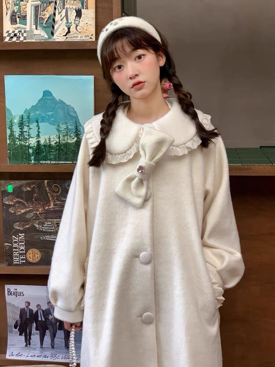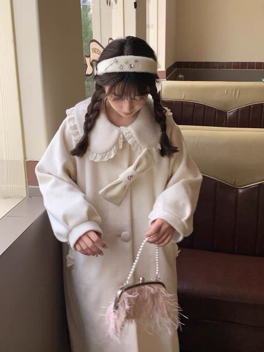 白 丸襟 コート アウター リボン ガーリー 可愛い