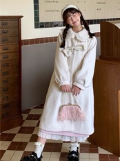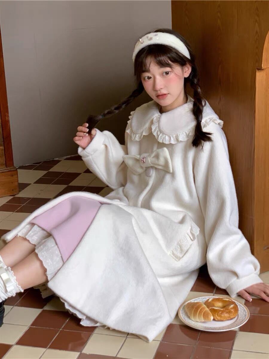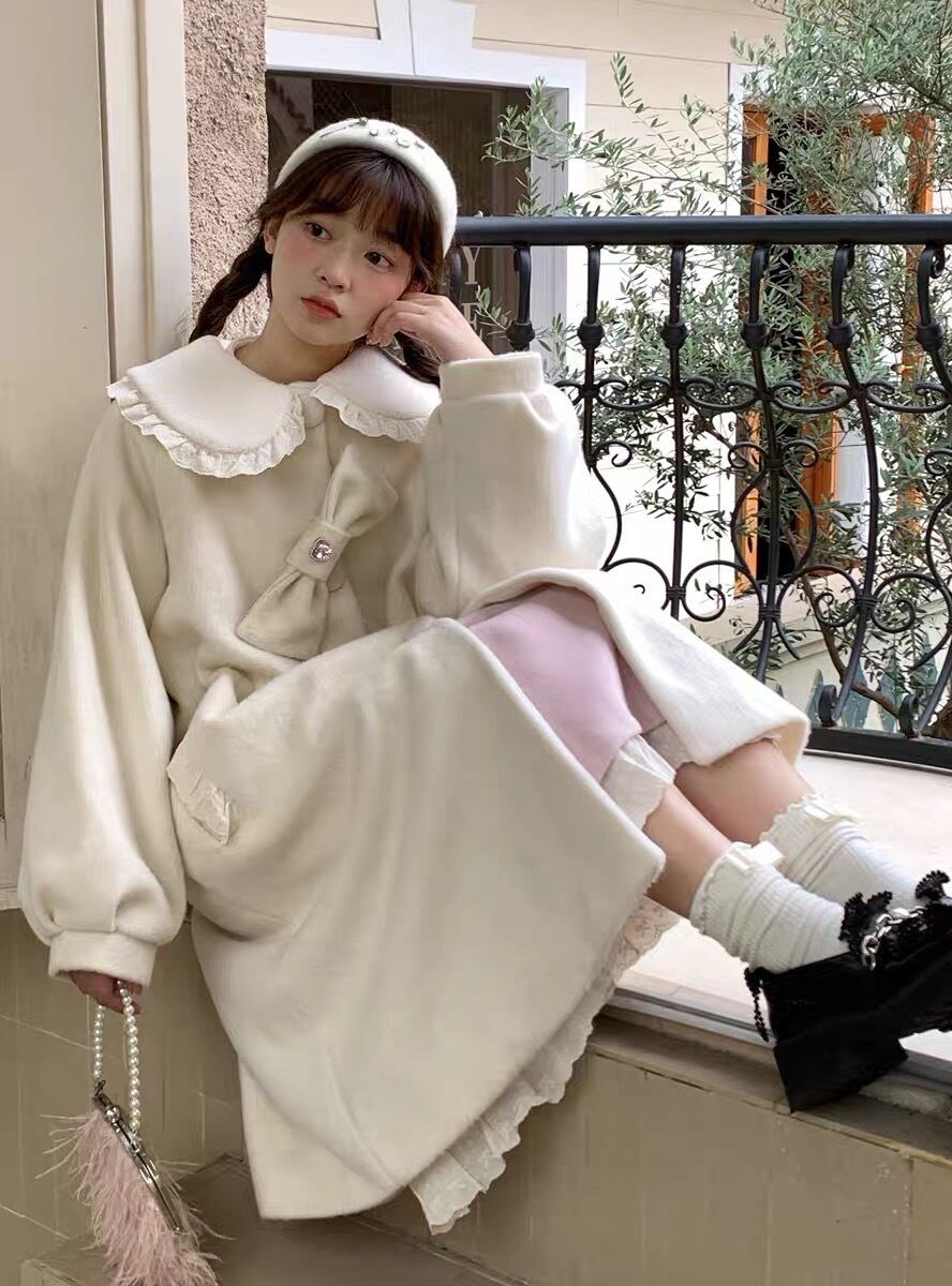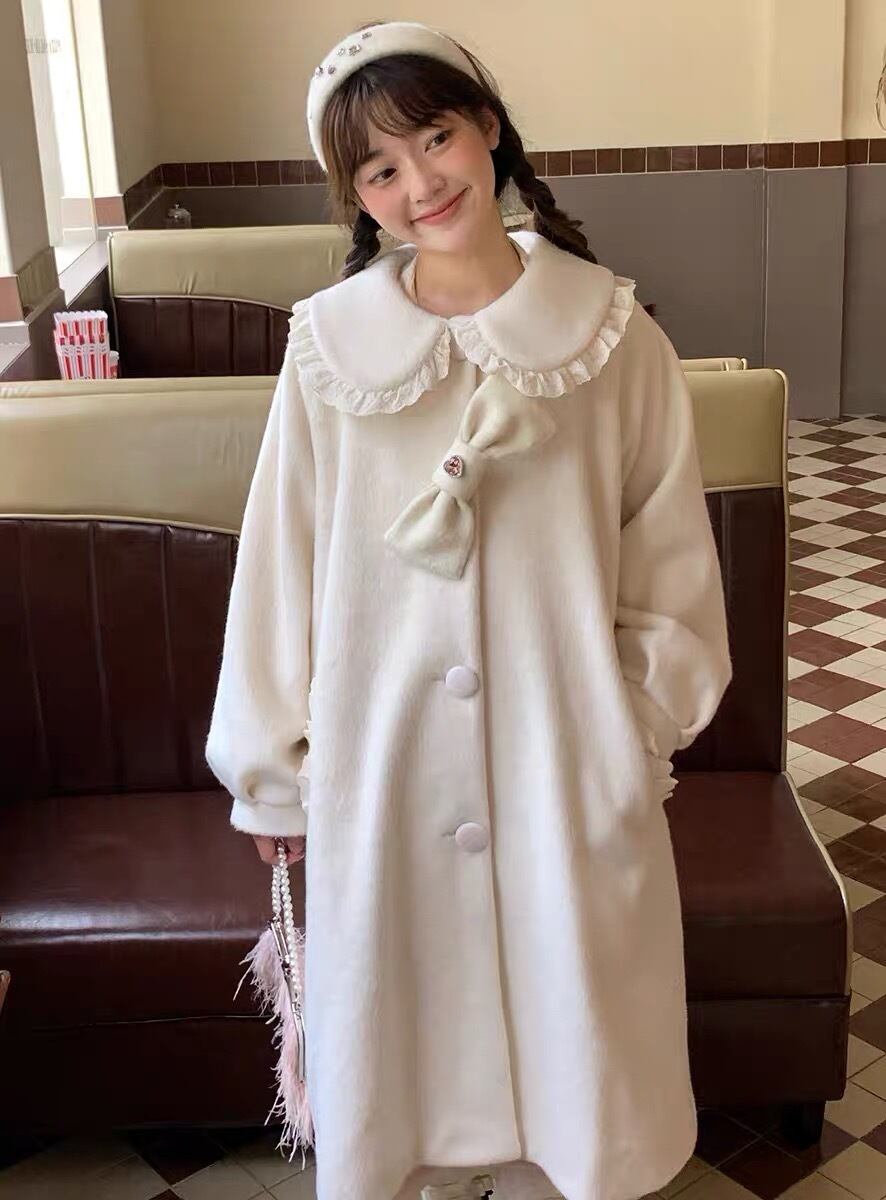 白 丸襟 コート アウター リボン ガーリー 可愛い