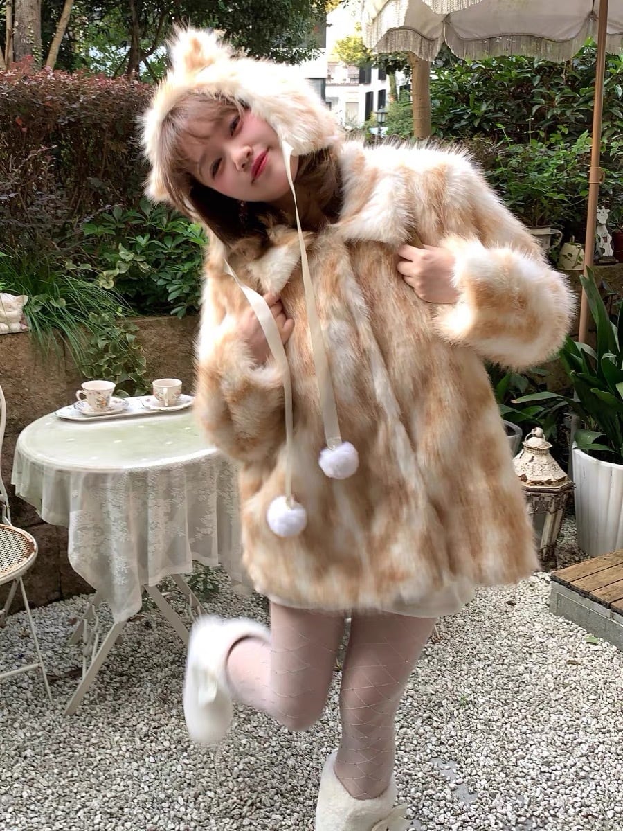 パーカー フード アウター ファー コート 茶色 ベージュ