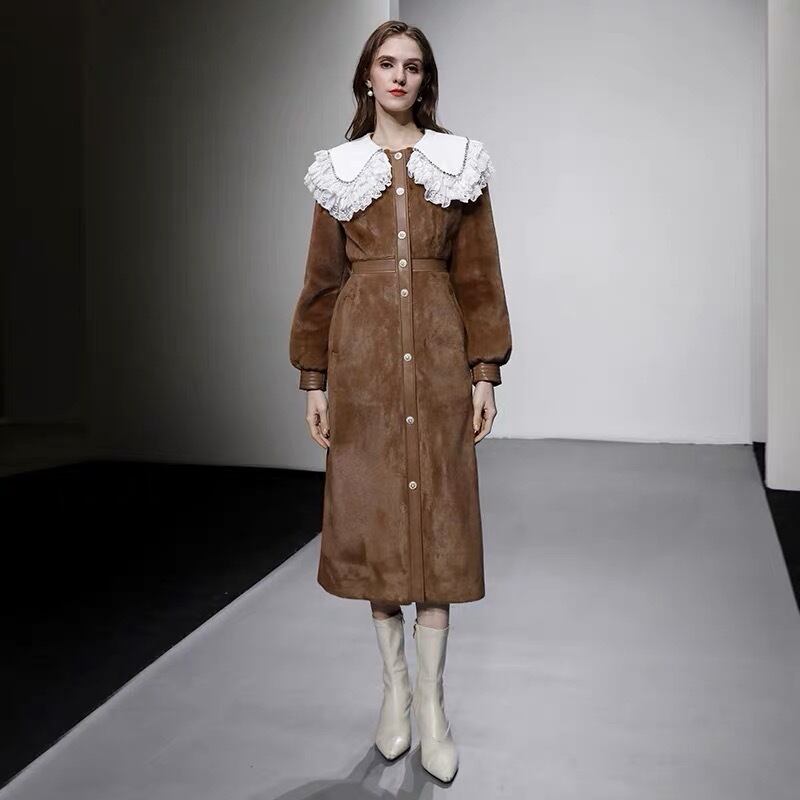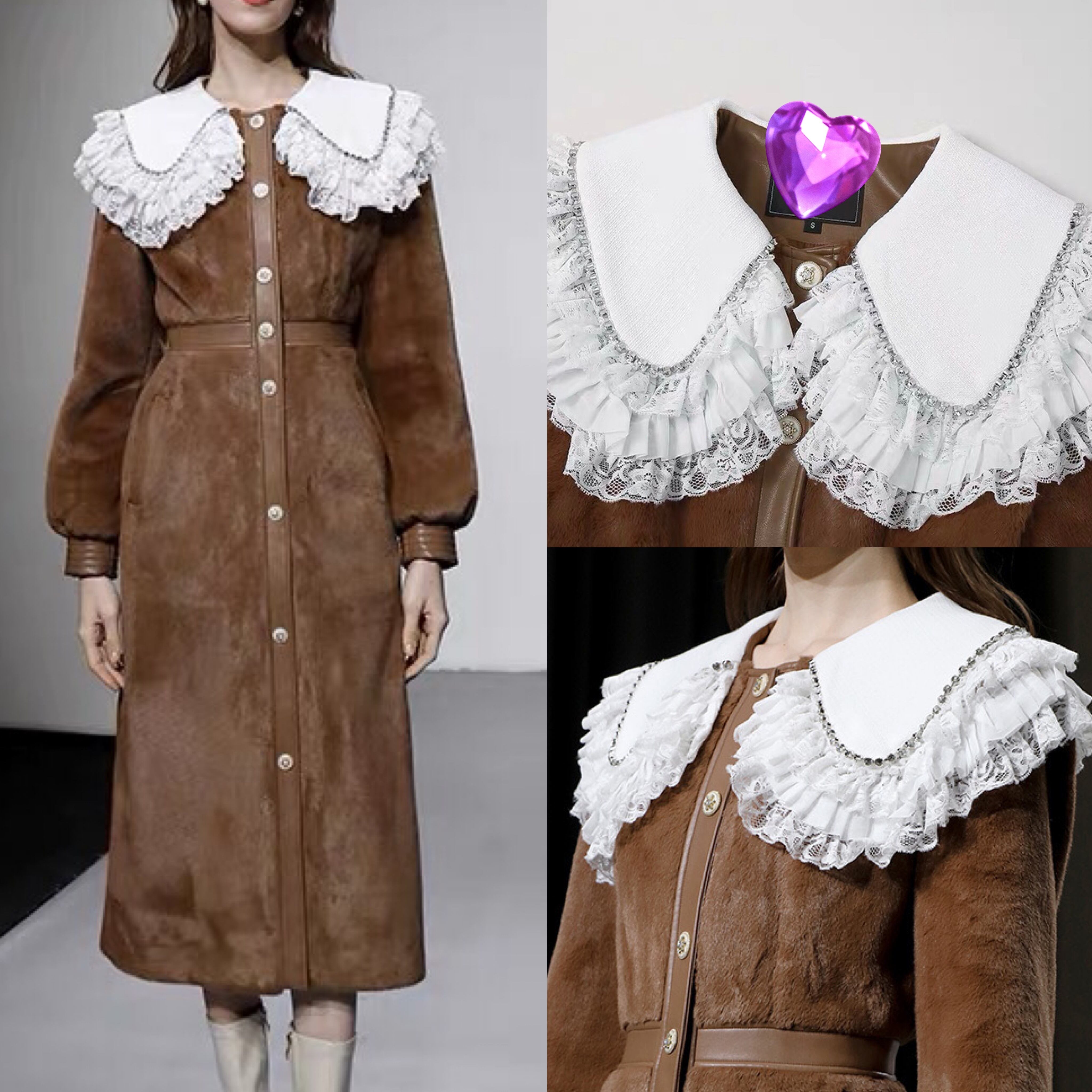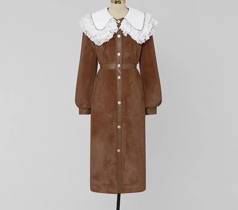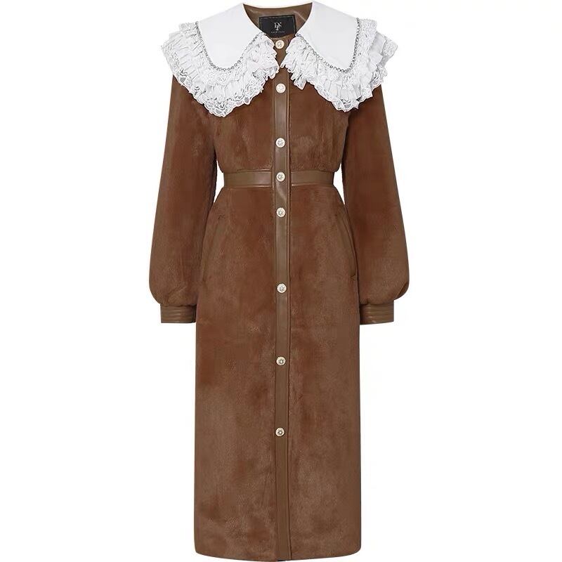 茶色 エレガント 丸襟 コート アウター ジャケット