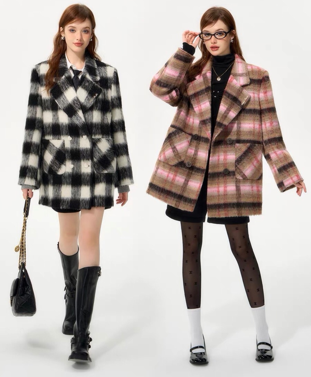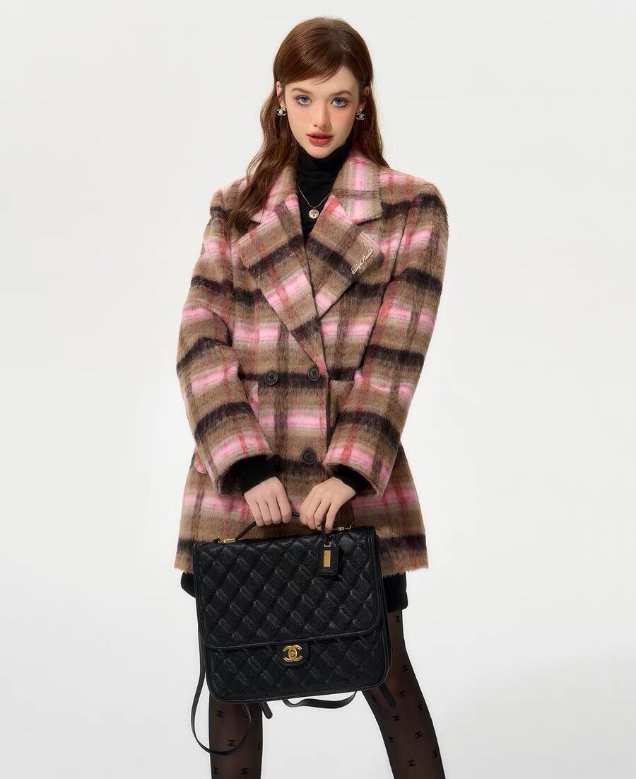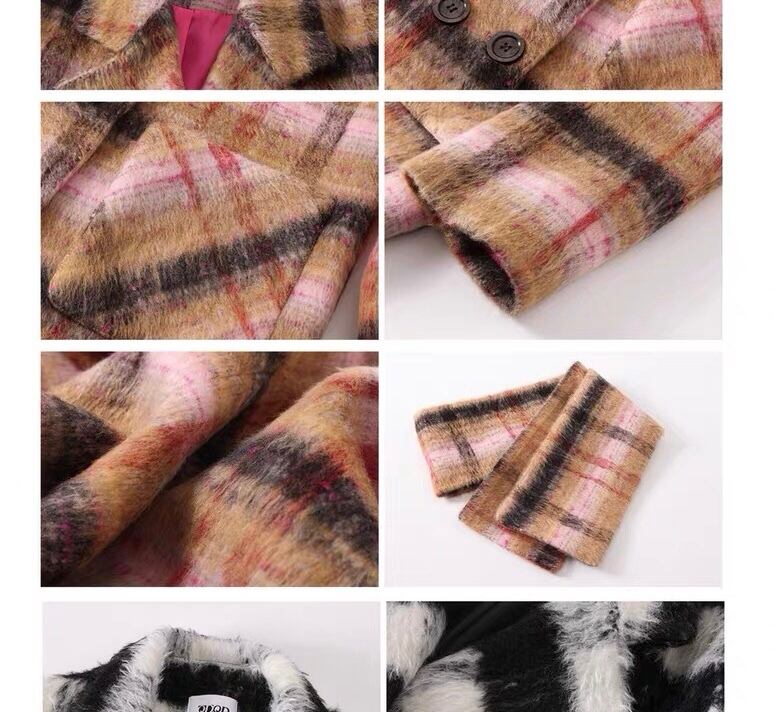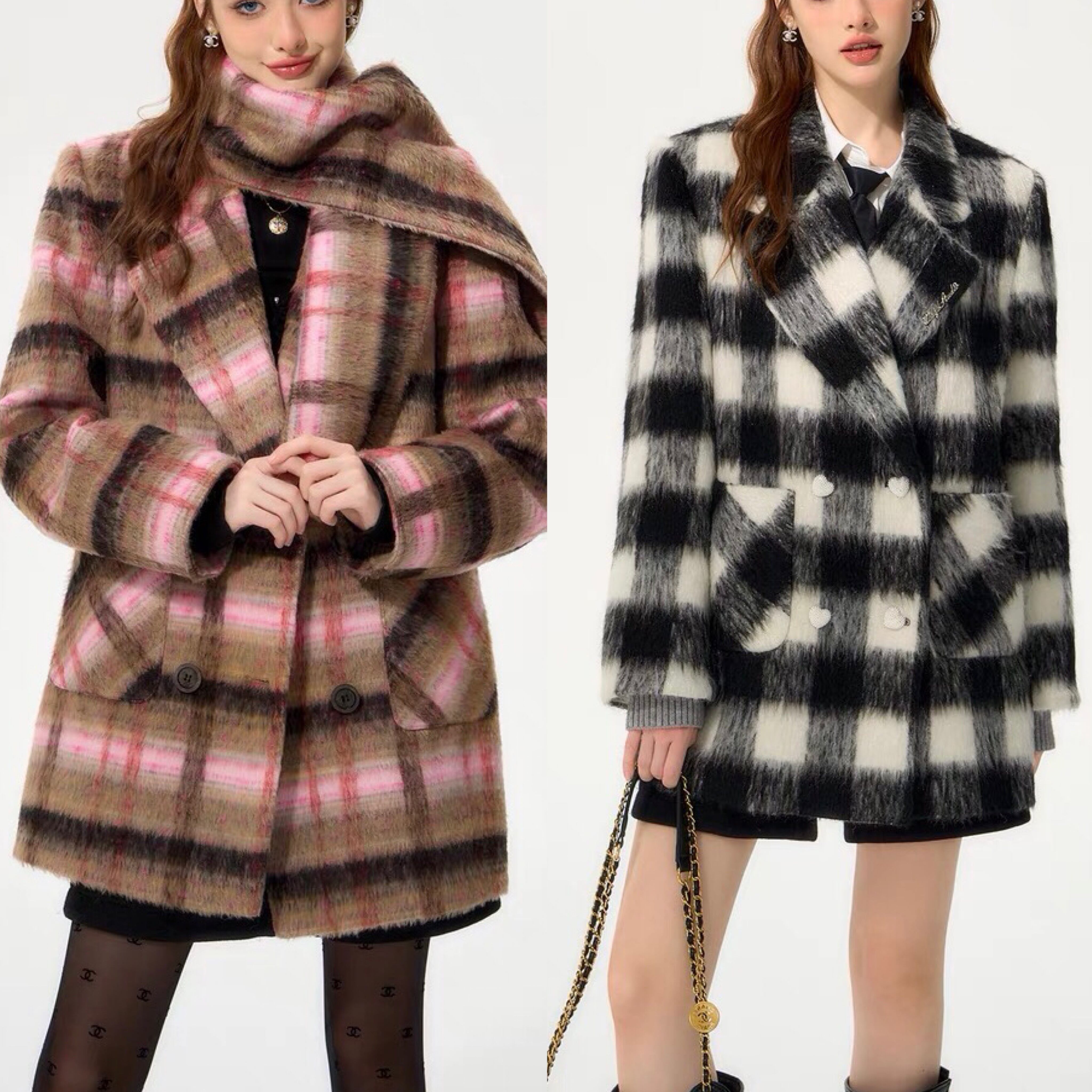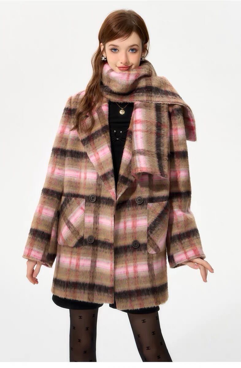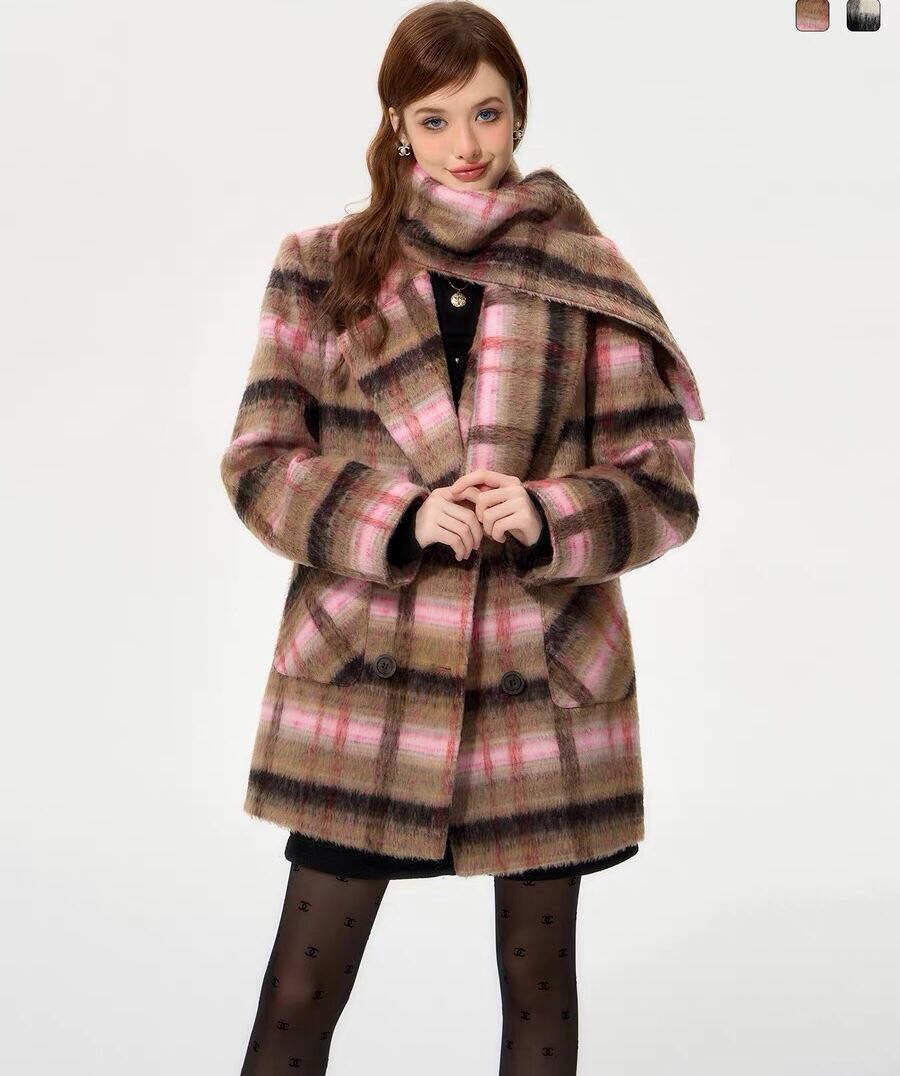 【マフラーつき】ジャケット 茶色 ピンク 黒 白 チェック