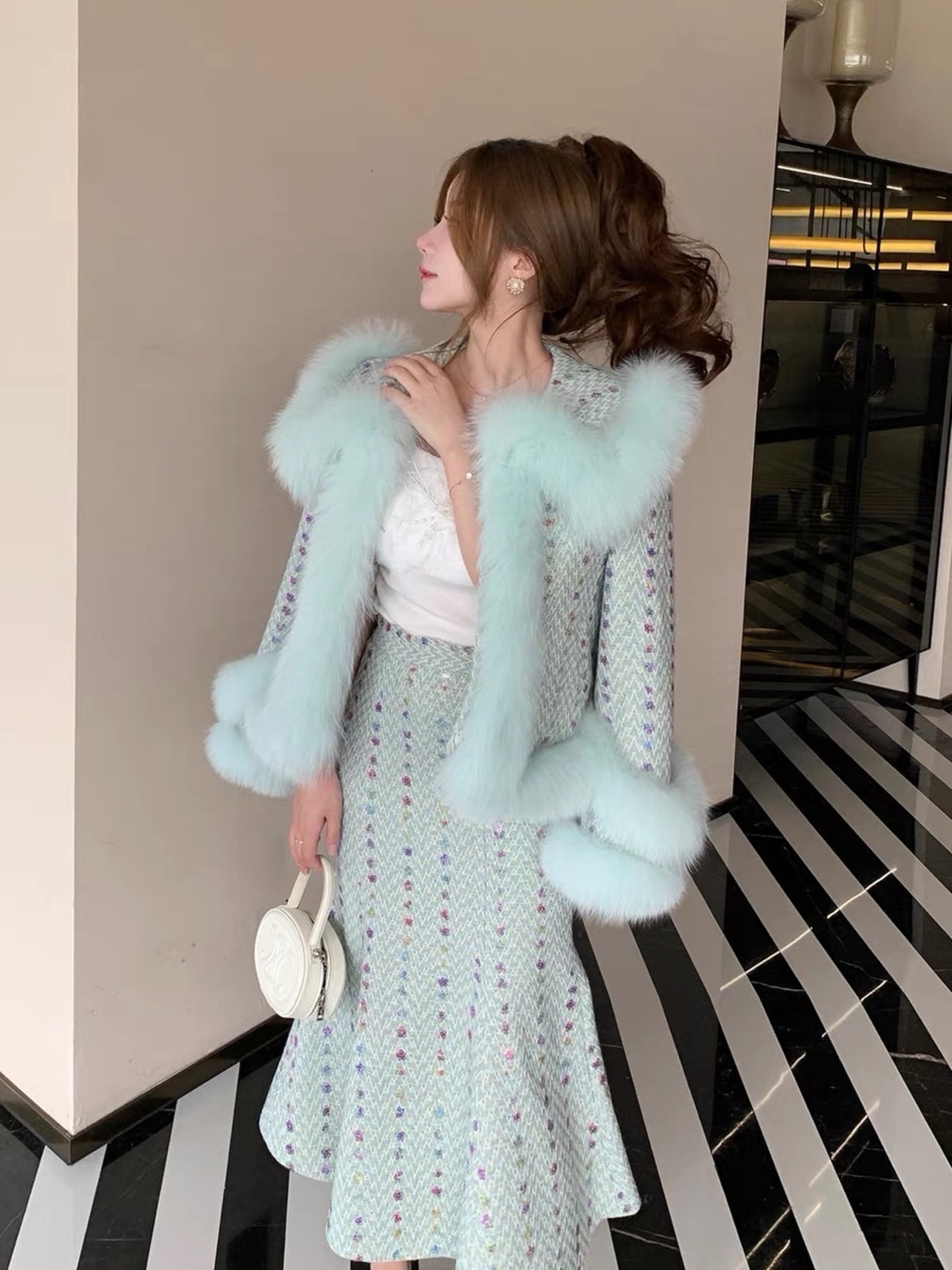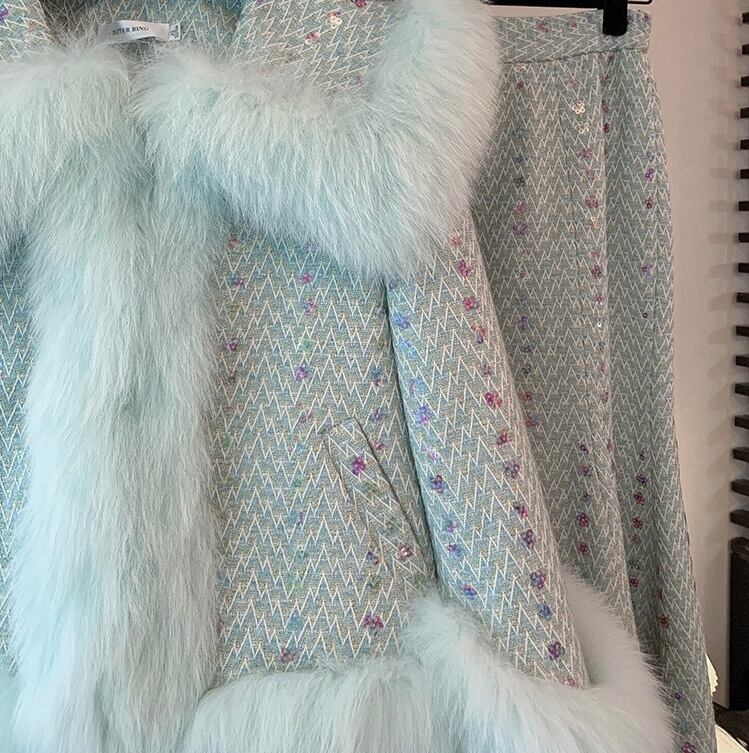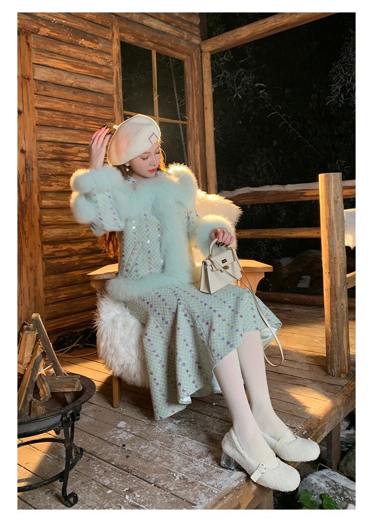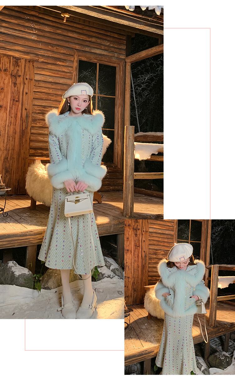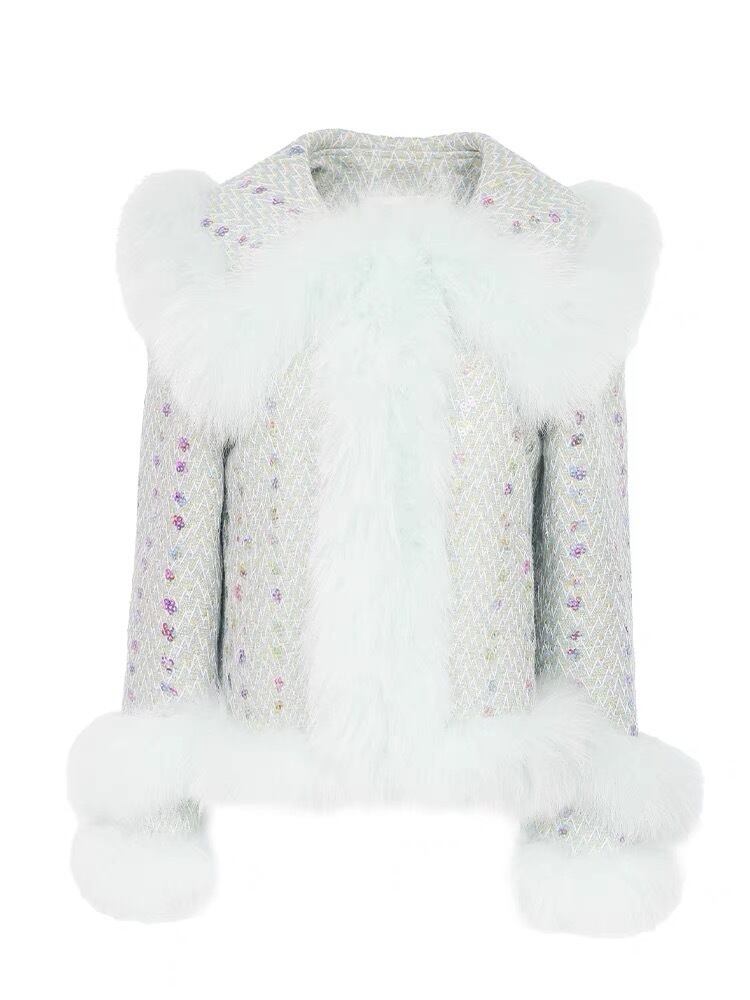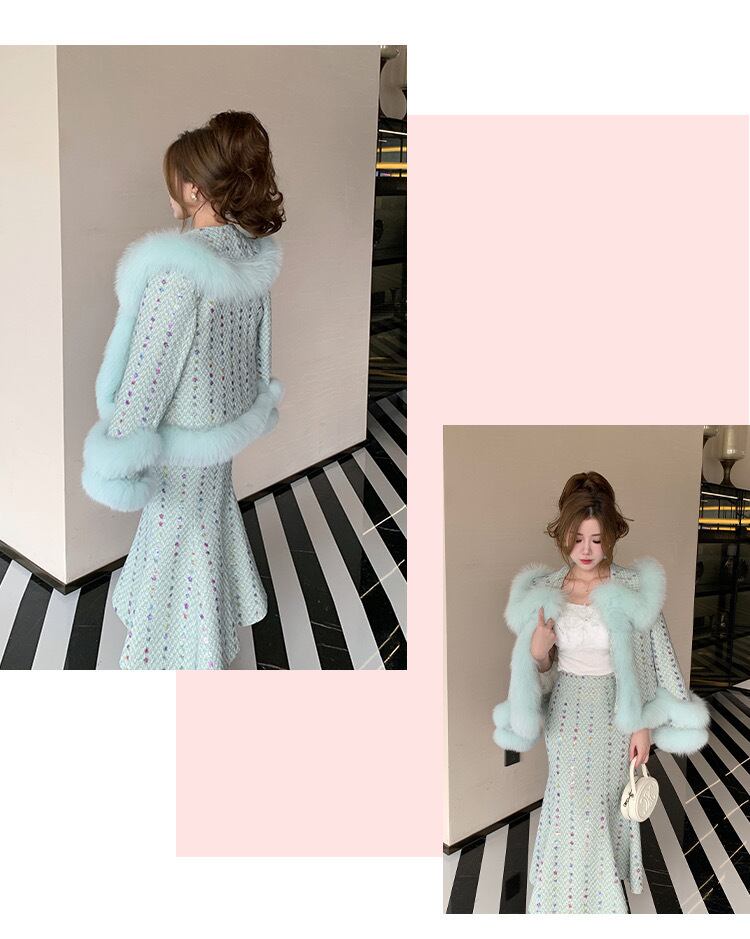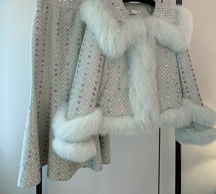 ファー コート 襟 水色 緑 ガーリー キラキラ