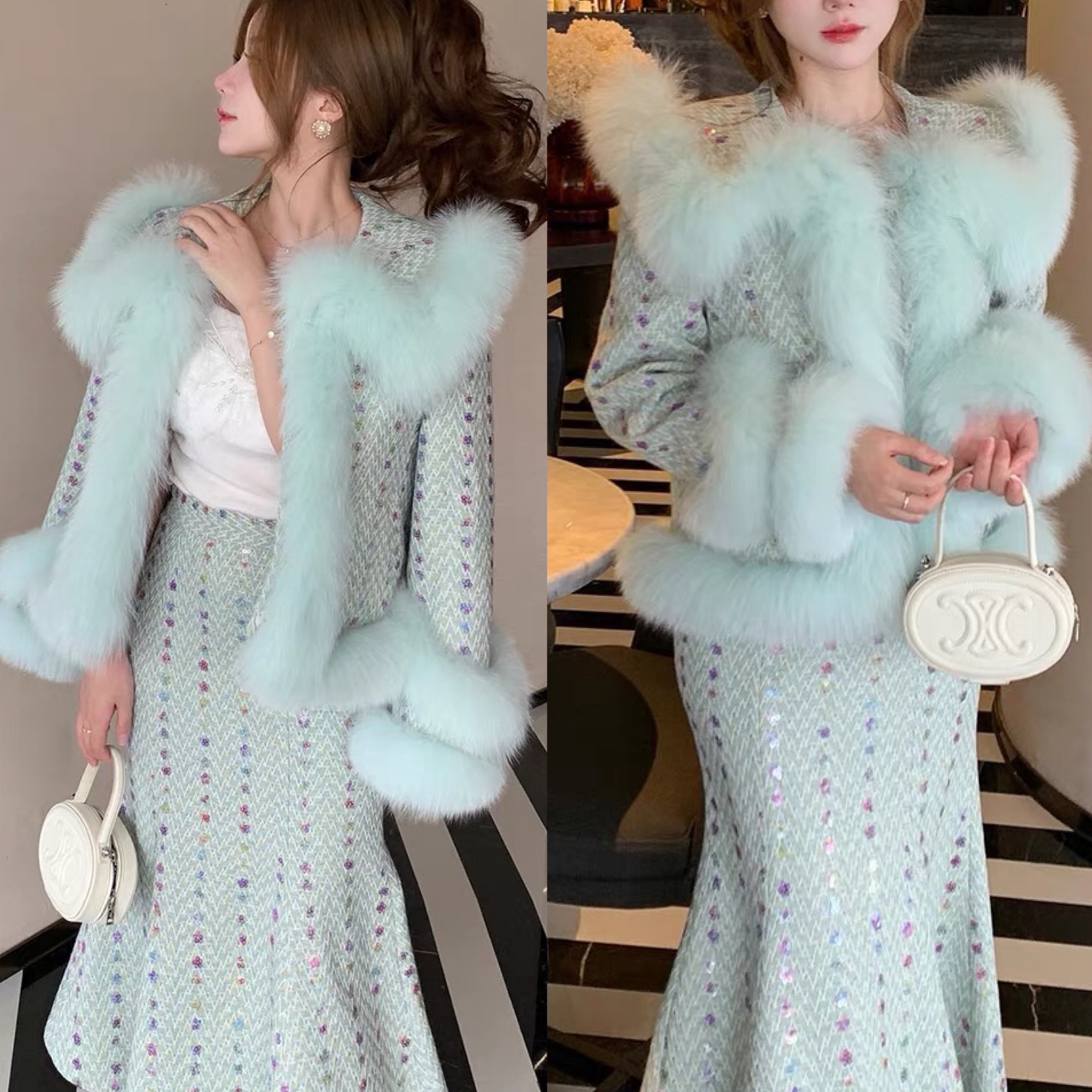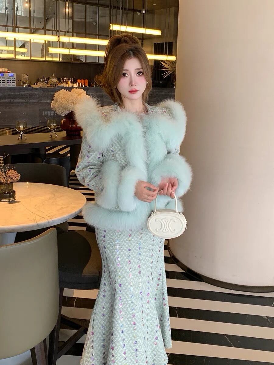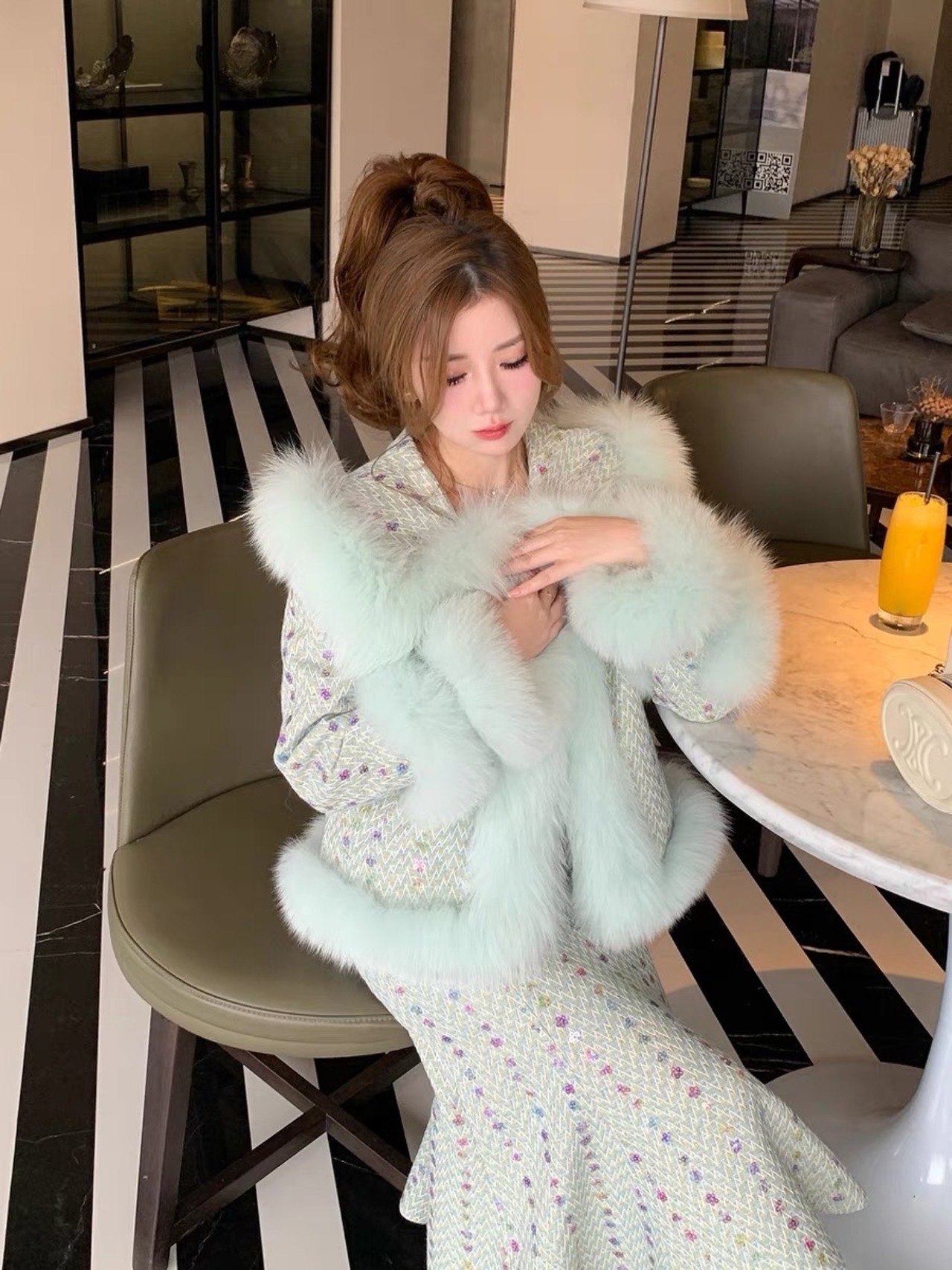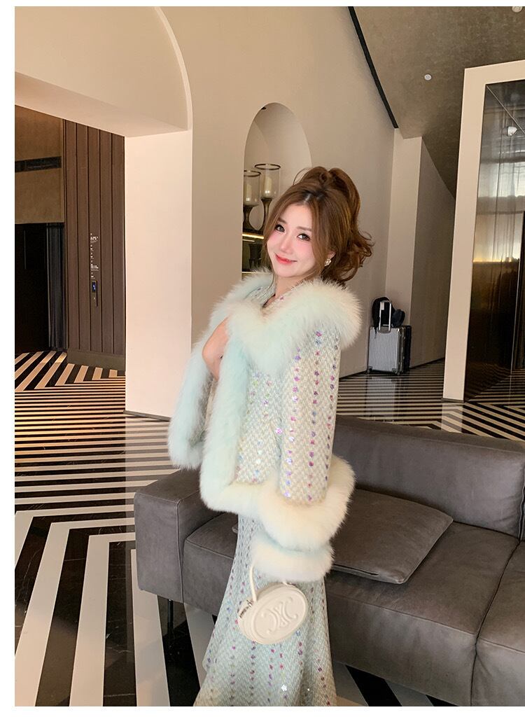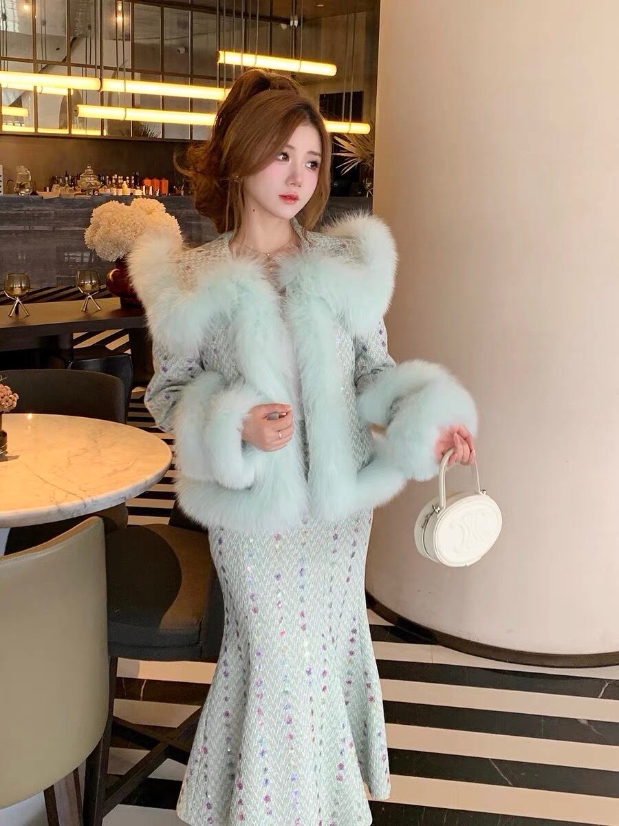 ファー コート 襟 水色 緑 ガーリー キラキラ