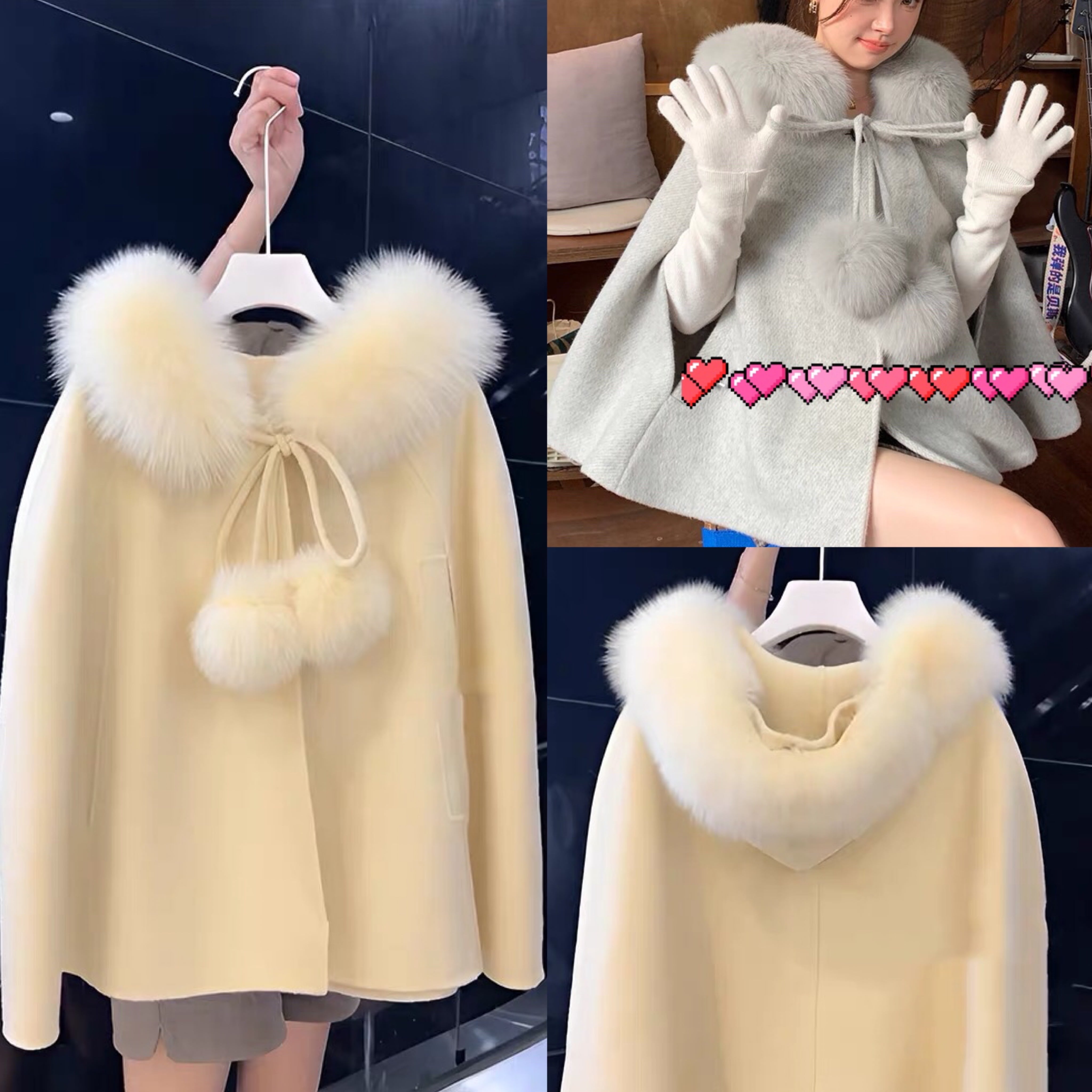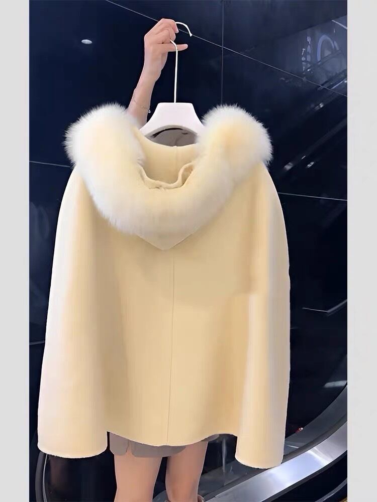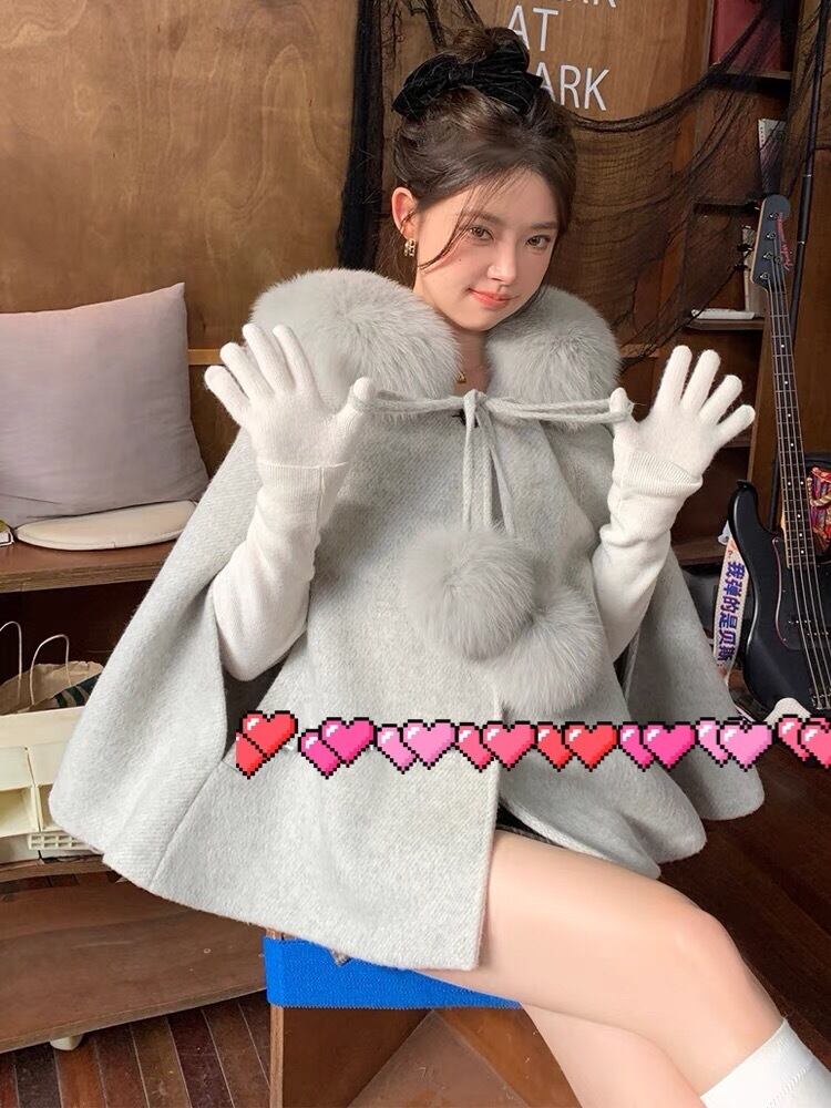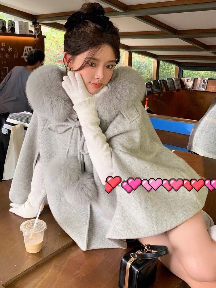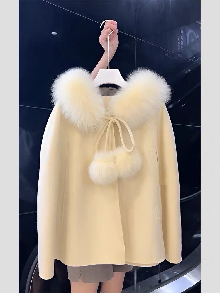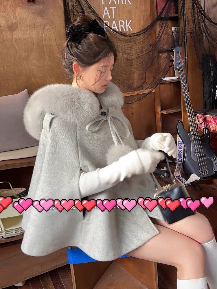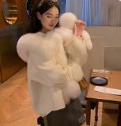 ポンチョ マント 白 リボン ファー コート アウター