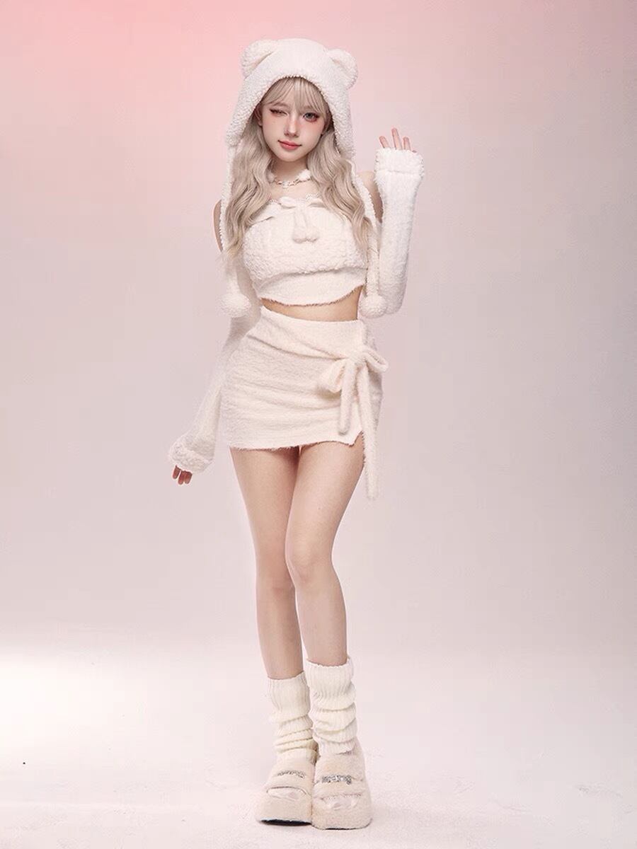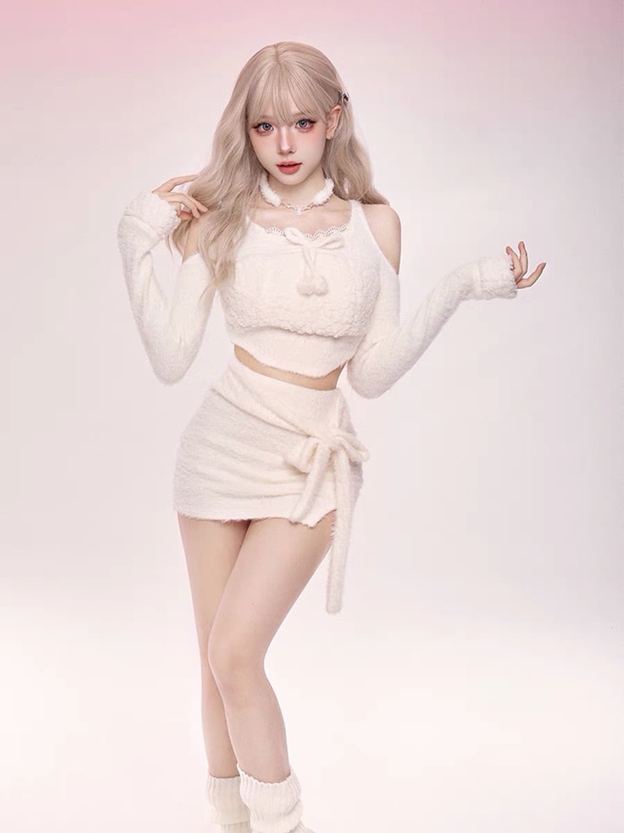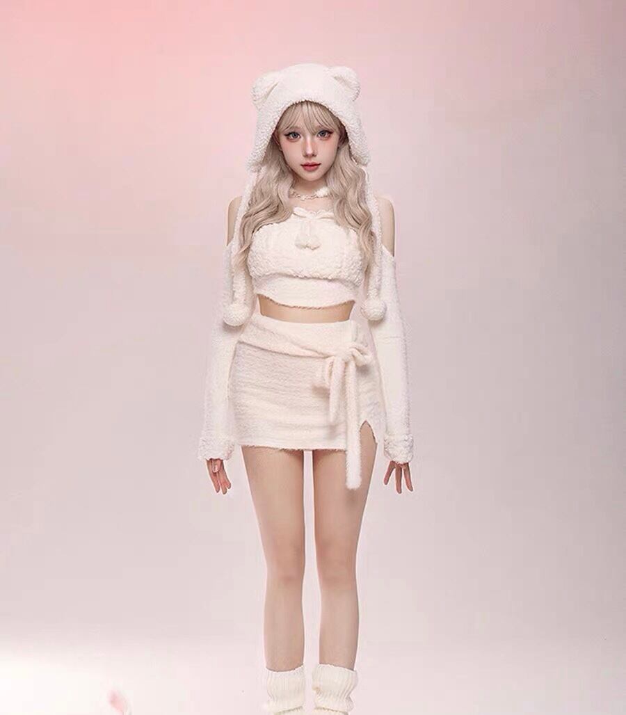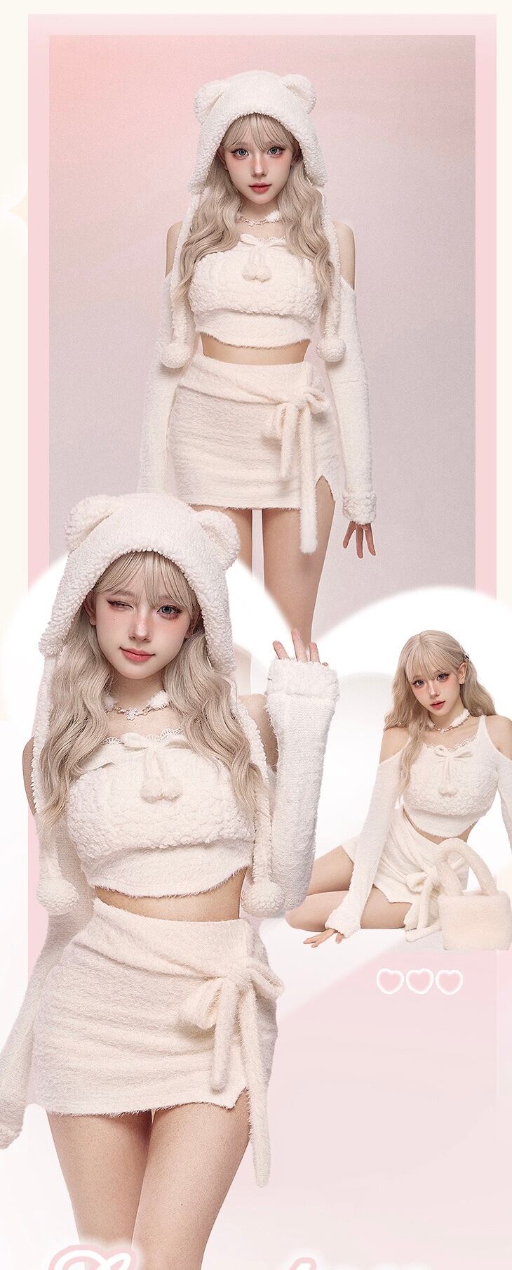 【3点セット】白 帽子 可愛い セーター ニット スカート
