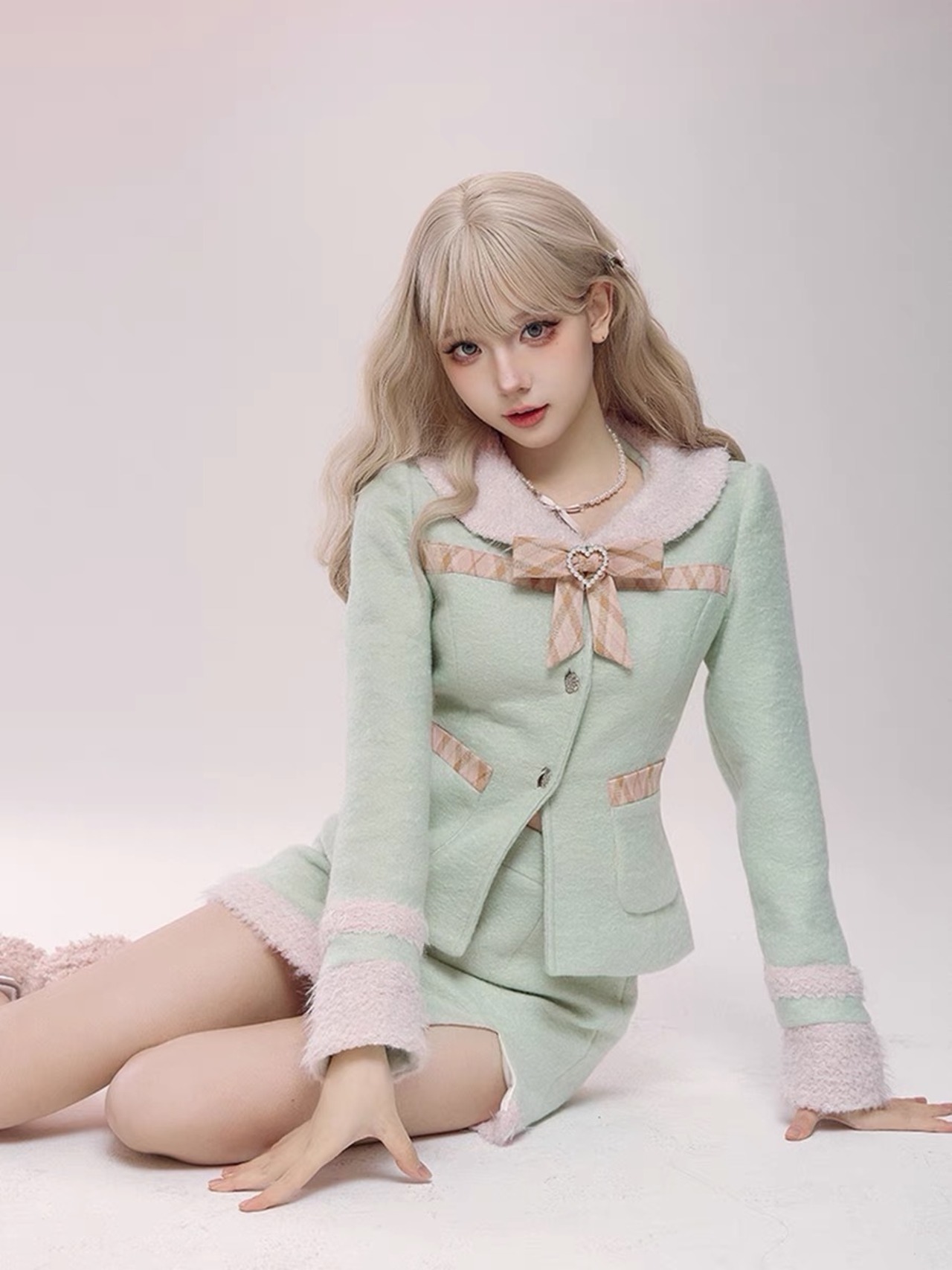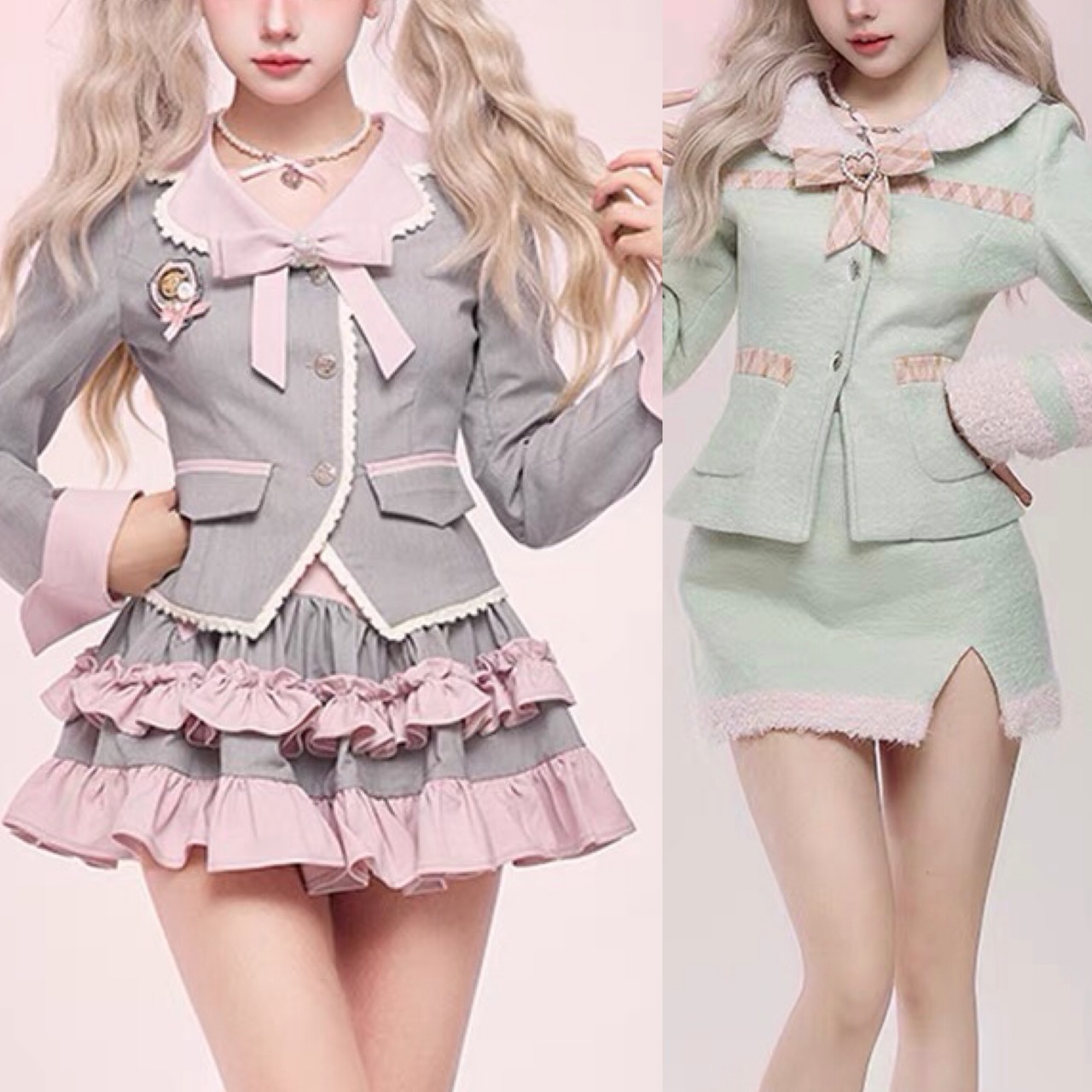【スカート】緑 グレー ミニスカ ガーリー 可愛い