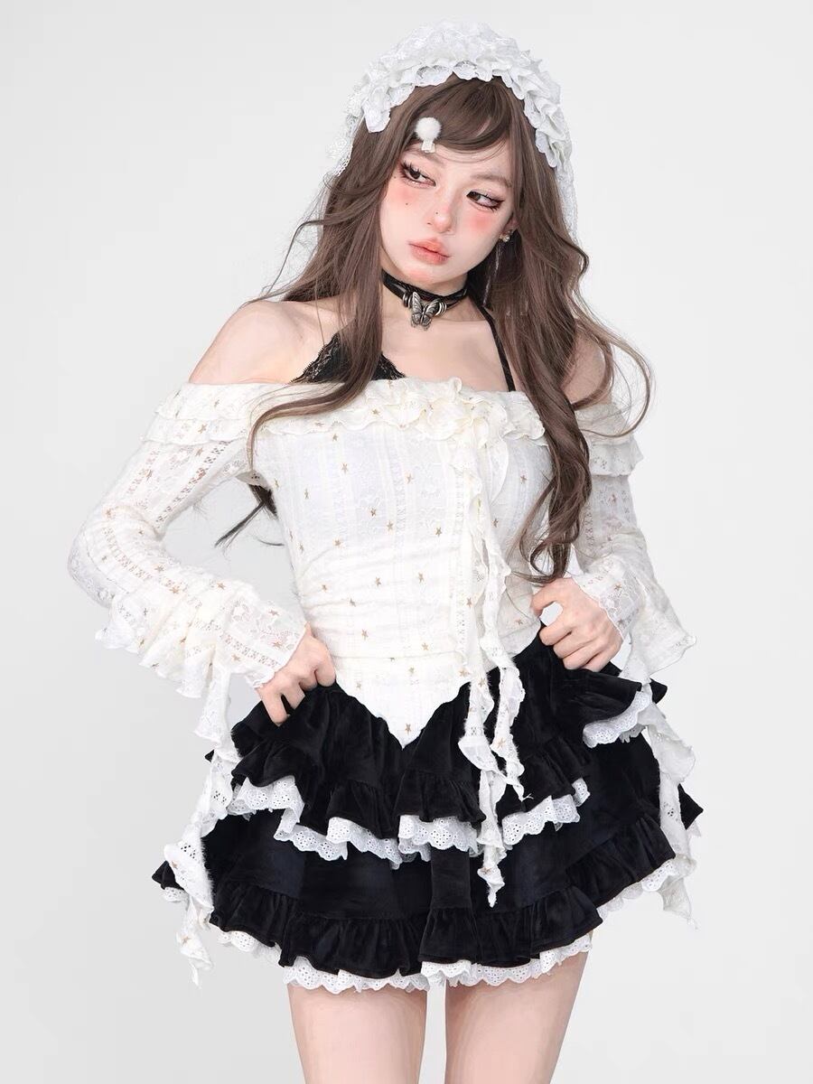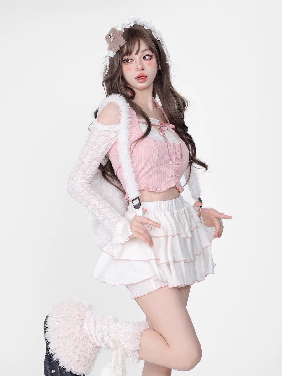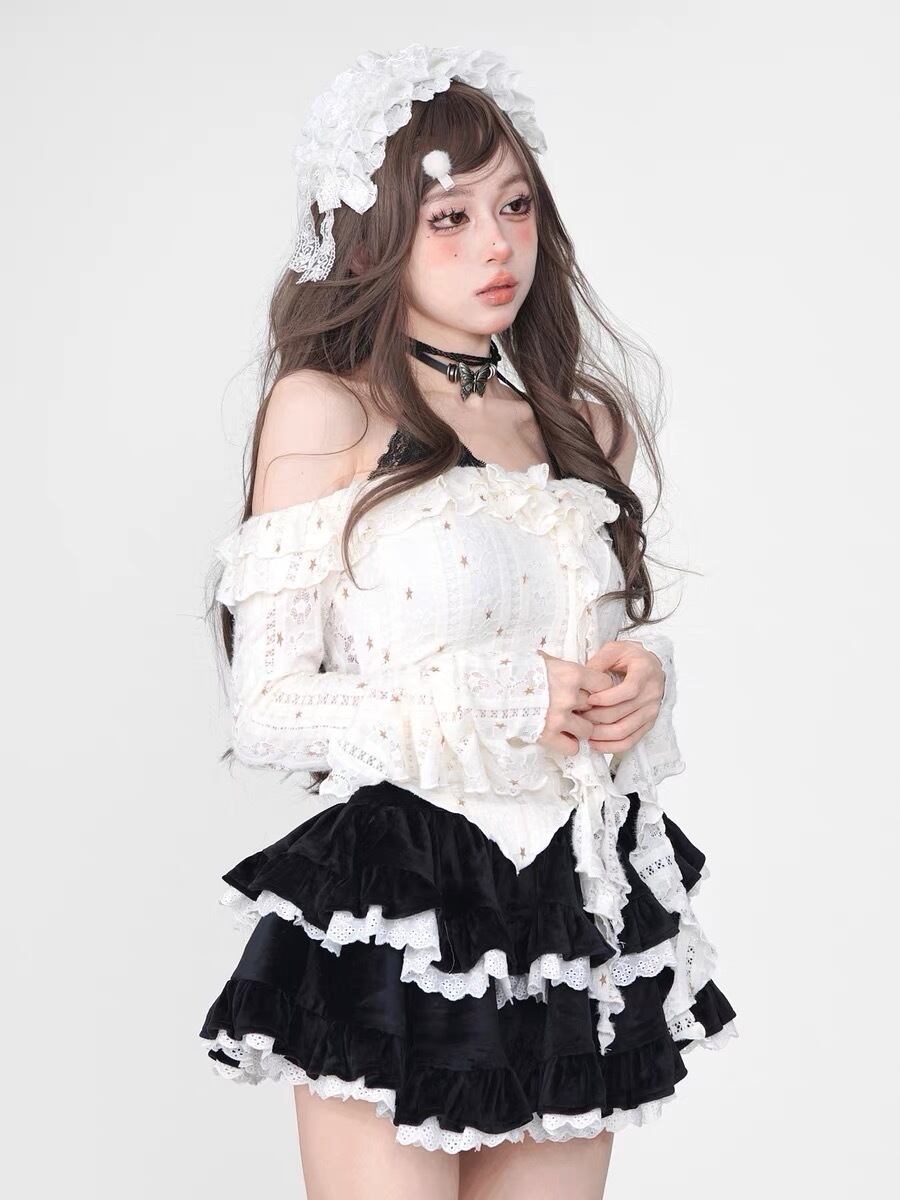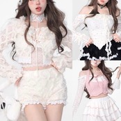 【トップス】オフショルダー ピンク 白 ブラウス 可愛い ガーリー
