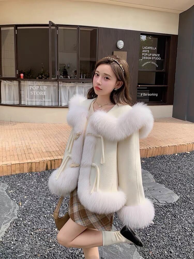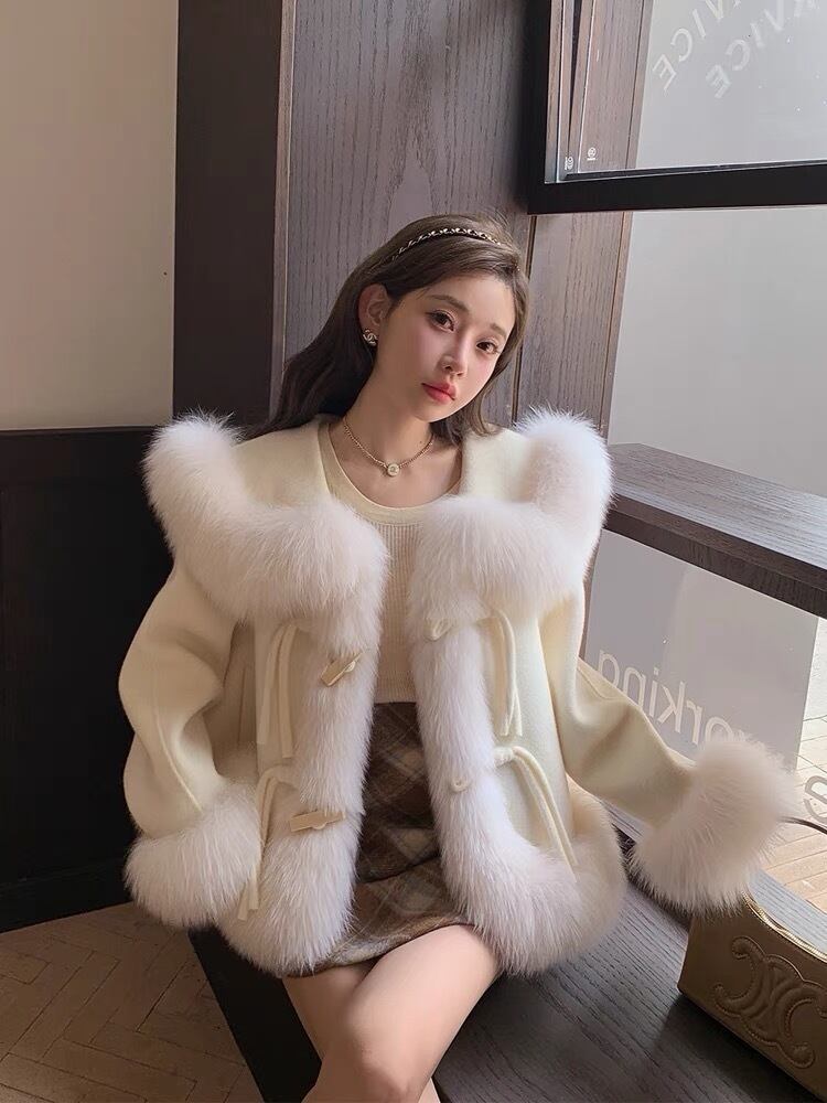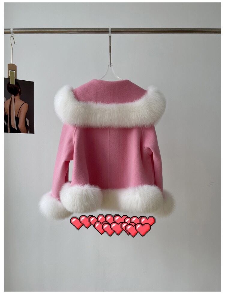 【白・ピンク・黄色】ファー コート 襟 可愛い アウター
