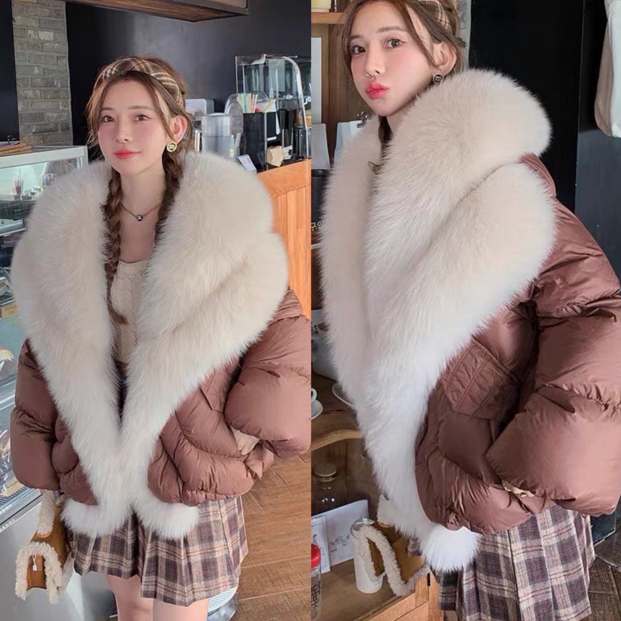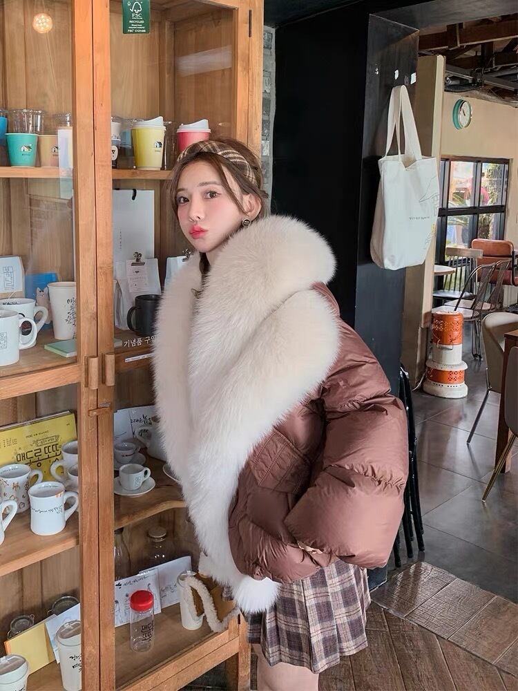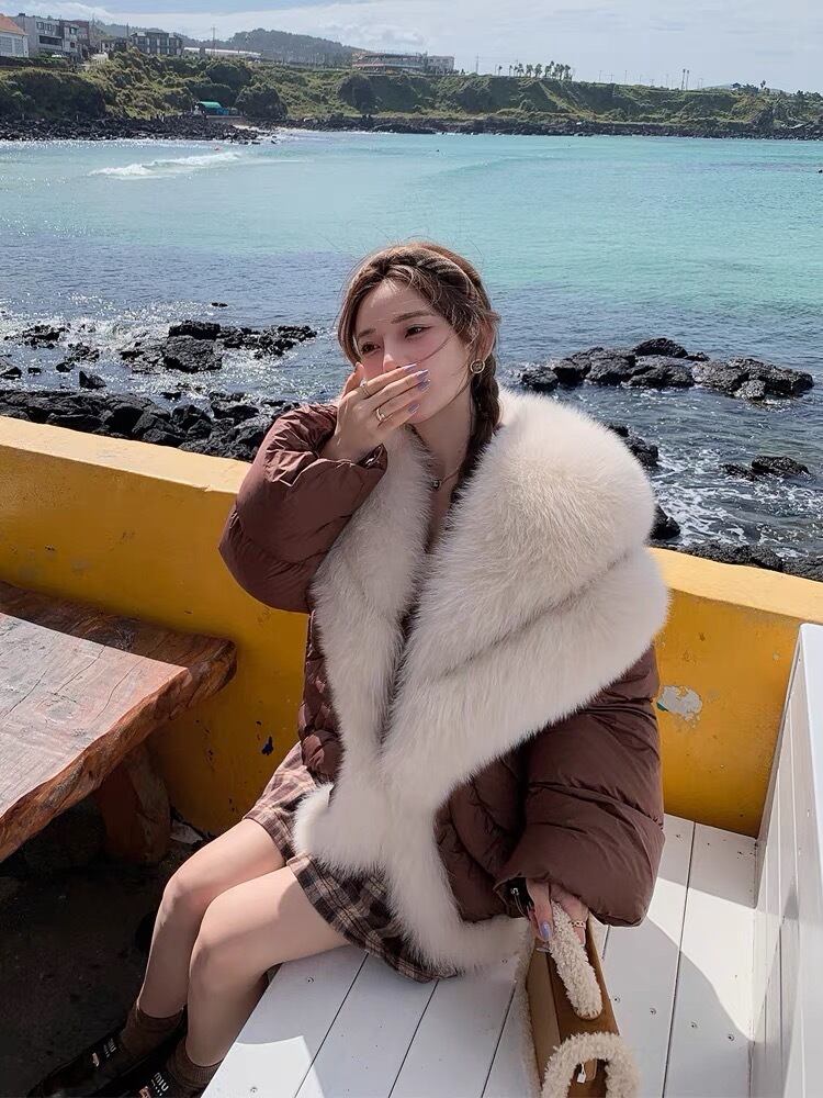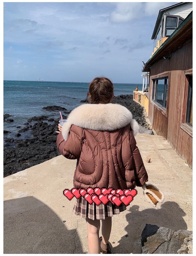 茶色 ファー ダウンコート ゆったり ガーリー ブラウン