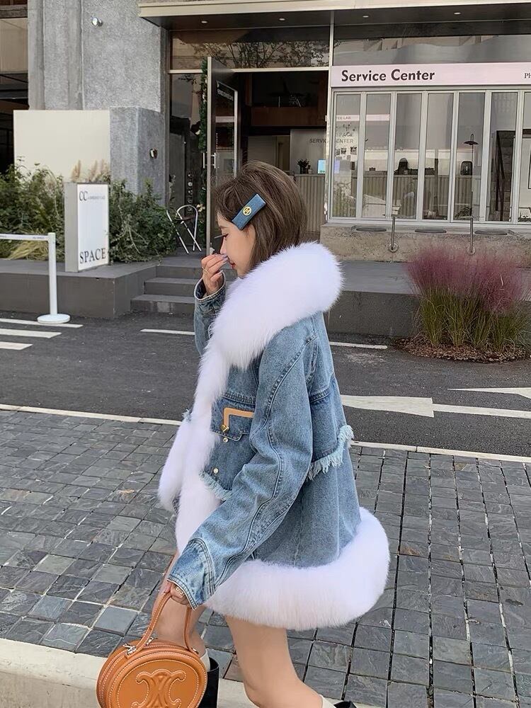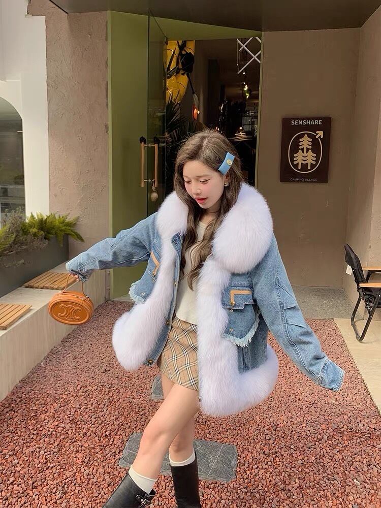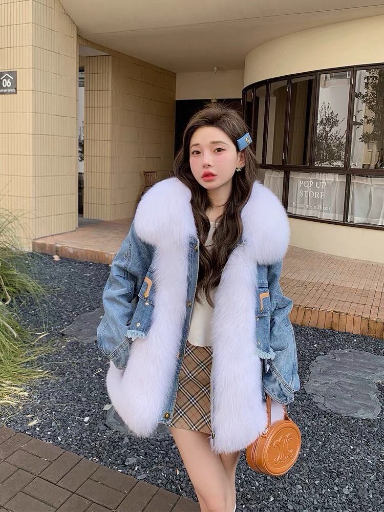 デニム 水色 ダウンコート アウター ストリート カジュアル