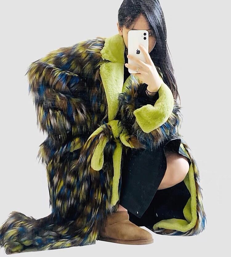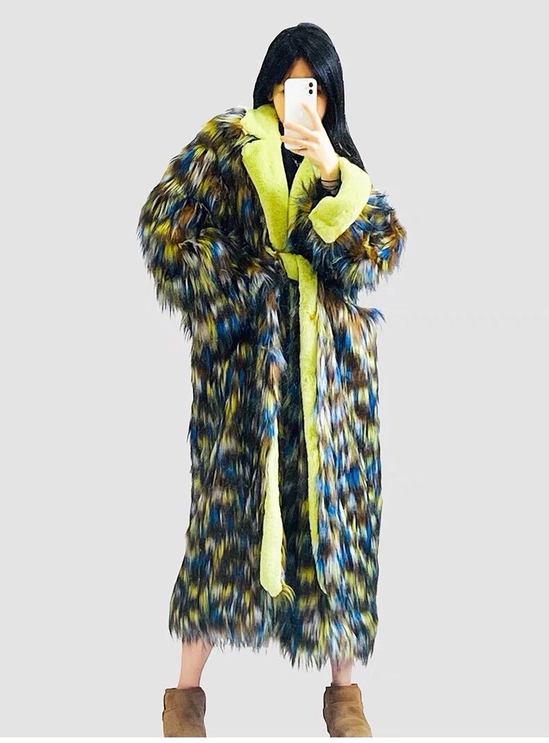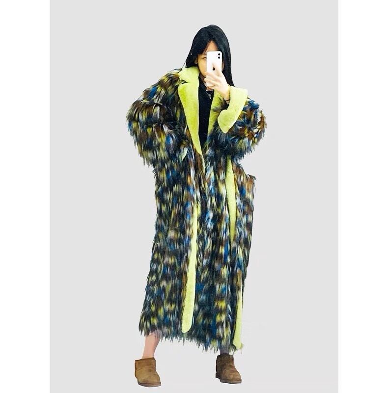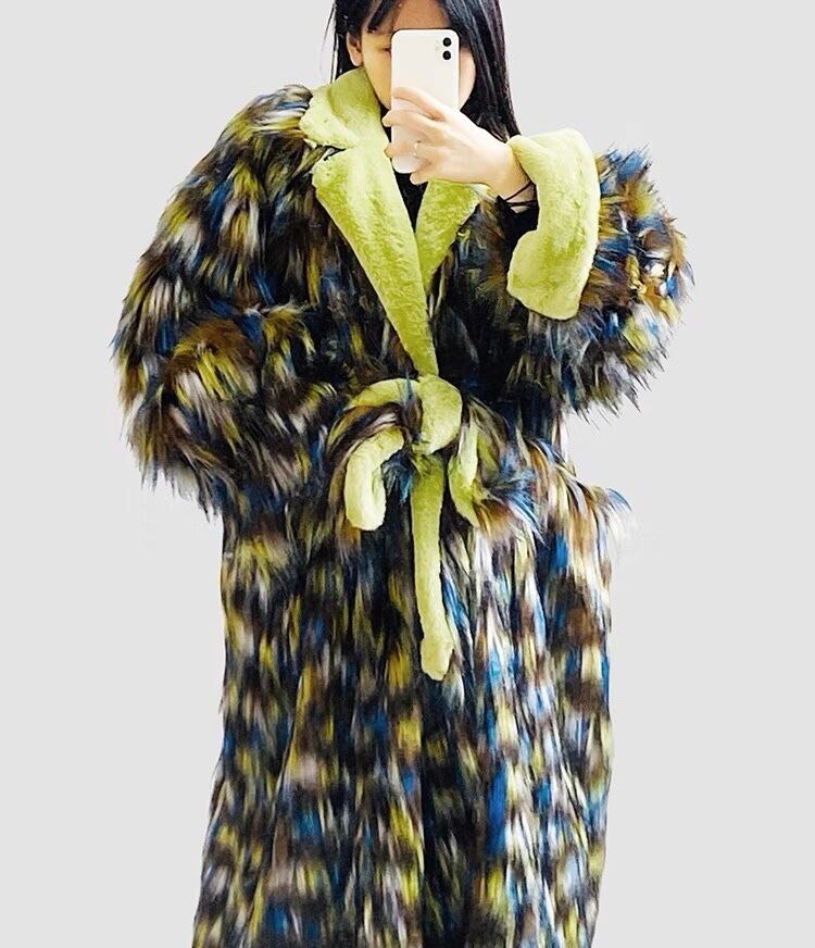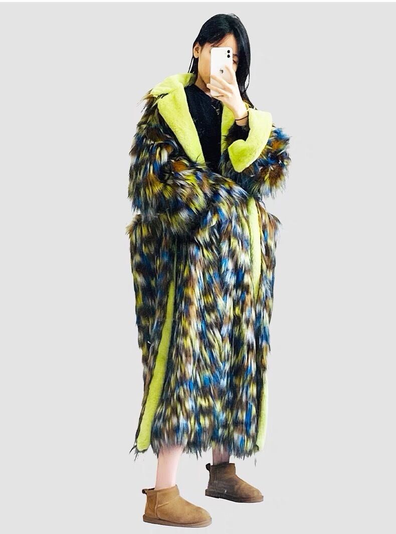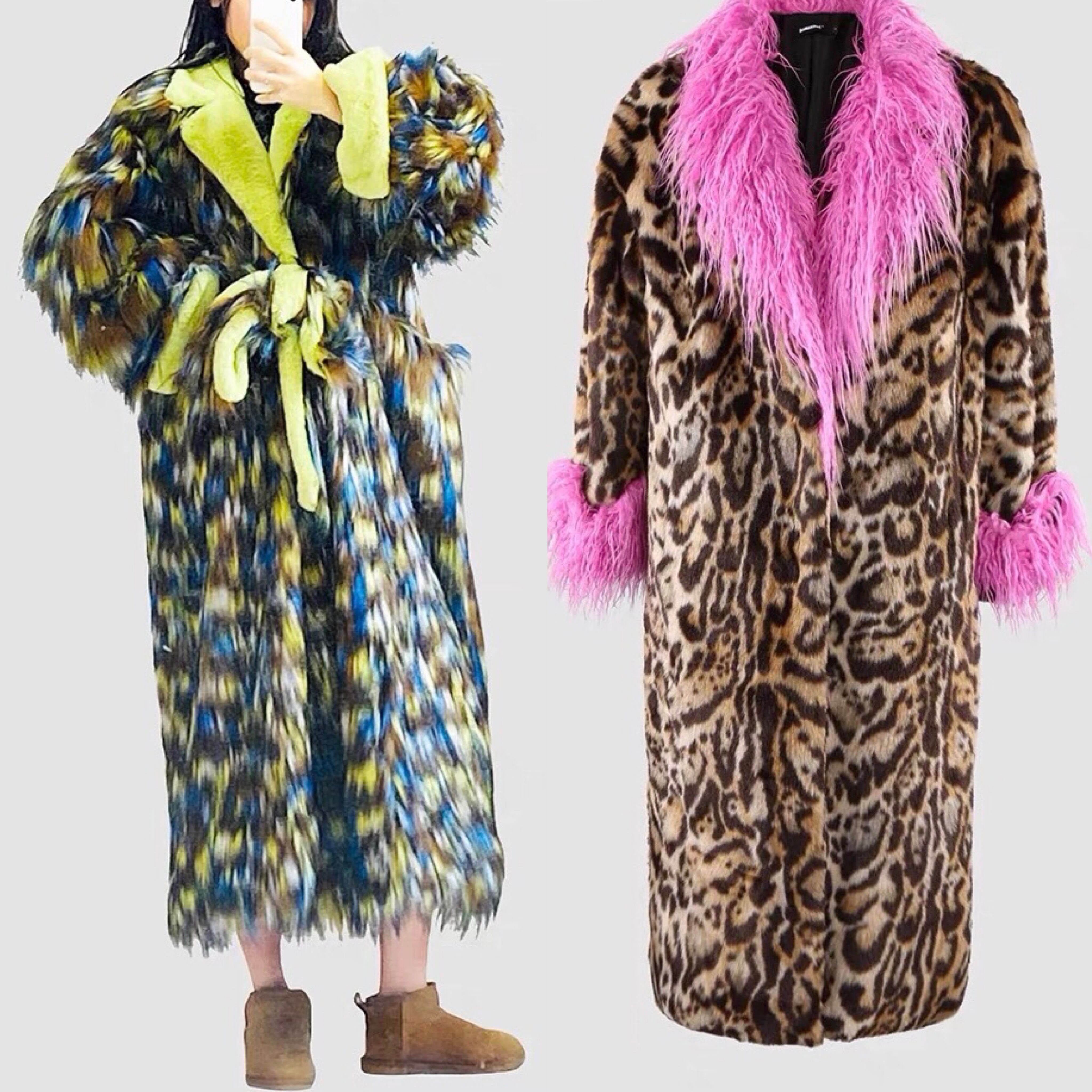 【2XLまで❣️】ファーコート 黄色 緑 蛍光 紫 アウター レオパード