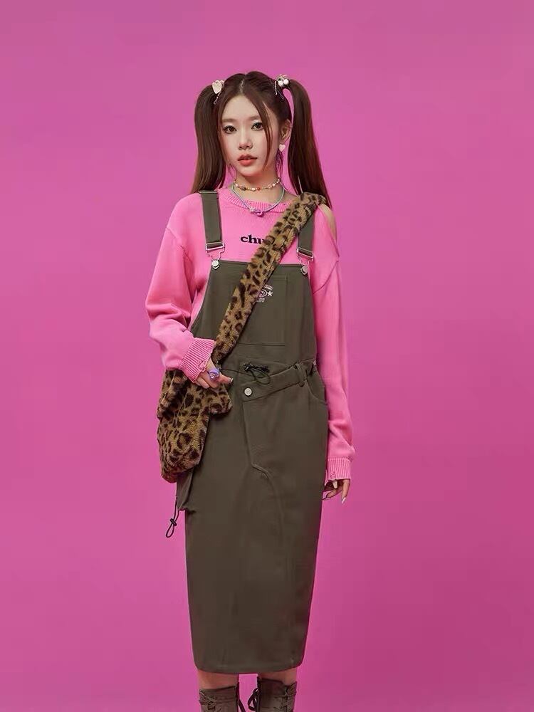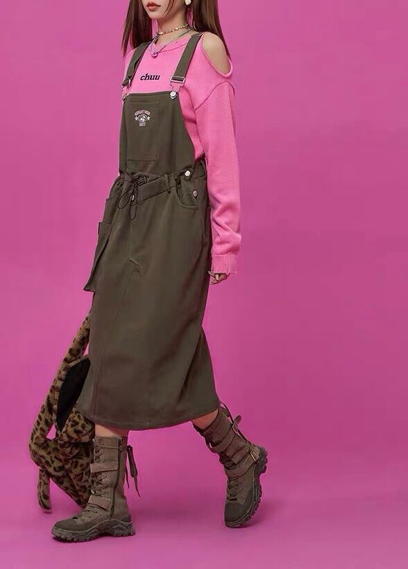 【ワンピース】カーキ ゆったり カジュアル 緑 カーキ ストリート