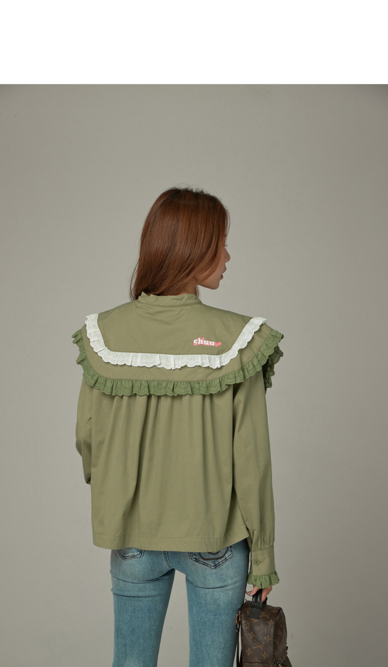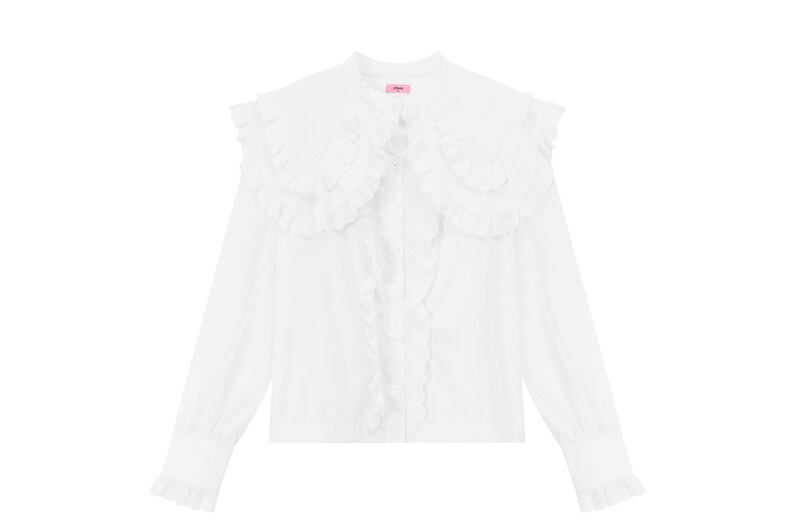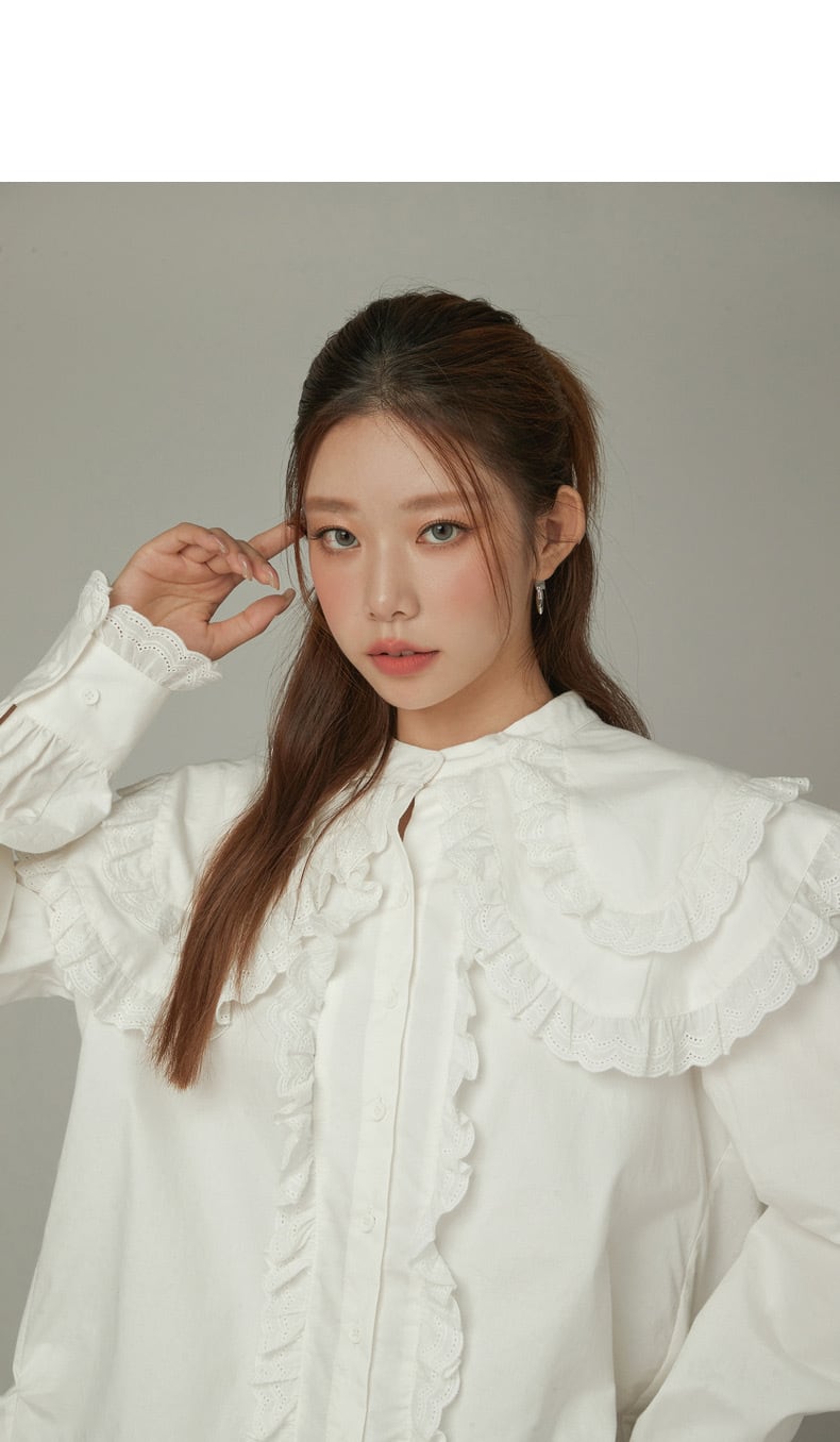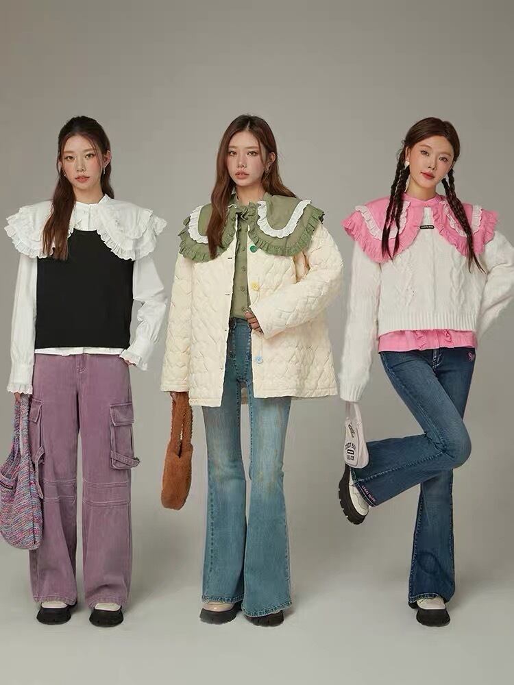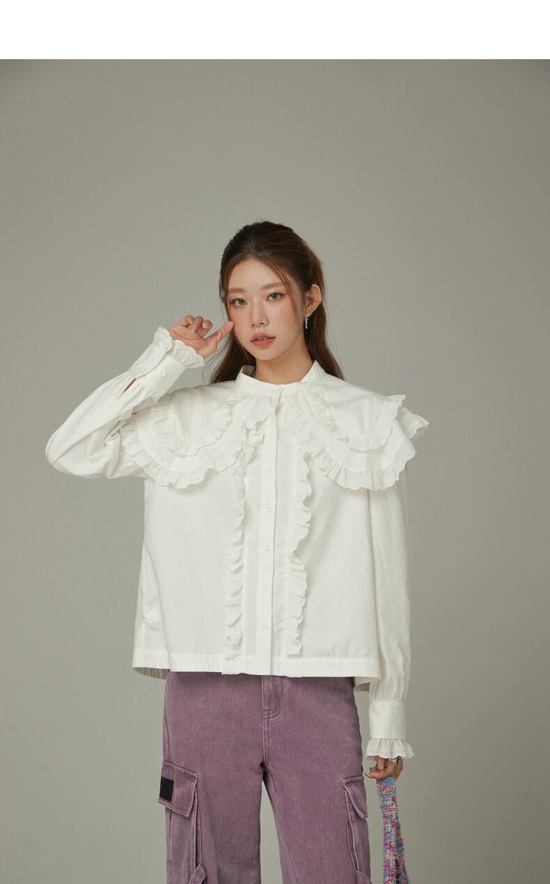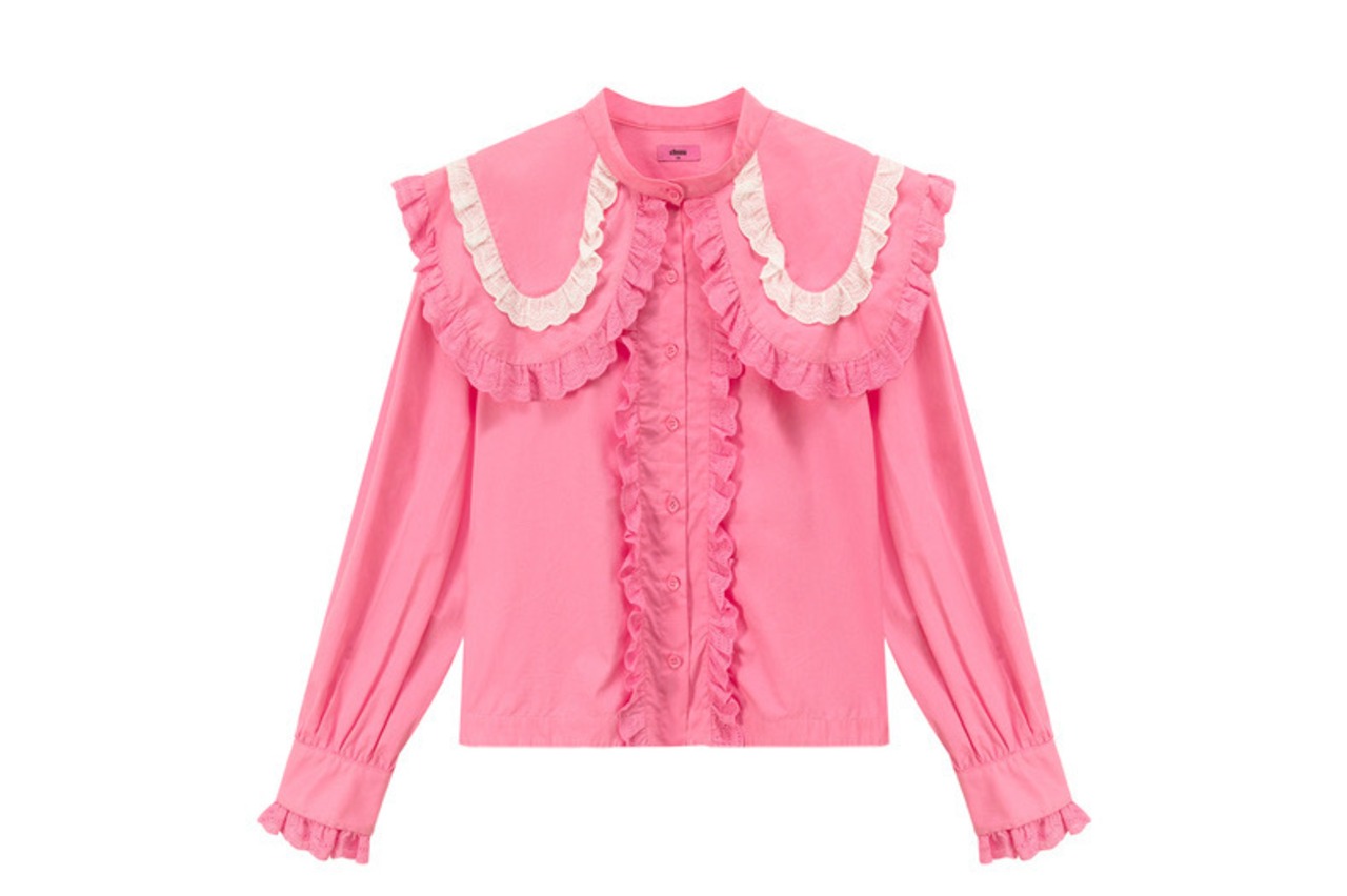 ブラウス 緑 丸襟 ピンク 緑 シャツ デカ襟