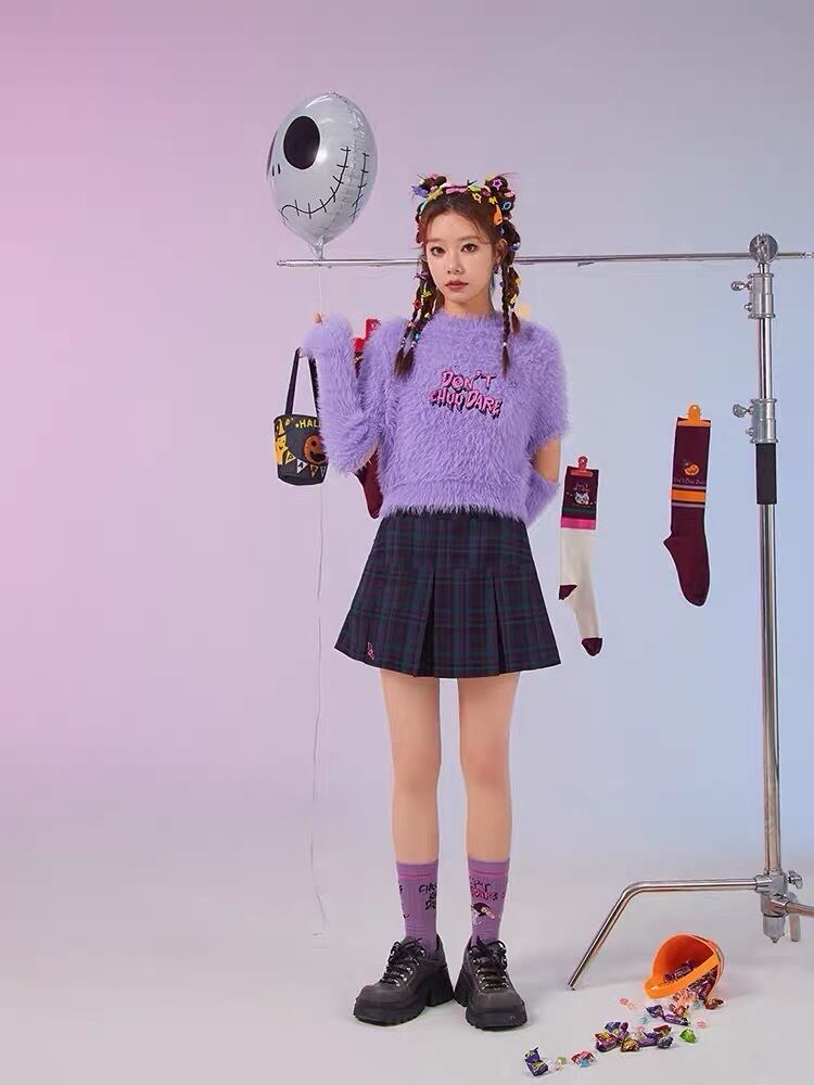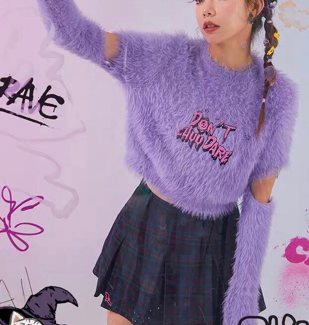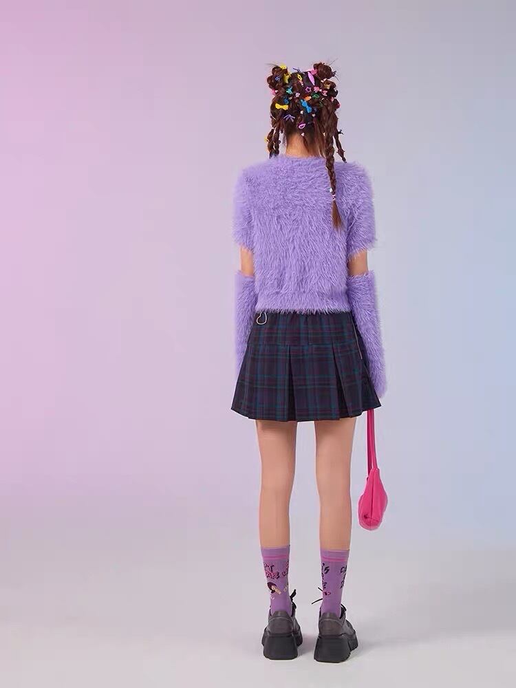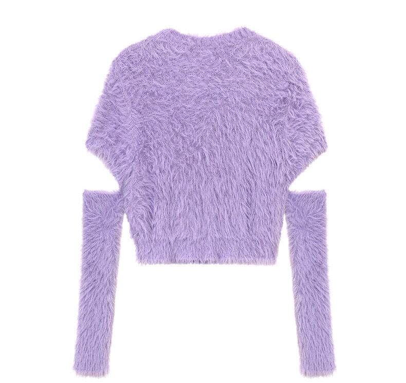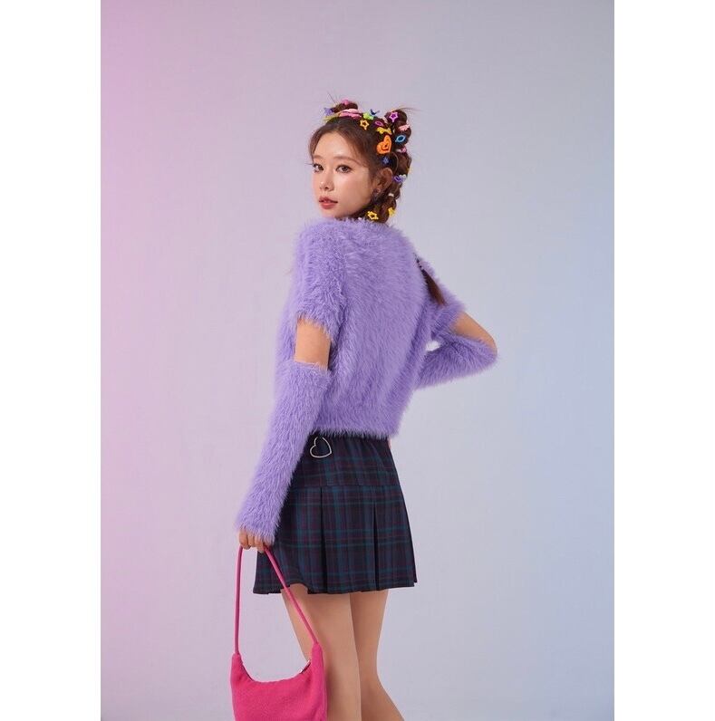 紫 パープル アームウォーマー セーター カーディガン ファー