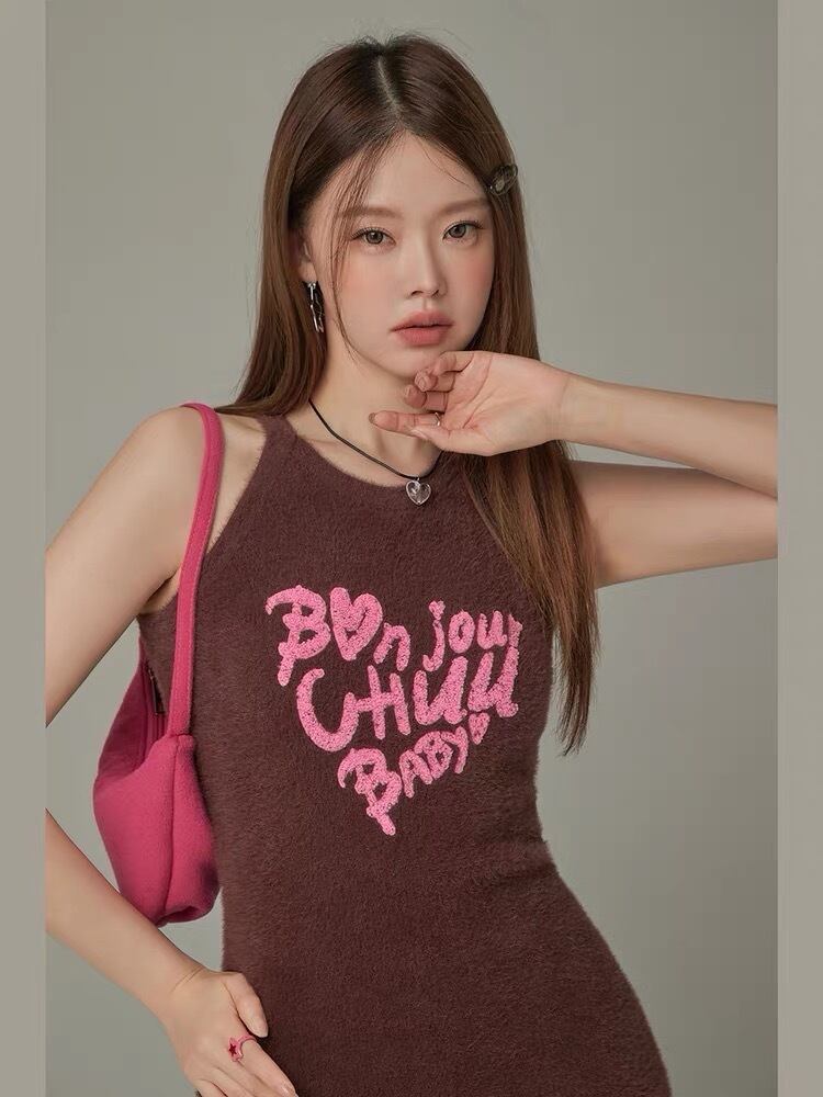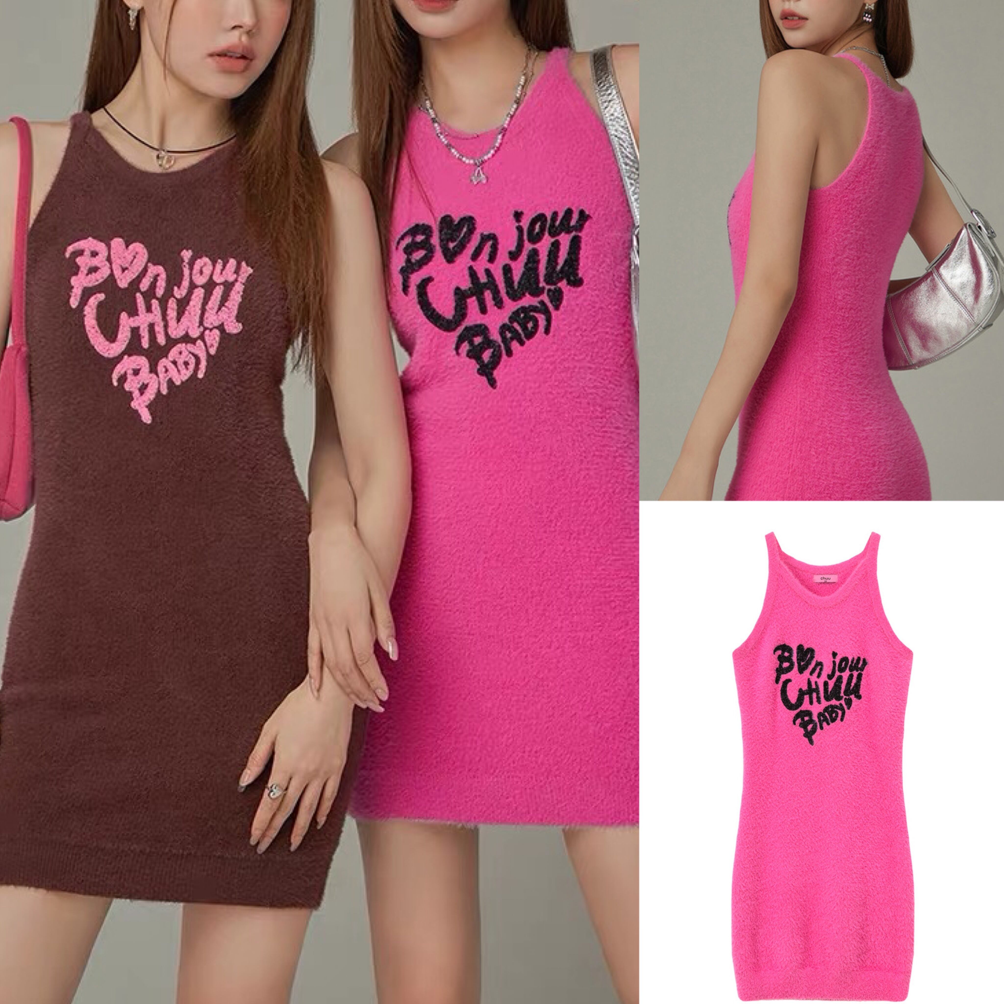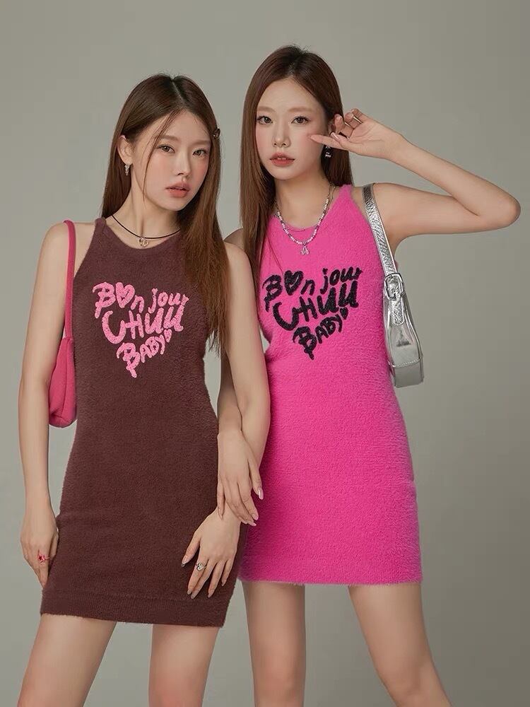 ワンピース ピンク 茶色 モヘア ニット ストリート